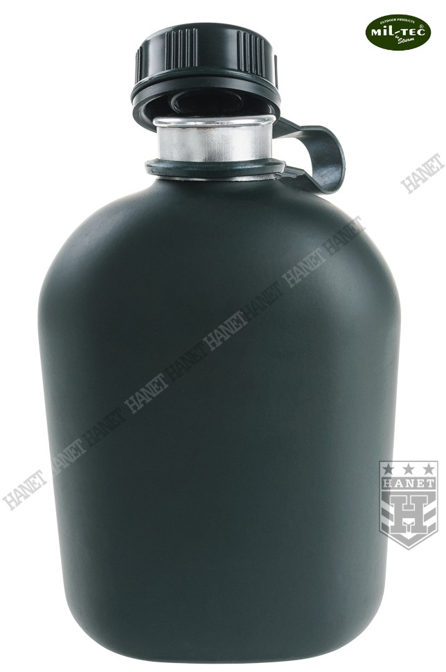 Manierka wojskowa niemieckiej firmy MIL-TEC®, linia PLUS. Wykonana aluminium z powłoką ochronną. Przydatna w warunkach bojowych, survivalu i w turystyce. Model zaprojektowany na podstawie doświadczeń bojowych żołnierzy, przypominający kształtem kultową manierkę US ARMY 1QT. Wysokogatunkowe aluminium nie pozostawia obcych smaków i nie wchodzi w reakcje chemiczne. Duży wlew ułatwia szybkie napełnianie i mycie wnętrza. Ergonomiczny kształt daje dużą pojemność przy niewielkich gabarytach. Wyprofilowany kształt zwiększa wytrzymałość mechaniczną. Grubościenne aluminium jest odporne na odkształcenia i przebicia. Solidny, zakręcany korek z elastycznym łącznikiem - zabezpieczeniem przed zgubieniem. Specjalny gwint od wewnętrznej strony szyjki (mniejsza średnica) - zapobiega zacięciom przy zakręcaniu co jest nagminne w manierkach z dużą średnicą wlewu. Zewnętrzny kołnierz na szyjce zabezpiecza ją przed zabrudzeniem, zwiększa szczelność i wytrzymałość korka oraz zapobiega krzywemu zakręceniu. Manierka powleczona jest antypoślizgową powłoką gumowa w kolorze maskującym (matowa). Powłoka zewnętrzna odporna na zarysowania i uszkodzenia. Manierka pasuje do popularnych pokrowców US (nie jest w komplecie), można włożyć ją w kubek US (nie jest w komplecie). Opcja wrzucenia kostek lodu dla oziębienia wody. Wyprofilowane dno stoi stabilnie na płaskim podłożu.