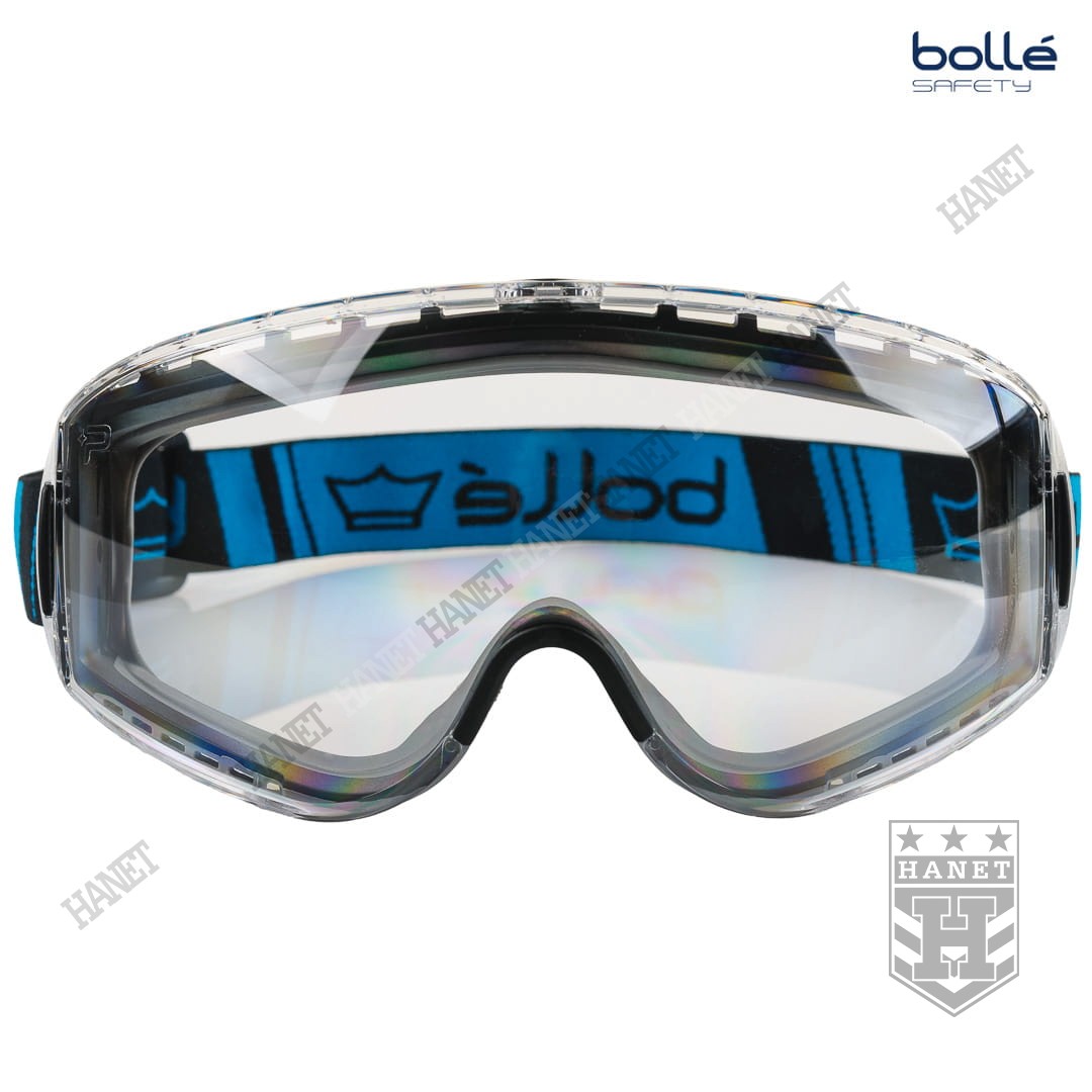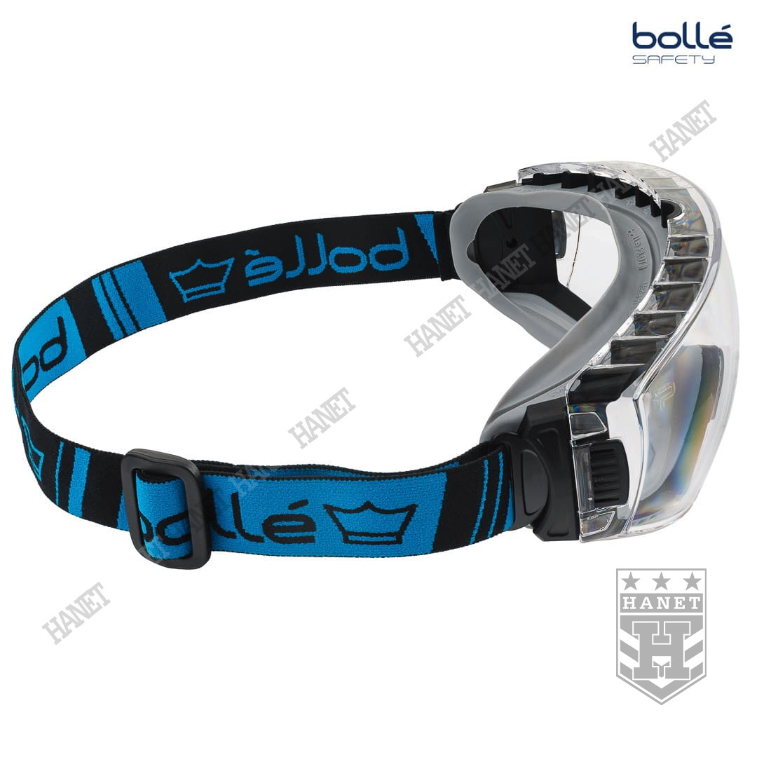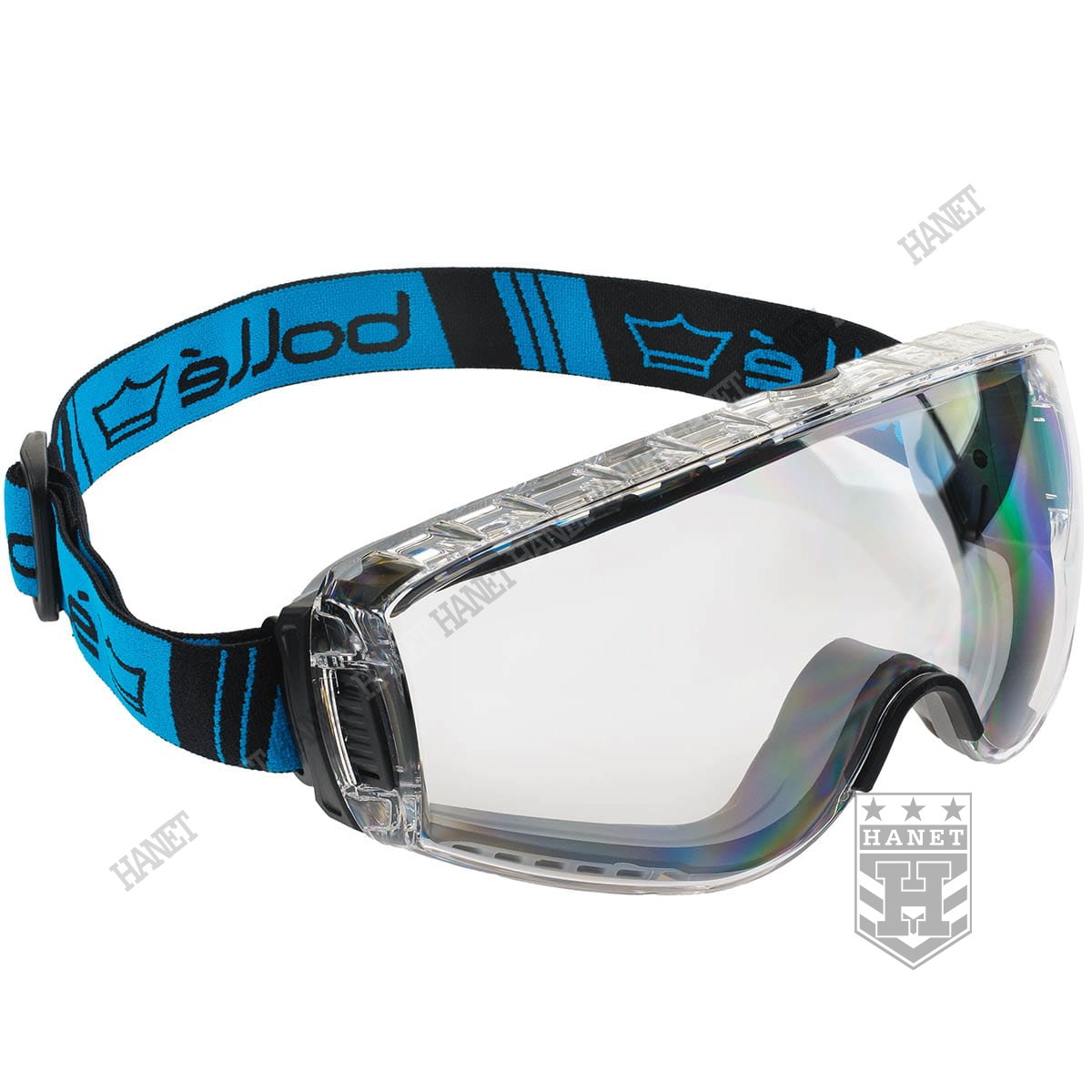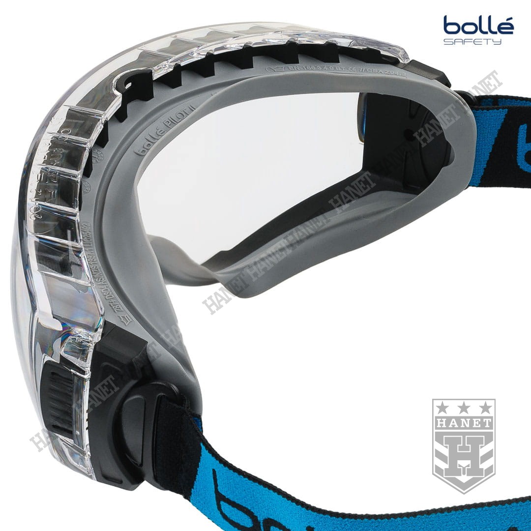 Nowoczesne gogle balistyczne. Oryginalny produkt renomowanej, francuskiej marki BOLLE® - gwarancja najwyższej jakości. Przystosowane do specyfiki pracy załóg statków powietrznych i pilotów. Doskonałe do pilotowania motolotni, paraglidingu oraz samolotów ultralekkich z otwartą kabiną. Konstrukcja gogli umożliwia jednoczesne używanie z okularami korekcyjnymi, nawet o dużym profilu. Wytrzymała szyba zapewnia ochronę narządów wzroku przed silnym wiatrem, deszczem, kurzem, olejem, insektami, a nawet stopionymi drobinami metalu. Posiadają certyfikat bezpieczeństwa EN 166 : 2001, chronią przed obiektami 6 mm o wadze 0,86 g, lecącymi z prędkością 120 m/s. Szyba CLEAR (kat. S0) przepuszcza maksimum światła, doskonała w każdych warunkach oświetleniowych. Panoramiczny wizjer wysokiej klasy optycznej, nie zniekształca obrazu oraz nie ogranicza pola widzenia. Wymienny, poliwęglanowy wizjer o grubości 2,1 mm. Technologia Anti-Fog przeciwdziała parowaniu i zbieraniu się wilgoci od wewnętrznej strony gogli. Powłoka Anti-Scratch chroni przez zarysowaniami. Wizjer osadzony w anatomicznej ramce z tworzyw termoplastycznych PP + TPV, hipoalergiczna (nie zawiera lateksu). Oprawka doskonale dolega do twarzy, jest miękka i wygodna. Specjalna konstrukcja gwarantuje szczelne przyleganie, chroni przed strugami powietrza i kroplami cieczy. Elastyczny, boczny profil oprawki przystosowany do okularów korekcyjnych różnych typów. Gogle pomagają utrzymać okulary w prawidłowej pozycji. System szczelin wentylacyjnych dodatkowo chroni przed parowaniem. Szczeliny skonstruowane tak, by przepuszczać drobiny kurzu o wielkości >5 mikronów. Szeroko umieszczone zaczepy umożliwiają noszenie gogli jednocześnie z nakryciami głowy oraz z kaskami różnych typów. Za utrzymanie pożądanej pozycji na głowie lub hełmie odpowiada elastyczna, nylonowa taśma. Guma nie ciągnie włosów i nie powoduje ucisku. Wygodna regulacja długości, pływająca sprzączka.