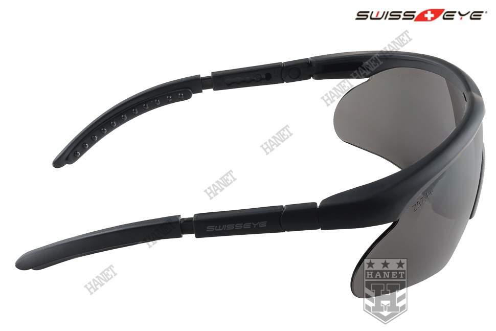 Nowoczesne okulary taktyczne, profesjonalny model. Oryginalny produkt renomowanej marki SWISSEYE® - gwarancja najwyższej jakości. Okulary SWISSEYE® są chętnie używane przez wojsko i policję wielu europejskich krajów. Linia TACTICAL gwarantuje wykonanie zgodne z surową specyfikacją militarną. Przystosowane do taktyki czarnej i zielonej, stanowią ochronę wrażliwych narządów wzroku przed urazami, słońcem, kurzem i wiatrem. Doskonałe do strzelectwa i sportów ekstremalnych. Posiadają regulację kąta i długości zauszników. Kompatybilne z wkładką do szkieł korekcyjnych. W zestawie znajdują się trzy wymienne wizjery, dzięki czemu okulary mogą być szybko dostosowane do warunków oświetleniowych. W komplecie znajduje się pokrowiec ochronny z mikrofibry, który zabezpiecza okulary przed brudem i spełnia rolę ściereczki do czyszczenia. Okulary zapakowane w estetyczne pudełko kartonowe.