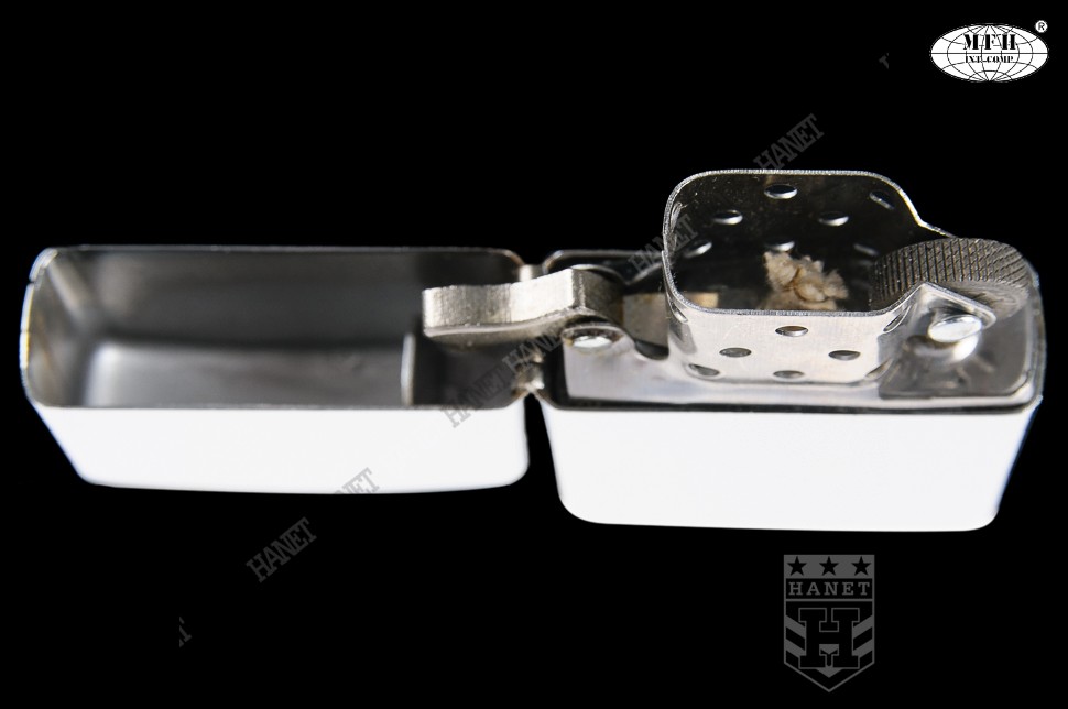 Klasyczna zapalniczka benzynowa produkcji niemieckiej. Wykonana według oryginalnej amerykańskiej specyfikacji w całości z metalu i z dużą dbałością o szczegóły. Bardzo stylowa i charakterystyczna. Doskonała do codziennego użytku. Znajdzie szerokie zastosowanie w turystyce, ułatwi rozpalenie ogniska czy grilla, daje duży i gorący płomień, może długo się palić. Wyposażona w blokadę przed samoczynnym otwieraniem i osłonę płomienia. Osłona od wiatru zapobiega zdmuchiwaniu płomienia. Zapala nawet na dużym wietrze i w niekorzystnych warunkach atmosferycznych. Specjalny knot z trudnopalnym rdzeniem i oplot sączący benzynę, dodatkowe druciki miedziane wzmacniają i usztywniają knot. Wymienny knot i kamień osadzony na sprężynie. Zbiorniczek wypełniony materiałem absorbującym benzynę, brak przecieków i wylewania.