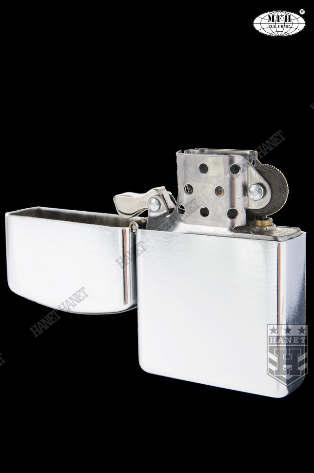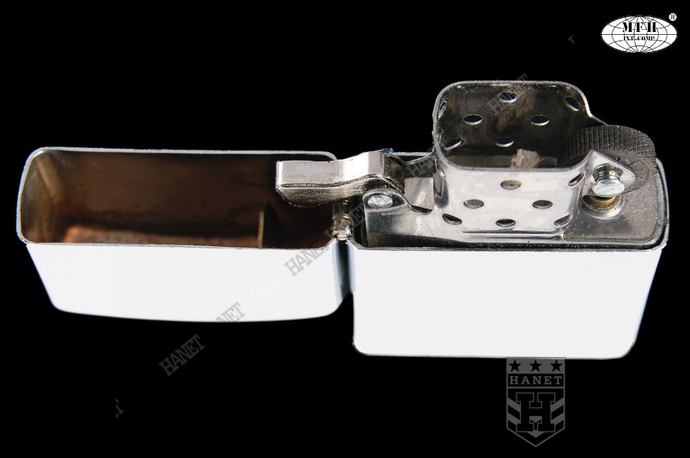 Klasyczna zapalniczka benzynowa produkcji niemieckiej. Wykonana według oryginalnej amerykańskiej specyfikacji w całości z metalu i z dużą dbałością o szczegóły. Bardzo stylowa i charakterystyczna. Doskonała do codziennego użytku. Znajdzie szerokie zastosowanie w turystyce, ułatwi rozpalenie ogniska czy grilla, daje duży i gorący płomień, może długo się palić. Wyposażona w blokadę przed samoczynnym otwieraniem i osłonę płomienia. Osłona od wiatru zapobiega zdmuchiwaniu płomienia. Zapala nawet na dużym wietrze i w niekorzystnych warunkach atmosferycznych. Specjalny knot z trudnopalnym rdzeniem i oplot sączący benzynę, dodatkowe druciki miedziane wzmacniają i usztywniają knot. Wymienny knot i kamień osadzony na sprężynie. Zbiorniczek wypełniony materiałem absorbującym benzynę, brak przecieków i wylewania.