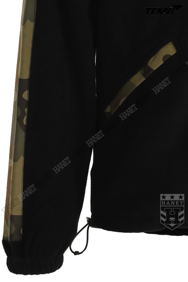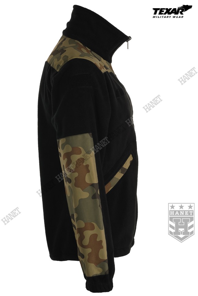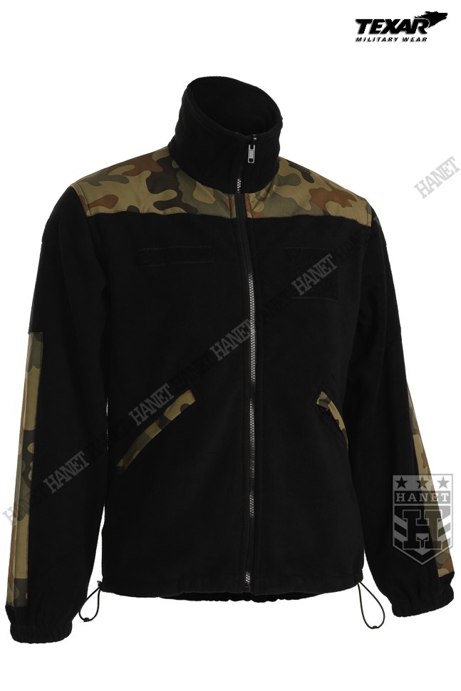 Nowoczesna bluza polarowa WP. Termoaktywna, daje komfort termiczny w niekorzystnych warunkach atmosferycznych, chroni przed wiatrem, przemoczeniem i wyziębieniem. Bardzo wygodna, idealna również na co dzień. Uszyta z gęstego polaru Microfleece (100% poliester). Microfleece zachowuje swoje właściwości izolacyjne nawet po przemoczeniu, jest szybkoschnący, antybakteryjny i miły w dotyku. Miejsca najbardziej podatne na zużycie i zabrudzenie (ramiona i barki) zostały obszyte wodoodpornym materiałem z oddychającą membraną. Obszycia stanowią ochronę przed przemakaniem na deszczu. Dwie praktyczne kieszenie zamykane na zamki, umieszczone klasycznie na brzuchu. Wnętrze kieszeni uszyte z gęstej, oddychającej siatki. Zamki kieszeni osłonięte patkami z wodoodpornego materiału. Bluza zapinana na ekspres z metalowym suwakiem. Wysoka stójka chroni przed wiatrem. W mankietach wszyto elastyczne gumy. Ściągacz u dołu bluzy, pozwala dostosować ją do różnych sylwetek i zapobiega podwiewaniu. Dwa niezależne ściągacze z szybką regulacją i stoperami (prawy i lewy). Na rękawach i piersi zostały naszyte rzepy na flagi, nazwisko, stopień, morale patch, osobisty identyfikator operacyjny lub naszywkę formacji. Wyposażona w szlufkę do zawieszania. Bluza jest kompatybilna z kurtką GROM.