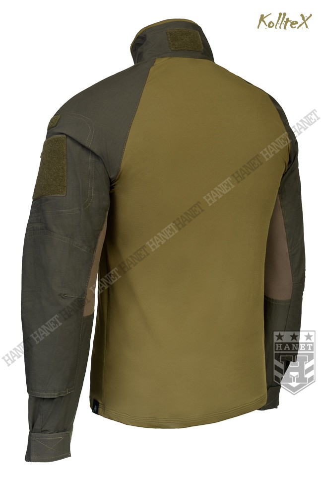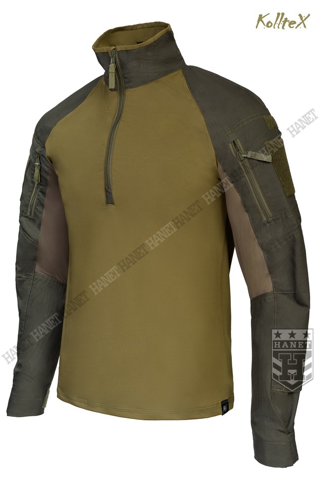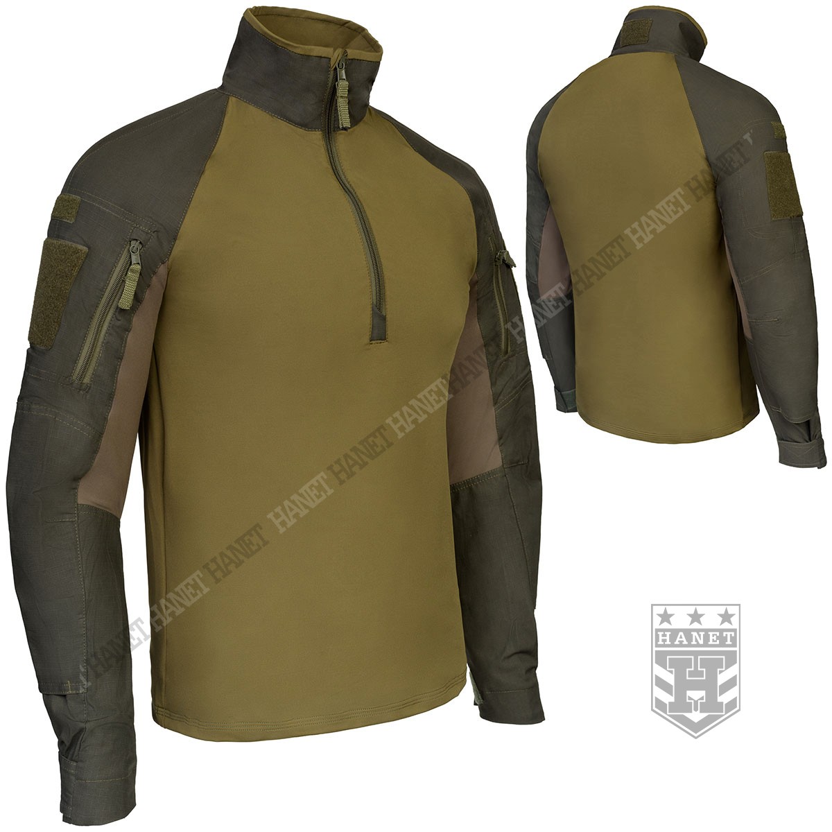 Praktyczny krój zapożyczony z legendarnych Combar Shirt US Army. Wzór został wzbogacony o szereg nowych rozwiązań i ulepszeń. Przeprojektowany krój zapewnia maksymalny komfort i lepszą wymianę ciepła. Rękawy, barki i stójka uszyte z materiału NYCO. Technologia Rip-Stop to specjalna technika wzmacniania materiału, poprzez dodanie w splot tkaniny mocniejszych włókien - charakterystyczna kratka. Solidna i jednocześnie przewiewna tkanina NYCO 50% nylon i 50% bawełna. Nylon zapewnia szybkie wysychanie, wytrzymałość i odporność na spieranie kolorów. Bawełna chłonie wilgoć, dobrze oddycha i jest miła w dotyku. Rękawy wyposażone w zaszewki na łokciach, które zapobiegają wypychaniu materiału i jego ściąganiu w miejscu zgięcia stawu - przystosowane do długotrwałego zgięcia ręki w łokciu. Mankiety na rzepy umożliwiają założenie rękawic pod rękaw. Przedłużenie mankietów od wierzchniej strony dłoni chroni nasadę dłoni przed otarciami. Łaty wzmacniające na łokciach pełną rolę kieszeni na miękkie ochraniacze. Kieszonki na wkłady zamykane na rzepy. Na ramionach znajdują się duże kieszenie na zamki Alpha. Suwaki wyposażone w tasiemki ułatwiające obsługę ekspresów w rękawicach. Na kieszeniach naszyto duże panele z miękkiego rzepu VELCRO, do mocowania naszywek formacji lub morale patch oraz rzepy na flagi. Zamek pod szyją dla wygodnego zakładania bluzy. Do rozpinania bluzy użyto solidnego zamka YKK z tasiemką przy suwaku. Zamek od strony ciała i brody chroniony listwą. Wysoka stójka obszyta od wewnątrz cienkim, miłym w dotyku polarem, który chroni szyję przed obtarciami od zawieszenia broni. Z tyłu kołnierza umieszczono rzep na naszywki swój-obcy. Dolna krawędź bluzy wzmacniania. Kilkukrotne szwy z nici Ariadna, i dodatkowe przeszycia w newralgicznych miejscach.