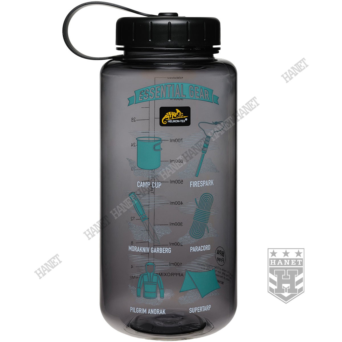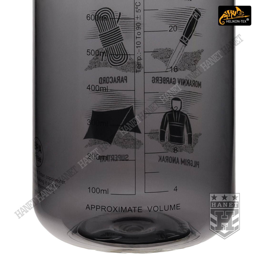 Butelka wykonana z zaawansowanego tworzywa TRITAN™. Tworzywo jest pozbawione szkodliwego bisfenolu-a (BPA FREE), które znajduje się w większości tworzyw sztucznych i popularnych butelkach PET. Zastosowany materiał poza ochroną zdrowia zapewnia brak obcych smaków. TRITAN™ to tworzywo odporne na uszkodzenie w zarówno w niskich jak i wysokich temperaturach. TRITAN™ ma bardzo wysoką odporność chemiczną, nie reaguje z sokami, kawą i innymi napojami. Tworzywo jest przystosowana do temperatur od -10°C do +90°C. Butelka w wersji Smoked, półprzeźroczysta (przyciemniana). Grafika Gear przypomina o zabraniu na wyprawę podstawowego wyposażenia - smaczek dla miłośników bushcraftu. Naniesiona podziałka pozwala na dokładną ocenę objętości pozostałej cieczy (ml i oz).