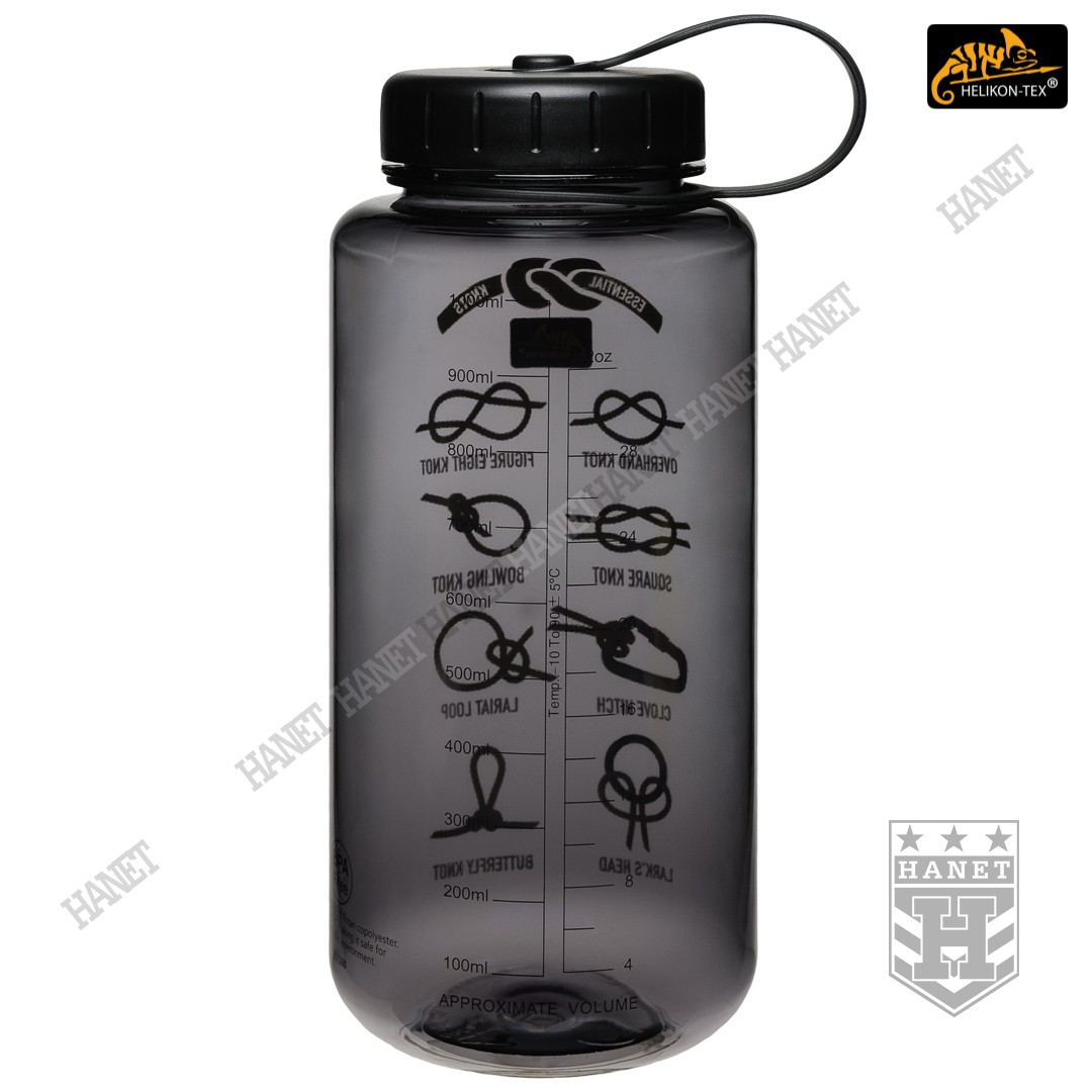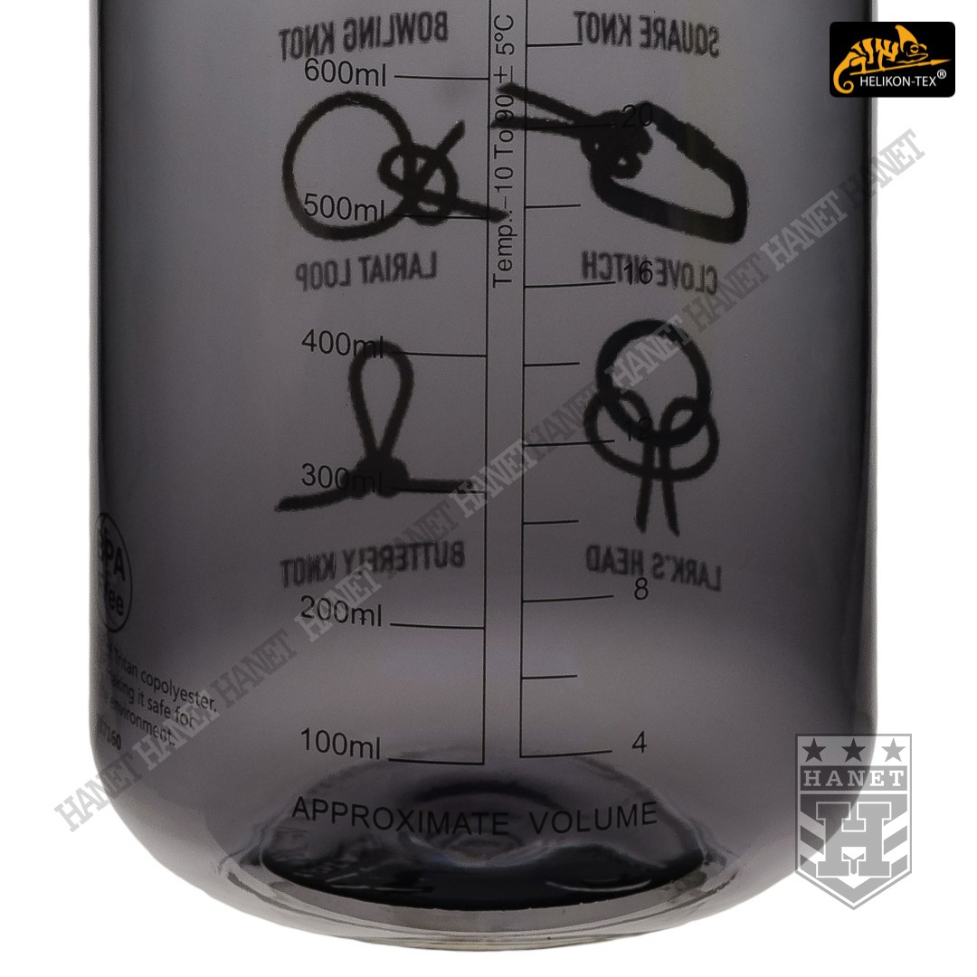 Butelka wykonana z zaawansowanego tworzywa TRITAN™. Tworzywo jest pozbawione szkodliwego bisfenolu-a (BPA FREE), które znajduje się w większości tworzyw sztucznych i popularnych butelkach PET. Zastosowany materiał poza ochroną zdrowia zapewnia brak obcych smaków. TRITAN™ to tworzywo odporne na uszkodzenie w zarówno w niskich jak i wysokich temperaturach. TRITAN™ ma bardzo wysoką odporność chemiczną, nie reaguje z sokami, kawą i innymi napojami. Tworzywo jest przystosowana do temperatur od -10°C do +90°C. Butelka w wersji Smoked, półprzeźroczysta (przyciemniana). Grafika Knots - instrukcja obrazkowa wiązania 8 podstawowych węzłów. Naniesiona podziałka pozwala na dokładną ocenę objętości pozostałej cieczy (ml i oz).