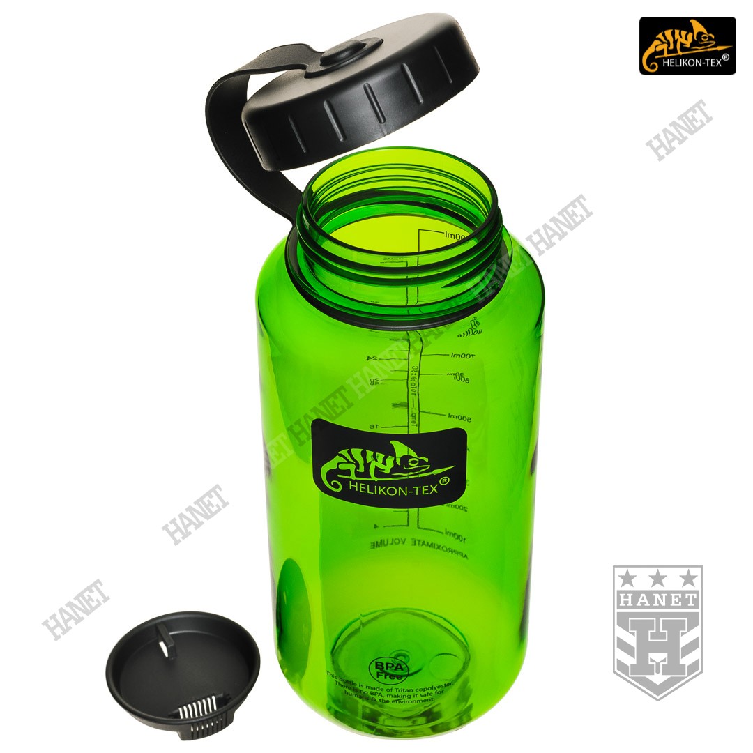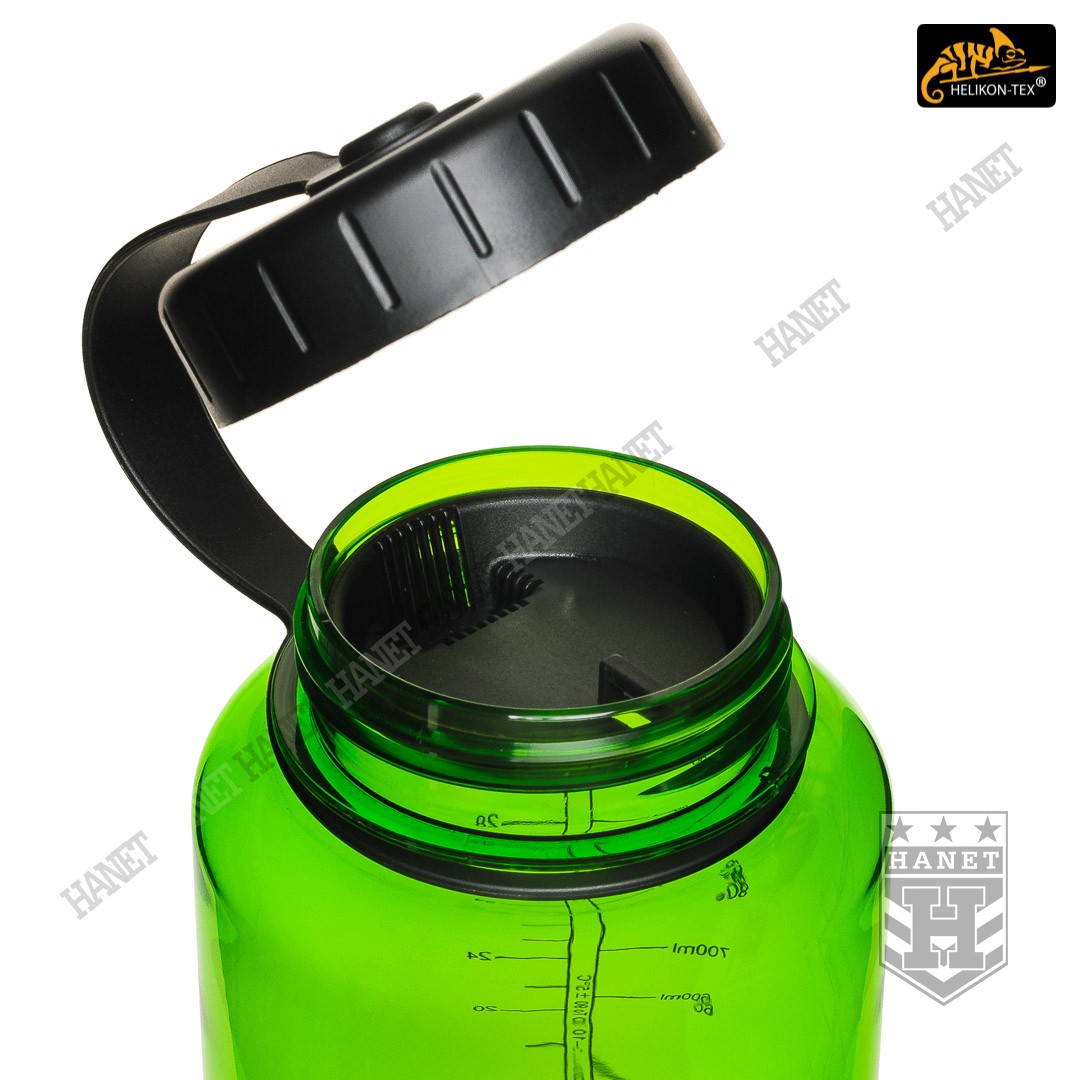 Duża butelka na wodę o pojemności 1l. Lekka i wytrzymała, jest idealna na wyprawy bushcraftowe, do outdooru oraz do uprawiania sportu - znacznie wygodniejsza niż standardowy bidon lub manierka. Butelka posiada szeroką szyjkę, wlew o średnicy aż 54mm ułatwia szybkie napełnianie oraz wygodne mycie wnętrza. Duża średnica wlewu pozwala na przygotowanie w butelce i spożycie z niej gorącego posiłku (np. zupa instant) - tworzywo TRITAN™ jest przeznaczone dla płynów o temperaturze nieco niższej niż wrzątek, tj. <90°C. Zakrętka wykonana z solidnego tworzywa, konstrukcja bezuszczelkowa wykorzystująca kołnierz uszczelniający (jak w butelce PET) gwarantuje długowieczność użytkowania. Zakrętka posiada element zabezpieczający przed zgubieniem. Zabezpieczenie zakrętki przydaje się jako uchwyt napełnienia wody np. ze strumienia - pomaga zachować suche rękawice. Szeroki gwint zapobiega zacięciom podczas zakręcania i daje odporność na zalodzenie. Wyciągany dławik / sitko pozwala ograniczyć ilość wypływającej wody, umożliwia na wygodne picie w ruchu. Dławik posiada odpowietrznik dla niezakłóconego przepływu płynów. Sitko dodatkowo filtruje większe zanieczyszczenia stałe podczas napełniania butelki.