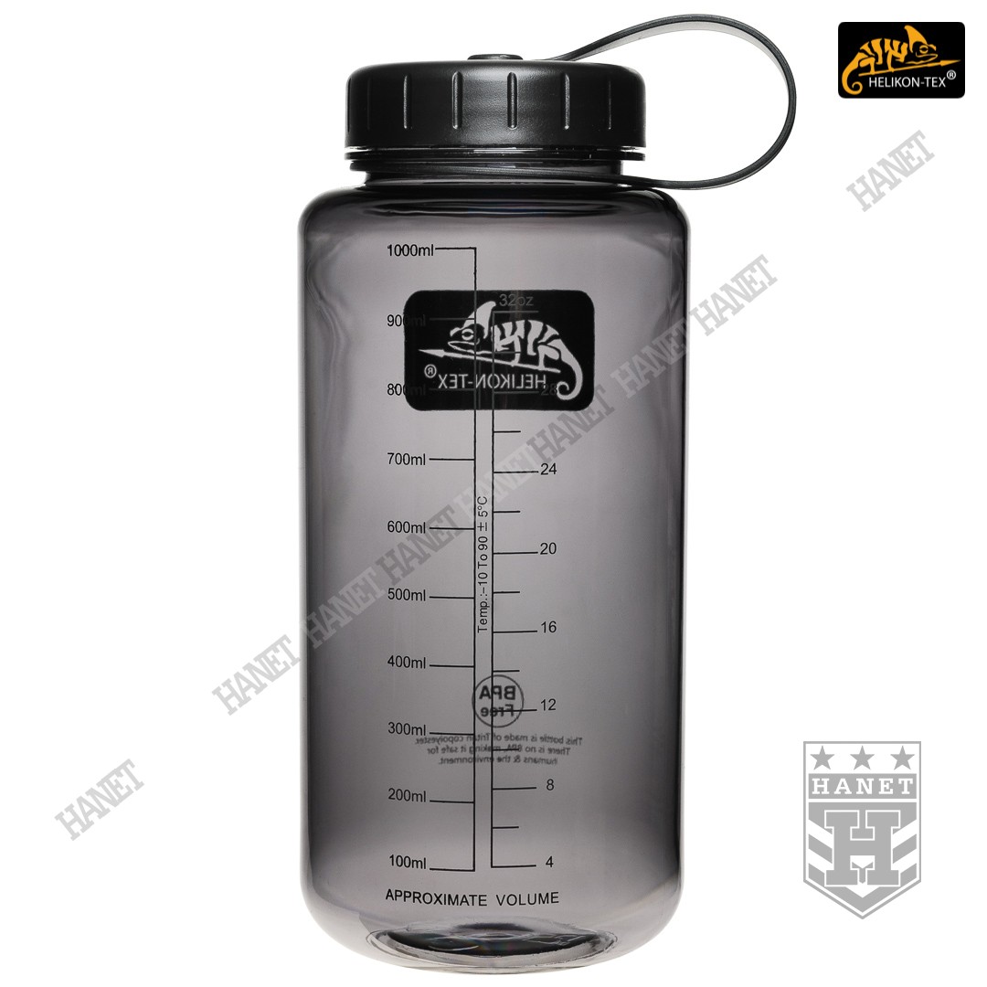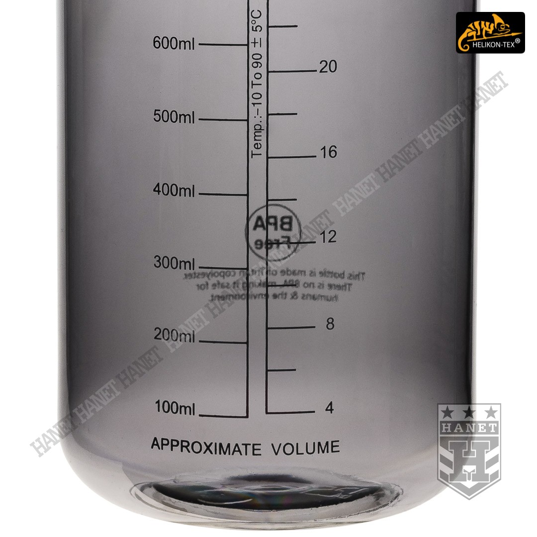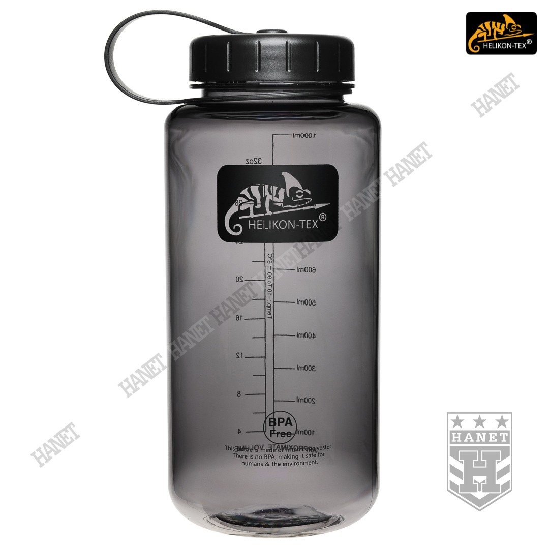 Duża butelka na wodę o pojemności 1l. Lekka i wytrzymała, jest idealna na wyprawy bushcraftowe, do outdooru oraz do uprawiania sportu - znacznie wygodniejsza niż standardowy bidon lub manierka. Butelka posiada szeroką szyjkę, wlew o średnicy aż 54mm ułatwia szybkie napełnianie oraz wygodne mycie wnętrza. Duża średnica wlewu pozwala na przygotowanie w butelce i spożycie z niej gorącego posiłku (np. zupa instant) - tworzywo TRITAN™ jest przeznaczone dla płynów o temperaturze nieco niższej niż wrzątek, tj. <90°C. Zakrętka wykonana z solidnego tworzywa, konstrukcja bezuszczelkowa wykorzystująca kołnierz uszczelniający (jak w butelce PET) gwarantuje długowieczność użytkowania. Zakrętka posiada element zabezpieczający przed zgubieniem. Zabezpieczenie zakrętki przydaje się jako uchwyt napełnienia wody np. ze strumienia - pomaga zachować suche rękawice. Szeroki gwint zapobiega zacięciom podczas zakręcania i daje odporność na zalodzenie. Wyciągany dławik / sitko pozwala ograniczyć ilość wypływającej wody, umożliwia na wygodne picie w ruchu. Dławik posiada odpowietrznik dla niezakłóconego przepływu płynów. Sitko dodatkowo filtruje większe zanieczyszczenia stałe podczas napełniania butelki.