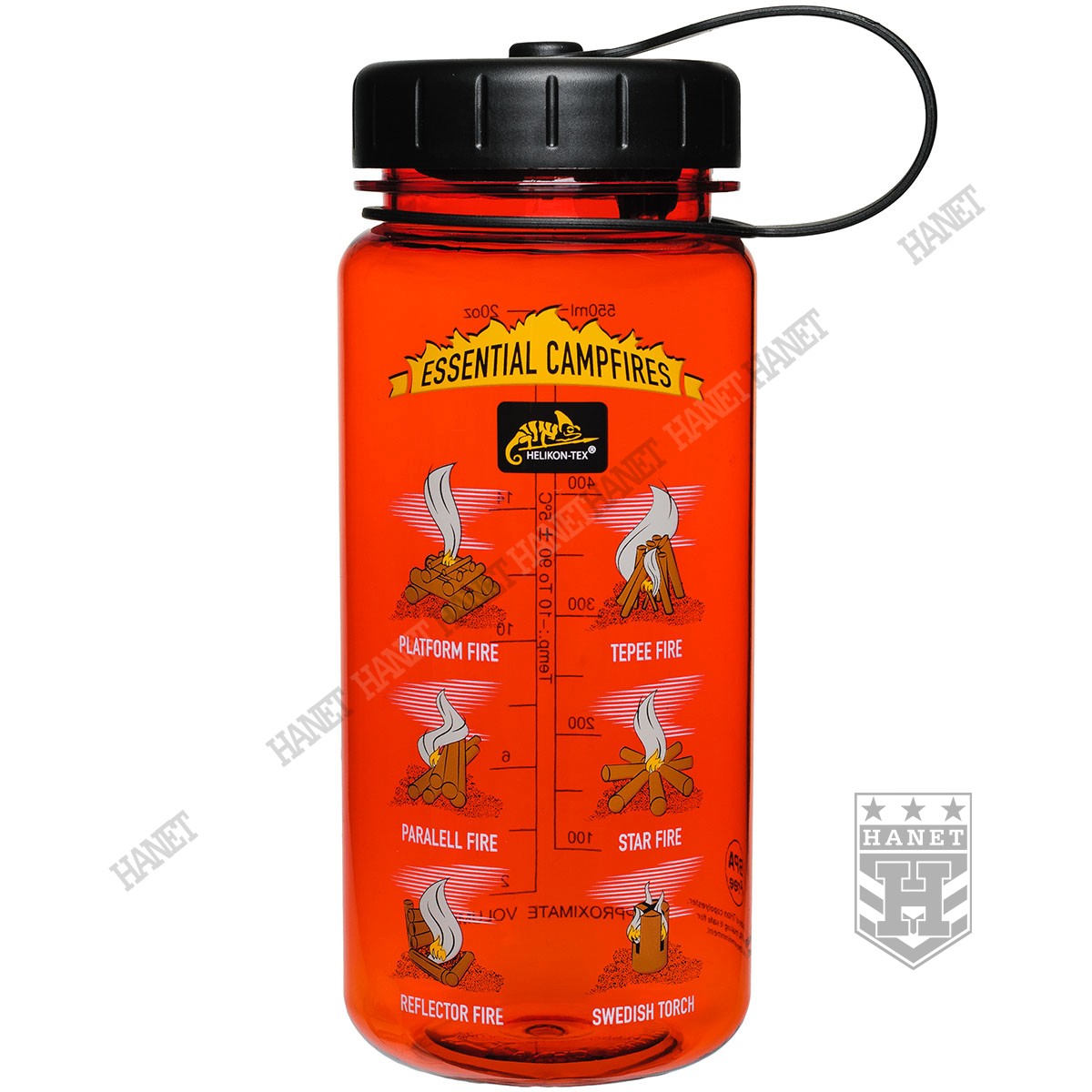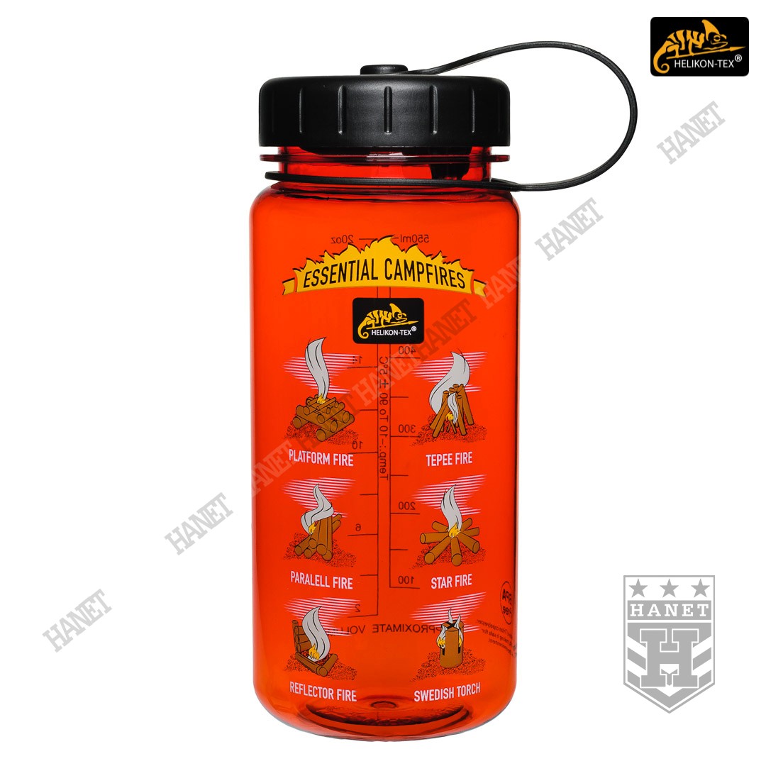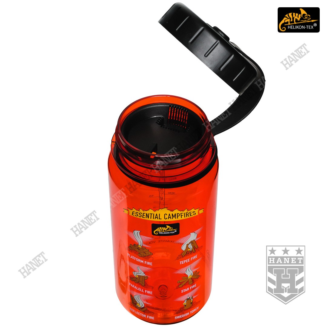 Butelka na wodę o pojemności 550ml. Lekka i wytrzymała, jest idealna na wyprawy bushcraftowe, do outdooru oraz do uprawiania sportu - znacznie wygodniejsza niż standardowy bidon lub manierka. Butelka posiada szeroką szyjkę, wlew o średnicy aż 55 mm ułatwia szybkie napełnianie oraz wygodne mycie wnętrza. Duża średnica wlewu pozwala na przygotowanie w butelce i spożycie z niej gorącego posiłku (np. zupa instant) - tworzywo TRITAN™ jest przeznaczone dla płynów o temperaturze nieco niższej niż wrzątek, tj. <90°C. Zakrętka wykonana z solidnego tworzywa, konstrukcja bezuszczelkowa wykorzystująca kołnierz uszczelniający (jak w butelce PET) gwarantuje długowieczność użytkowania. Zakrętka posiada element zabezpieczający przed zgubieniem. Zabezpieczenie zakrętki przydaje się jako uchwyt napełnienia wody np. ze strumienia - pomaga zachować suche rękawice. Szeroki gwint zapobiega zacięciom podczas zakręcania i daje odporność na zalodzenie. Wyciągany dławik / sitko pozwala ograniczyć ilość wypływającej wody, umożliwia na wygodne picie w ruchu. Dławik posiada odpowietrznik dla niezakłóconego przepływu płynów. Sitko dodatkowo filtruje większe zanieczyszczenia stałe podczas napełniania butelki.