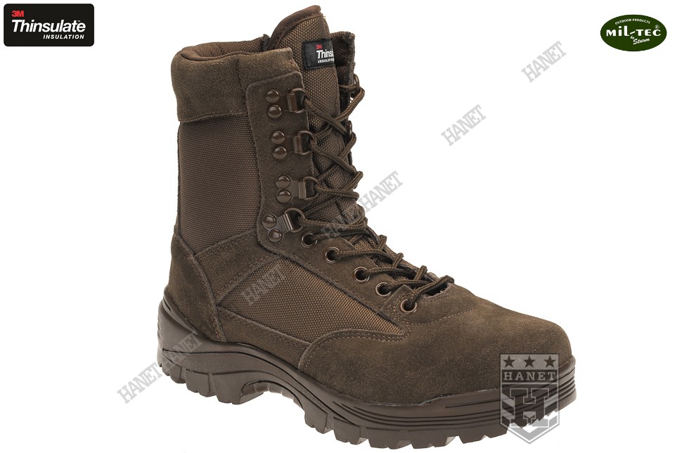 Nowy model profesjonalnych butów taktycznych stworzony do użytkowania w najcięższych warunkach, zyskał uznanie za wygodę i niezawodność u służb mundurowych na całym świecie. Wykonany według najnowszej technologii z najmocniejszych materiałów i wyselekcjonowanej skóry. Buty wyposażone w boczny, bardzo wytrzymały zamek firmy YKK umożliwiający bardzo szybkie założenie w każdej sytuacji. Sam zamek dodatkowo chroniony listwą nie wywiera wpływu na wygodę buta, specjalny system zabezpieczający mimowolne otwarcie. Wyposażone w specjalną warstwę izolacyjną THINSULATE firmy 3M. Cholewka wykonana z wysokogatunkowej skóry zamszowej i najmocniejszego, wodoodpornego nylonu 1200D (denirów) cechującego się dużą wytrzymałością na cięcia i przetarcia. Cholewa wykończona miękkim zamszowym kołnierzem zapewniającym szczelność buta. Nierdzewny, dwupatentowy system szybkiego sznurowania. Podeszwa szyta i klejona, wykonana z gumy węglowej, olejoodpornej. Bieżnik zapewnia doskonałą przyczepność i ochronę stopy przed różnymi urazami, dodatkowo wzbogacony o uchwyt drabinowy. Wzmacniane, utwardzane noski oraz system stabilizacji pięty zapewnia bezpieczeństwo i wygodę. W komplecie bardzo mocne, nylonowe sznurówki.