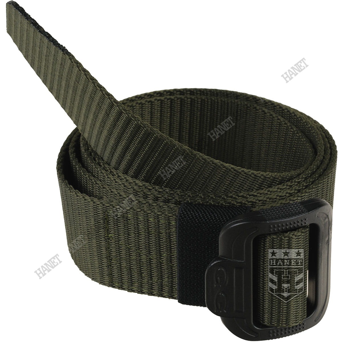 Taśma parciana wykonana z solidnych włókien nylonowych. Plecionka ma zwiększoną sztywność poprzeczną dzięki czemu ładownice dobrze trzymają się na pasie. Poprzeczne karbowanie taśmy zabezpiecza przed przesuwaniem się elementów oporządzenia oraz zwiększa oddychalność pasa. Niska sztywność wzdłużna daje wysoki komfort podczas codziennego noszenia. Pas jest miękki i aksamitny w dotyku. Ścięta końcówka taśmy ułatwia przewleczenie jej przez klamrę. Elastyczna, ruchoma szlufka pozwala zabezpieczyć wolny koniec pasa. Plecionka o szerokości 1,5" (ok. 3,8 cm), bez problemu mieści się w wąskich szlufkach dżinsów i pasuje do szerokich szlufek spodni taktycznych.