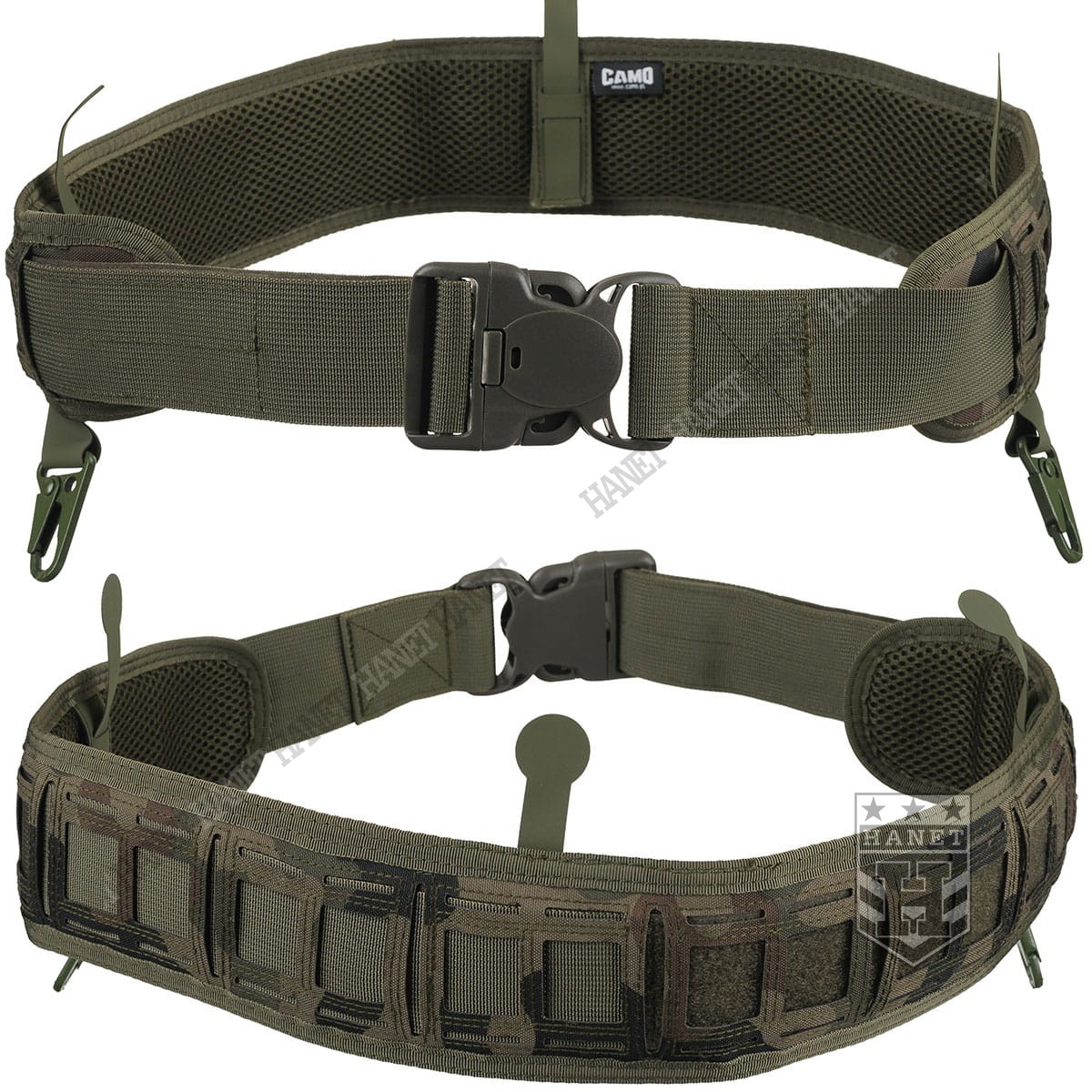 Pas na oporządzenie w systemie modularnym MOLLE / PALS. System modularny został wykonany w nowoczesnej technologii Laser Cut. Przeznaczony do mocowania różnego rodzaju ładownic, apteczki, kieszeni, kabur oraz innego sprzętu. Pas posiada możliwość założenia na pas wewnętrzny, np. pasek od spodni. Wypełnienie z miękkiej pianki i obszycie z oddychającej siatki dla pełnego komfortu. Pas typu soft, miękki i niskoprofilowy.