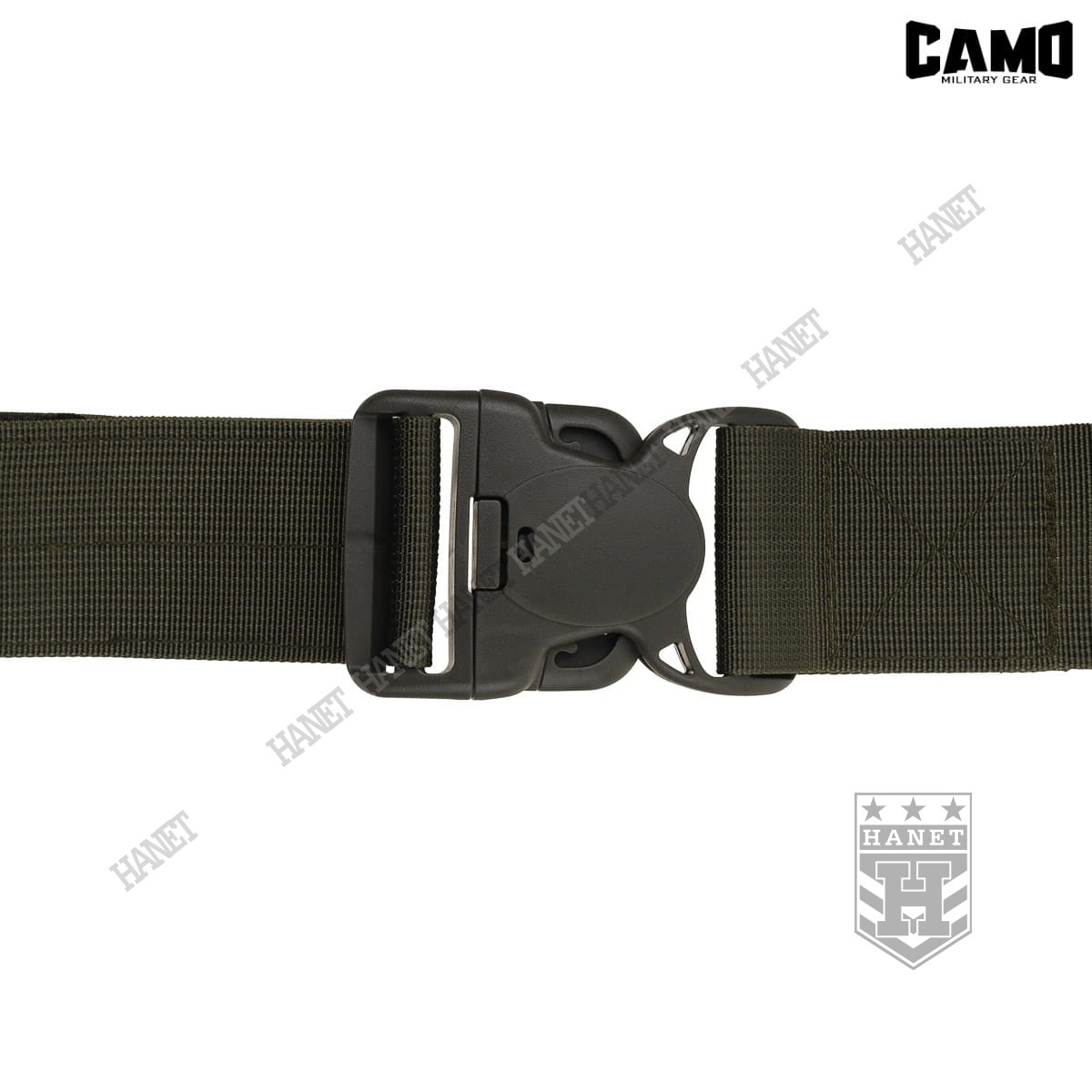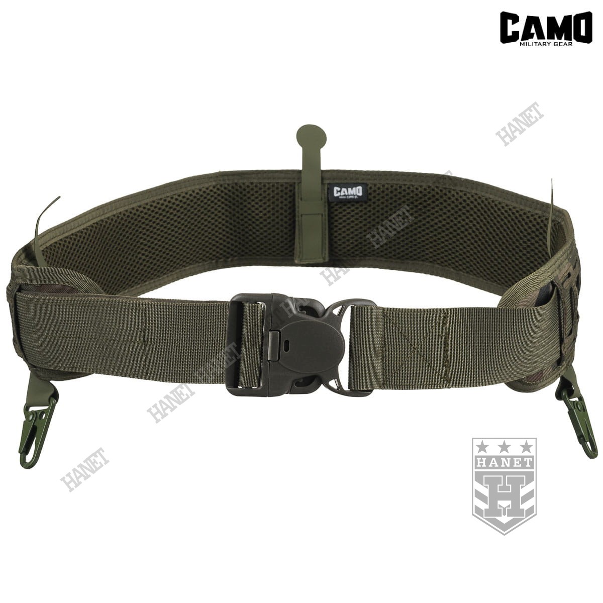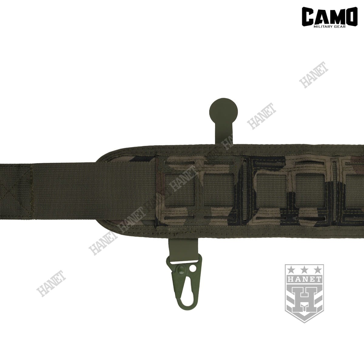 Zapinany na nowoczesną klamrę Double Lock. Do rozpięcia klamry koniecznie jest jednoczesne wciśnięcie przycisku od frontu – większa odporność klamry na obciążenia i zabezpieczenie przed przypadkowym odpięciem. Regulacja pasa za pomocą długiego rzepu. Miękkie wypełnienie z relatywnie cienkiej pianki daje komfort, a jednocześnie nie powoduje zbyt dużego odsunięcia oporządzenia od ciała. Pas od wewnątrz został obszyty oddychającą siatką 3D. Pas posiada trzy rozpinane szlufki, które pozwalają założyć go na pas wewnętrzny, np. pasek od spodni. Szlufki zapinane na rzep, przedłużone uchwyty z materiału typu hypalon umożliwiają odpięcie rzepów gdy pas jest zapięty. Dwa boczne karabinki typu Clash Hook pozwalają na podpięcie rękawic, timera strzeleckiego i rękawic.