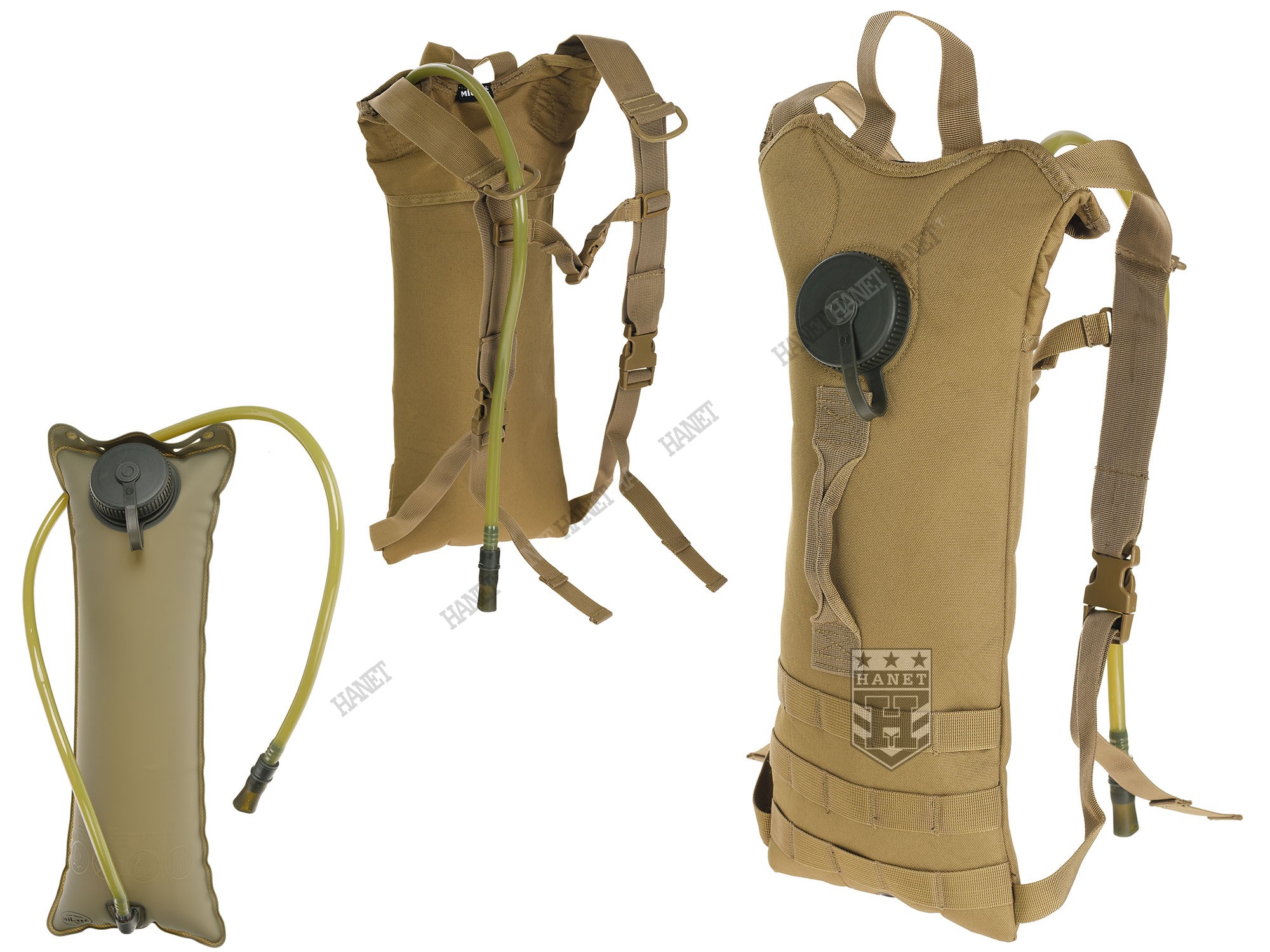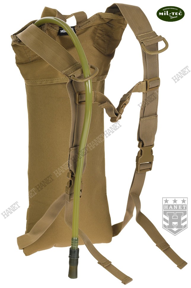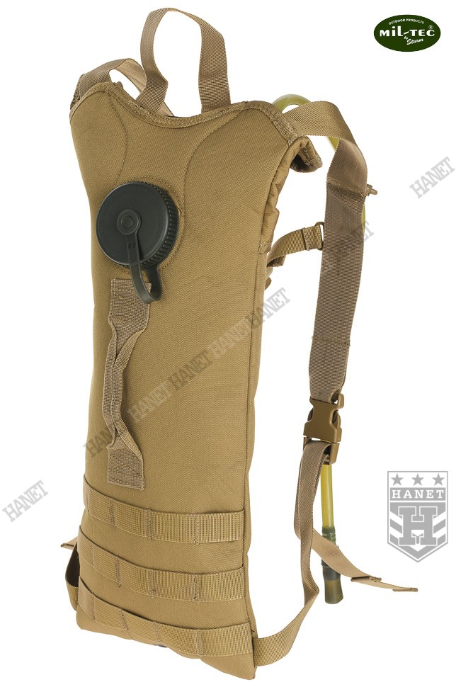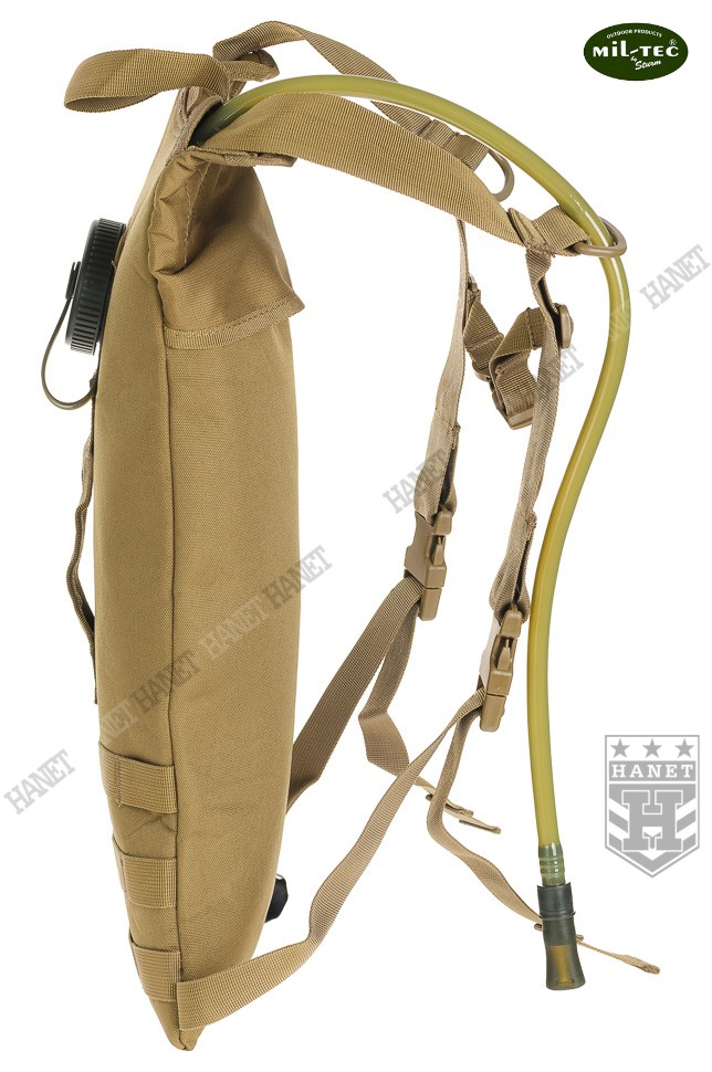 System hydracyjny w plecaku / pokrowcu modularnym. Produkt niemieckiej firmy Mil-Tec. Specyfikacja militarna gwarantuje solidność i niezawodność. Camelbak zapewnia stały i łatwy dostęp do wody podczas marszu, patroli, taktyki, jazdy na rowerze lub podczas innych absorbujących i męczących zajęć gdy trzeba często uzupełniać płyny. Polecany miłośnikom sportów ekstremalnych i każdemu kto aktywnie spędza czas. Nowoczesna konstrukcja, szczelna i wytrzymała. Bukłak na wodę o pojemności 3,0 L - posiadający 12 patentów w 4 krajach. Wkład WATER BLADER wykonany z mocnego i elastycznego tworzywa - antybakteryjnego i nie pozostawiającego obcych smaków. Półprzeźroczysty, z podziałką dzięki której można kontrolować dokładną ilość pozostałej cieczy. Duży wlew zapewnia łatwe napełnienie wodą i możliwość mycia. Możliwość noszenia kostek lodu. Rurka o długości 115 cm z nowatorskim zaworkiem (kranikiem) i dodatkowym ustnikiem gumowym. Kranik łatwy i szybki w obsłudze, wystarczy go wysunąć (jak w bidonie). Duża średnica rurki zapewnia dobry przepływ wody a grube ścianki zapobiegają jej ściskaniu. Pokrowiec wykonany z prasowanego NEOPRENU pokrytego warstwą mocnego nylonu. Neopren daje izolację termiczną, zabezpiecza płyn przed nagrzaniem lub zamarzaniem. Panel montażowy w systemie MOLLE 25 mm do mocowania dodatkowych kieszeni. Niezwykle wygodny system nośny: regulowane, oddychające szelki wzmocnione taśmą. Taśma piersiowa daje stabilności podczas biegu, wyposażona w regulację wysokości i długości. System szybkiego zrzutu plecaka QR - klamry w szelkach. Uchwyty do rurki - D-ring mocowane na obu szelkach. Dla lewo i prawo ręcznych. Wygodny uchwyt transportowy od frontu oraz ucho do zawieszenia. Specjalna kieszeń przeznaczona na wkład hydracyjny, wyposażona w wewnętrzne sznurki do montażu. U dołu nabity nit - otwór do odprowadzania wody z wnętrza camelbaka przydatny w wypadku zalania, możliwość mycia pokrowca. Dla lewo i prawo ręcznych.