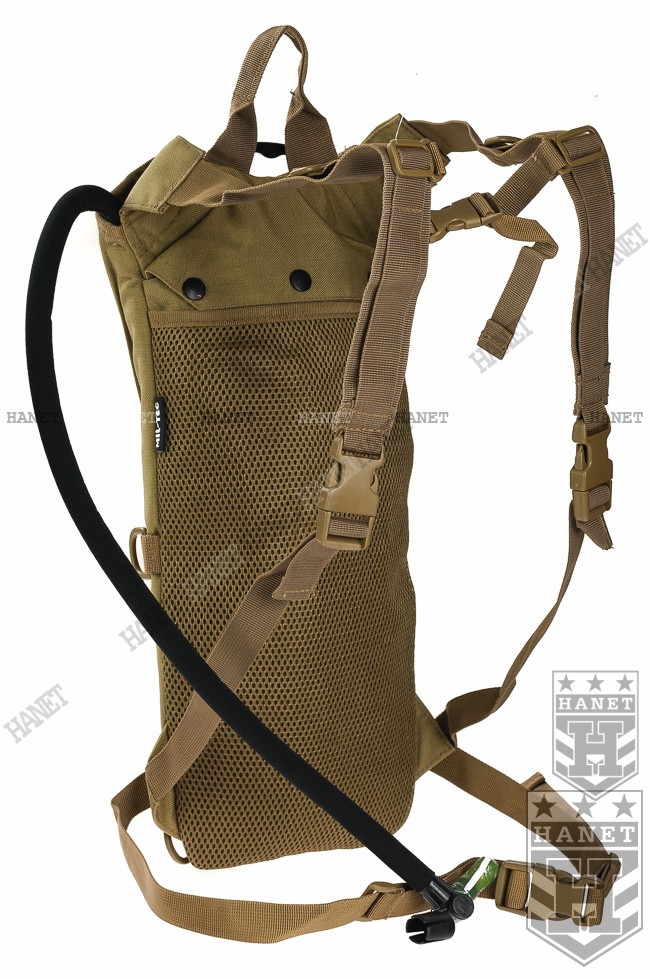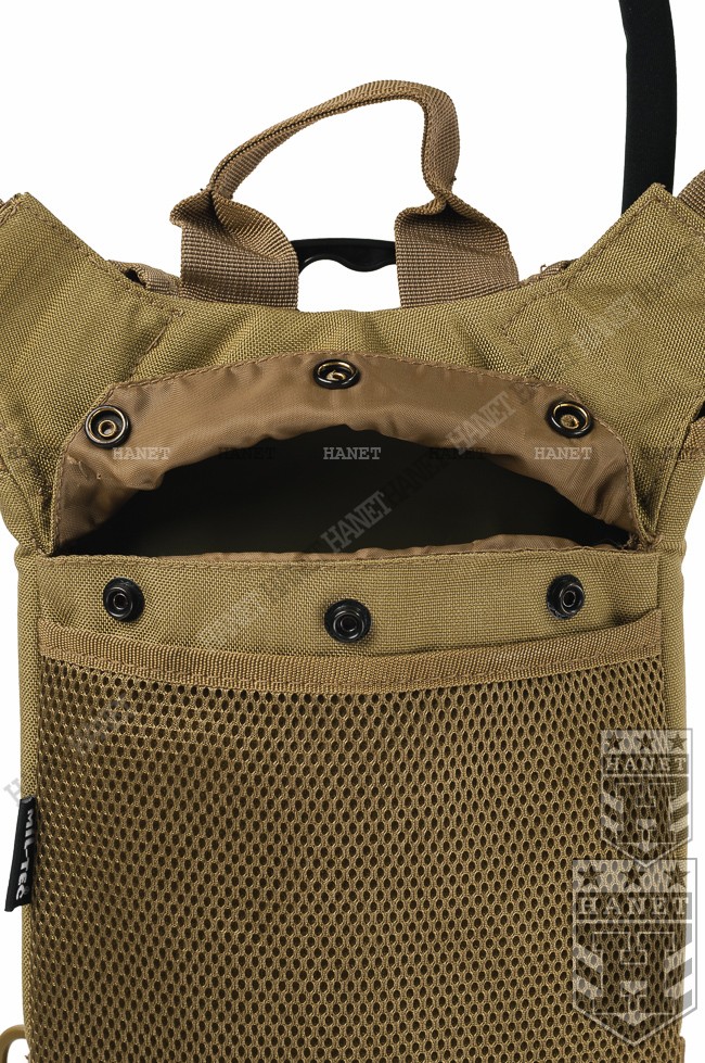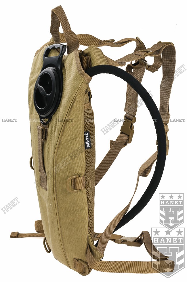 Wygodny plecak transportowy MIL SPEC. Nowoczesna konstrukcja, wygodna i wytrzymała. Pokrowiec wykonany z dwóch warstw mocnego i wodoodopornego nylonu CORDURA 1000D. Izolacja termiczna plecaka zapobiega nadmiernemu nagrzewaniu lub zamarzaniu wody. Niezwykle wygodny system nośny: regulowane szelki wzmocnione taśmą. Taśma piersiowa z regulacją wysokości i długości oraz taśma biodrowa poprawiają stabilność podczas biegu. System szybkiego zrzutu plecaka QR - klamry w szelkach. Plecy usztywniane, obszyte wytrzymałą siatką 3D zachowującą odpowiedni dystans od ciała - znacznie zwiększa cyrkulację powietrza pod plecakiem. Dodatkowa kieszeń pod siatką 3D. U dołu nabity nit - otwór do odprowadzania wody z wnętrza camelbaku przydatny w wypadku zalania, możliwość mycia pokrowca. Uchwyty do rurki - D-ring mocowane na obu szelkach. Dla lewo i prawo ręcznych. Wygodny uchwyt transportowy od frontu oraz ucho do zawieszenia. Cztery D-ringi do mocowania podręcznych przedmiotów lub mocowania na plecaku.