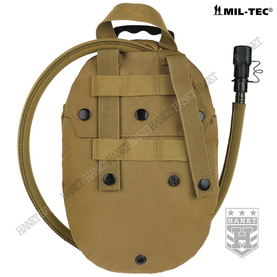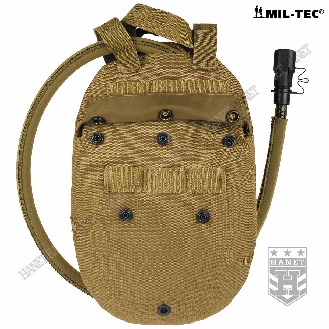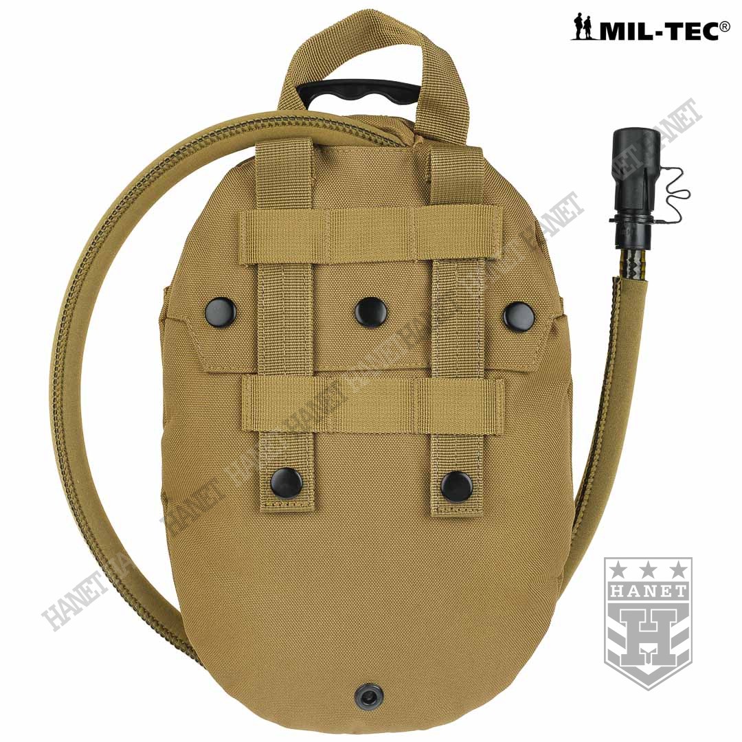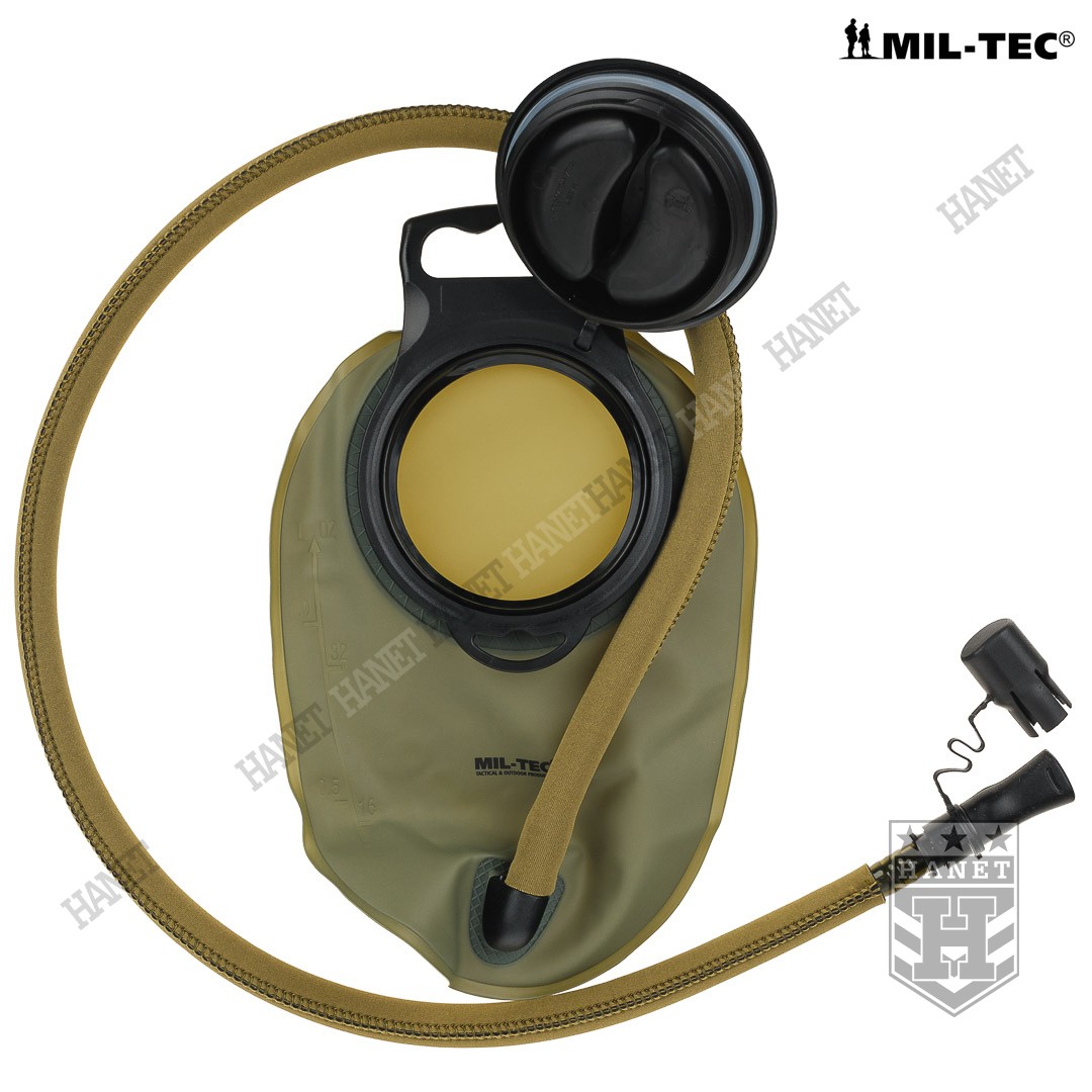 Taktyczny system hydracyjny w zasobniku / pokrowcu modularnym. Camelbak zapewnia stały i łatwy dostęp do wody podczas marszu, patroli, taktyki, jazdy na rowerze lub podczas innych absorbujących i męczących zajęć gdy trzeba często uzupełniać płyny. Produkt niemieckiej firmy Mil-Tec, linia Professional. Model opracowany na podstawie doświadczeń żołnierzy jednostek specjalnych. Pokrowiec z systemem montażowym MOLLE 25 mm, jest integralną częścią modularnego oporządzenia taktycznego (kamizelki, panele, plecaki itp.). Niezwykle lekki i kompaktowy - przystosowany do taktyki czarnej (Anty Terrorystycznej) i MOUT (Military Operations on Urban Terrain). Polecany także graczom ASG i paintballowcom. Pojemność 1,5 L - idealna na kilkugodzinne akcje, patrole lub strzelanki. Nowoczesna konstrukcja, szczelna i wytrzymała. Pokrowiec wykonany z mocnego nylonu 600D, usztywniany i profilowany pianką termo-izolacyjną która zapobiega nadmiernemu nagrzewaniu lub zamarzaniu wody. Pianka stanowi dodatkową osłonę wkładu hydracyjnego przed uszkodzeniem mechanicznym. Cztery D-ringi do podczepiania elementów wyposażenia umożliwiają również zamocowanie szelek i noszenie jak plecak. U dołu otwór do odprowadzania wody z wnętrza camelbaka przydatny w wypadku zalania, możliwość mycia pokrowca pod bieżącą woda. Uniwersalny wkład - pasuje do plecaków i kamizelek taktycznych. Bukłak na wodę o pojemności 1,5 L wykonany z wytrzymałego i elastycznego tworzywa. Duży i sztywny wlew umożliwia włożenie ręki do środka, bardzo łatwe mycie i ułatwione suszenie. Element mocujący wkład do pokrowca wyposażony w uchwyt i zawieszkę która daje opcję użycia bukłaku np. w plecaku. Czarny kolor wkładu daje ewentualność podgrzania wodny na słońcu. Rurka o długości 105 cm osłonięta rękawem neoprenowym dla wzmocnienia i osłony termicznej, z dodatkową szybkozłączką. Duża średnica rurki zapewnia dobry przepływ wody a grube ścianki zapobiegają jej ściskaniu. Kranik Hi-Flow łatwy i szybki w obsłudze, wystarczy przekręcić dźwigienkę zaworu, pozycje ON i OFF. Gumowy ustnik szczelinowy zabezpiecza przed wylaniem cennej wody, wyposażony w nakładkę antybakteryjną. System szybkiej wymiany ustnika umożliwia korzystanie z jednego camelbaka kilku osobom. Dla lewo i prawo ręcznych. Usztywniane taśmy montażowe.