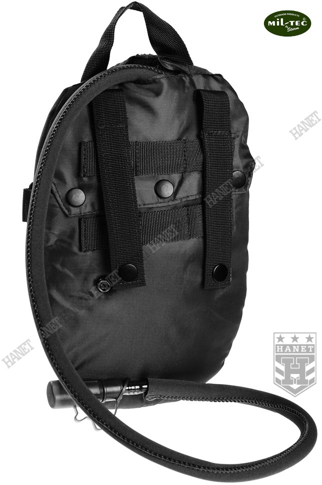 Taktyczny system hydracyjny w zasobniku / pokrowcu modularnym. Camelbak zapewnia stały i łatwy dostęp do wody podczas marszu, patroli, taktyki, jazdy na rowerze lub podczas innych absorbujących i męczących zajęć gdy trzeba często uzupełniać płyny. Produkt niemieckiej firmy Mil-Tec, linia Professional. Model opracowany na podstawie doświadczeń żołnierzy jednostek specjalnych. Pokrowiec z systemem montażowym MOLLE 25 mm, jest integralną częścią modularnego oporządzenia taktycznego (kamizelki, panele, plecaki itp.). Niezwykle lekki i kompaktowy - przystosowany do taktyki czarnej (Anty Terrorystycznej) i MOUT (Military Operations on Urban Terrain). Polecany także graczom ASG i paintballowcom. Pojemność 1 L - idealna na kilkugodzinne akcje, patrole lub strzelanki. Nowoczesna konstrukcja, szczelna i wytrzymała. Pokrowiec wykonany z mocnego nylonu 600D, usztywniany i profilowany pianką termo-izolacyjną która zapobiega nadmiernemu nagrzewaniu lub zamarzaniu wody. Pianka stanowi dodatkową osłonę wkładu hydracyjnego przed uszkodzeniem mechanicznym. Cztery D-ringi do podczepiania elementów wyposażenia umożliwiają również zamocowanie szelek i noszenie jak plecak. U dołu otwór do odprowadzania wody z wnętrza camelbaka przydatny w wypadku zalania, możliwość mycia pokrowca pod bieżącą woda. Uniwersalny wkład - pasuje do plecaków i kamizelek taktycznych. Bukłak na wodę o pojemności 1 L wykonany z wytrzymałego i elastycznego tworzywa. Duży i sztywny wlew umożliwia włożenie ręki do środka, bardzo łatwe mycie i ułatwione suszenie. Element mocujący wkład do pokrowca wyposażony w uchwyt i zawieszkę która daje opcję użycia bukłaku np. w plecaku. Czarny kolor wkładu daje ewentualność podgrzania wodny na słońcu. Rurka o długości 105 cm osłonięta rękawem neoprenowym dla wzmocnienia i osłony termicznej, z dodatkową szybkozłączką. Duża średnica rurki zapewnia dobry przepływ wody a grube ścianki zapobiegają jej ściskaniu. Kranik Hi-Flow łatwy i szybki w obsłudze, wystarczy przekręcić dźwigienkę zaworu, pozycje ON i OFF. Gumowy ustnik szczelinowy zabezpiecza przed wylaniem cennej wody, wyposażony w nakładkę antybakteryjną. System szybkiej wymiany ustnika umożliwia korzystanie z jednego camelbaka kilku osobom. Dla lewo i prawo ręcznych. Usztywniane taśmy montażowe.