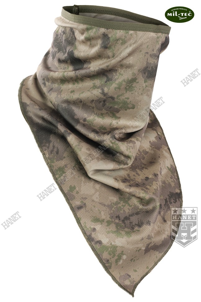 Uniwersalna szalokominiarka o specyfikacji militarnej. Produkt niemieckiej marki Mil-Tec®. Przeznaczona do maskowania twarzy, szyi a nawet całej głowy. W zimne dni, idealnie spełnia rolę szala lub chusty na twarz. Zaawansowany kamuflaż A-TACS FG (Operation Camo) - najnowszy kamuflaż używany przez elitę jednostek specjalnych. A-TACS kamufluje we wszystkich warunkach oświetleniowych, w zróżnicowanym terenie, na długich i krótkich dystansach oraz doskonale rozmywa sylwetkę. Chusta wykonana z solidnego, elastycznego i miłego w dotyku materiału MESH 100% poliester. Materiał posiada doskonałe właściwości oddychające, jest szybkoschnąca i chroni przed wiatrem. Anatomiczny i wszechstronny krój w kształcie rękawa ze skośnym wycięciem. Chusta umożliwia wykorzystanie jej jako: szala, chusty na twarz, kominiarki, maski, czapki, bandany, opaski na uszy, gumki do włosów lub siatki opatrunkowej. Elastyczny ściągacz zabezpiecza przed zsuwaniem, chusta zawsze właściwie się układa. Płaskie szwy gwarantują komfort. Krawędzie materiału zabezpieczone gęstym ściegiem owerlok.