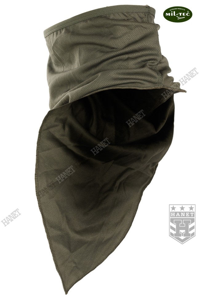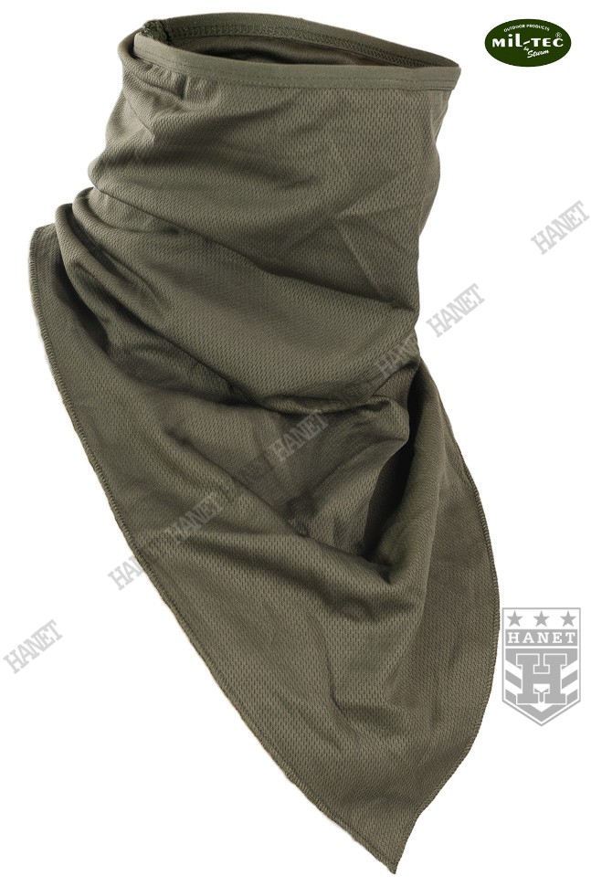 Uniwersalna szalokominiarka o specyfikacji militarnej. Produkt niemieckiej marki Mil-Tec®. Przeznaczona do maskowania twarzy, szyi a nawet całej głowy. W zimne dni, idealnie spełnia rolę szala lub chusty na twarz. Chusta wykonana z solidnego, elastycznego i miłego w dotyku materiału MESH 100% poliester. Materiał posiada doskonałe właściwości oddychające, jest szybkoschnący i chroni przed wiatrem. Anatomiczny i wszechstronny krój w kształcie rękawa ze skośnym wycięciem. Chusta umożliwia wykorzystanie jej jako: szala, chusty na twarz, kominiarki, maski, czapki, bandany, opaski na uszy, gumki do włosów lub siatki opatrunkowej. Elastyczny ściągacz zabezpiecza przed zsuwaniem, chusta zawsze właściwie się układa. Płaskie szwy gwarantują komfort. Krawędzie materiału zabezpieczone gęstym ściegiem owerlok.