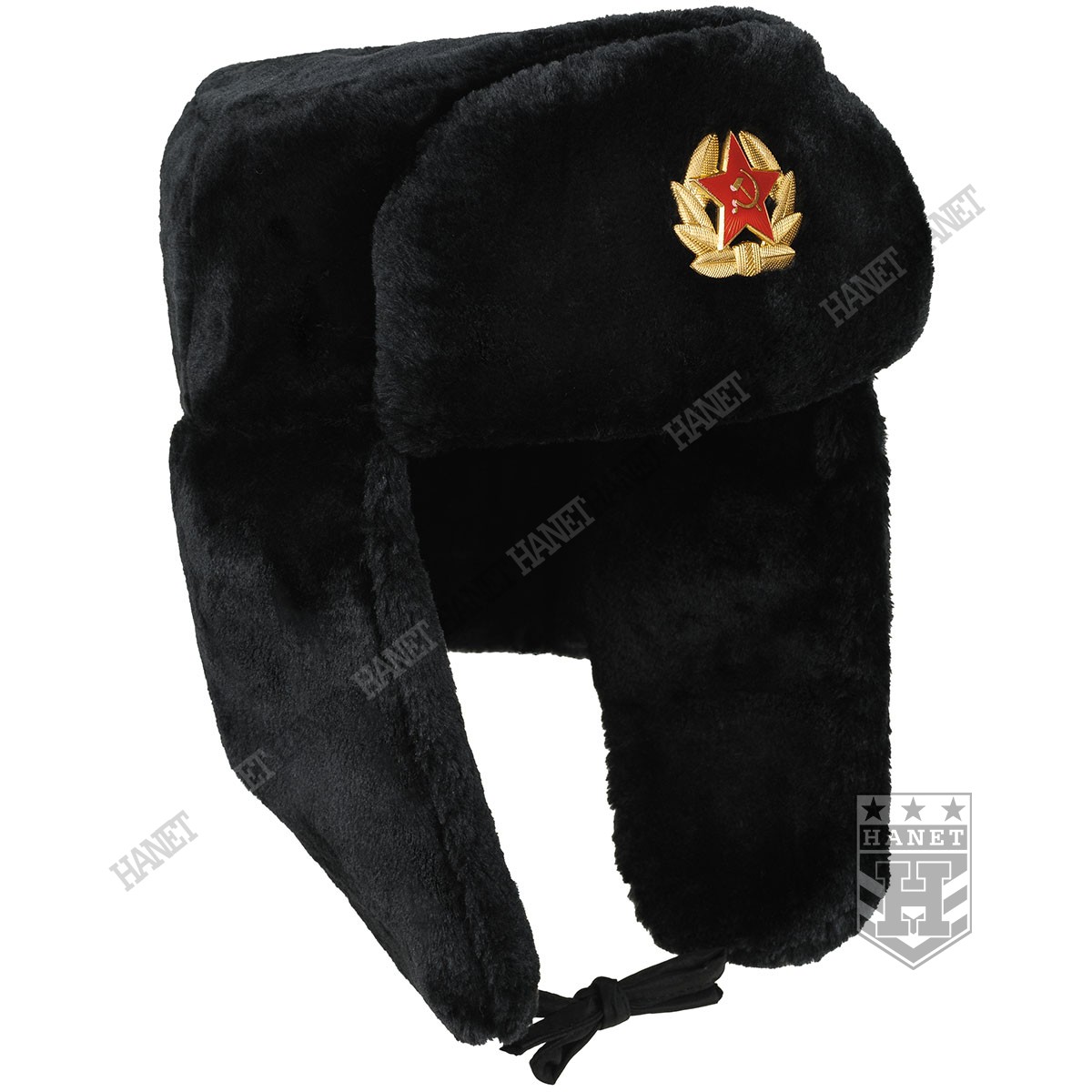Czapka Uszatka Rosyjska z Gwiazdą Armii Czerwonej - Czarna