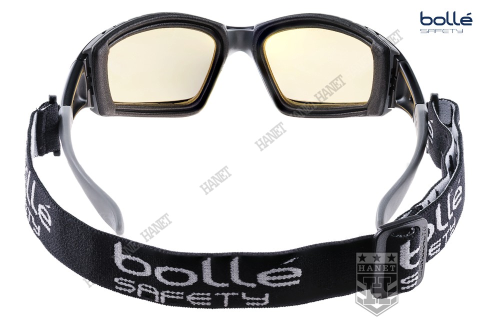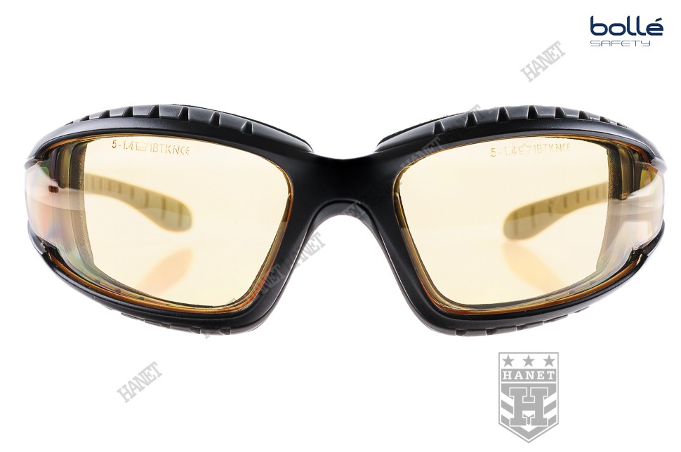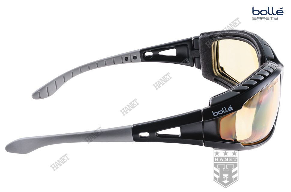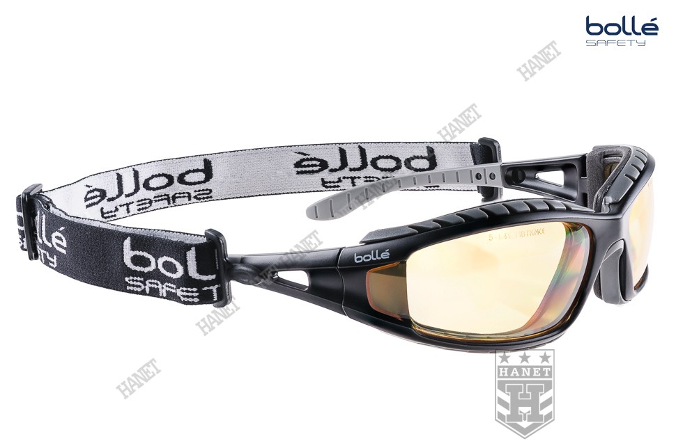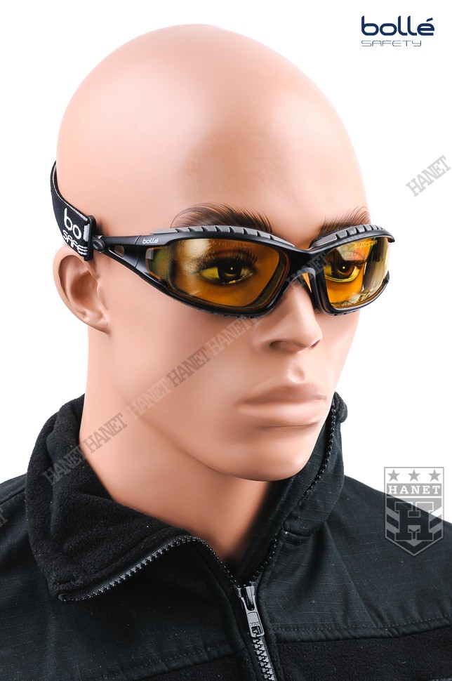 Nowoczesne okulary taktyczne zaprojektowane przez specjalistów z cenionej na świecie firmy Bollé dla profesjonalnych użytkowników. Doskonałe do taktyki działań specjalnych, strzelectwa i sportów ekstremalnych. Okulary Bollé zapewniają doskonałą ochronę narządów wzroku. Niezwykle wytrzymała poliwęglanowa szyba o grubości 2,2 mm zapewnia ochronę przed bezpośrednim uderzeniem twardych odłamków i rykoszetami F oraz gwałtownym uderzeniem ognia T. Szerokokątne szybki nie zawężają pola widzenia, gwarantują dobrą widoczność - wykonane z przeźroczystego poliwęglanu. Technologia filtrów spełniających europejską normę ochrony przed promieniowaniem ultrafioletowym EN 172 UV - 100% ochrona UV. Zewnętrzna powłoka Anti-Scratch zabezpiecza przez zarysowaniem. Dzięki technologii Anti-Fog szyba nie paruje, system otworów wentylacyjnych dodatkowo przed tym zabezpiecza. Okulary osadzone w anatomicznej ramce, wygodnej i znakomicie przylegającej do twarzy użytkownika dzięki zastosowaniu miękkiej pianki. Mały profil ramki umożliwia noszenie pod wszystkimi rodzajami hełmów i nakryć głowy. Miękkie i bardzo wygodne zauszniki oraz wyprofilowane noski gwarantują wygodę noszenia. Elastyczna taśma montowana do zauszników zapobiega przed spadnięciem okularów podczas gwałtownych ruchów, po zdjęciu okularów chroni przed ich zgubieniem. Taśma wykonana z nylonu i elastycznych włókien (nie ciągnie włosów), regulacja długości - mocowana na zdejmowalnych obrotowych zaczepach. W komplecie pokrowiec z mikrofibry spełniający także funkcję szmatki do przecierania.