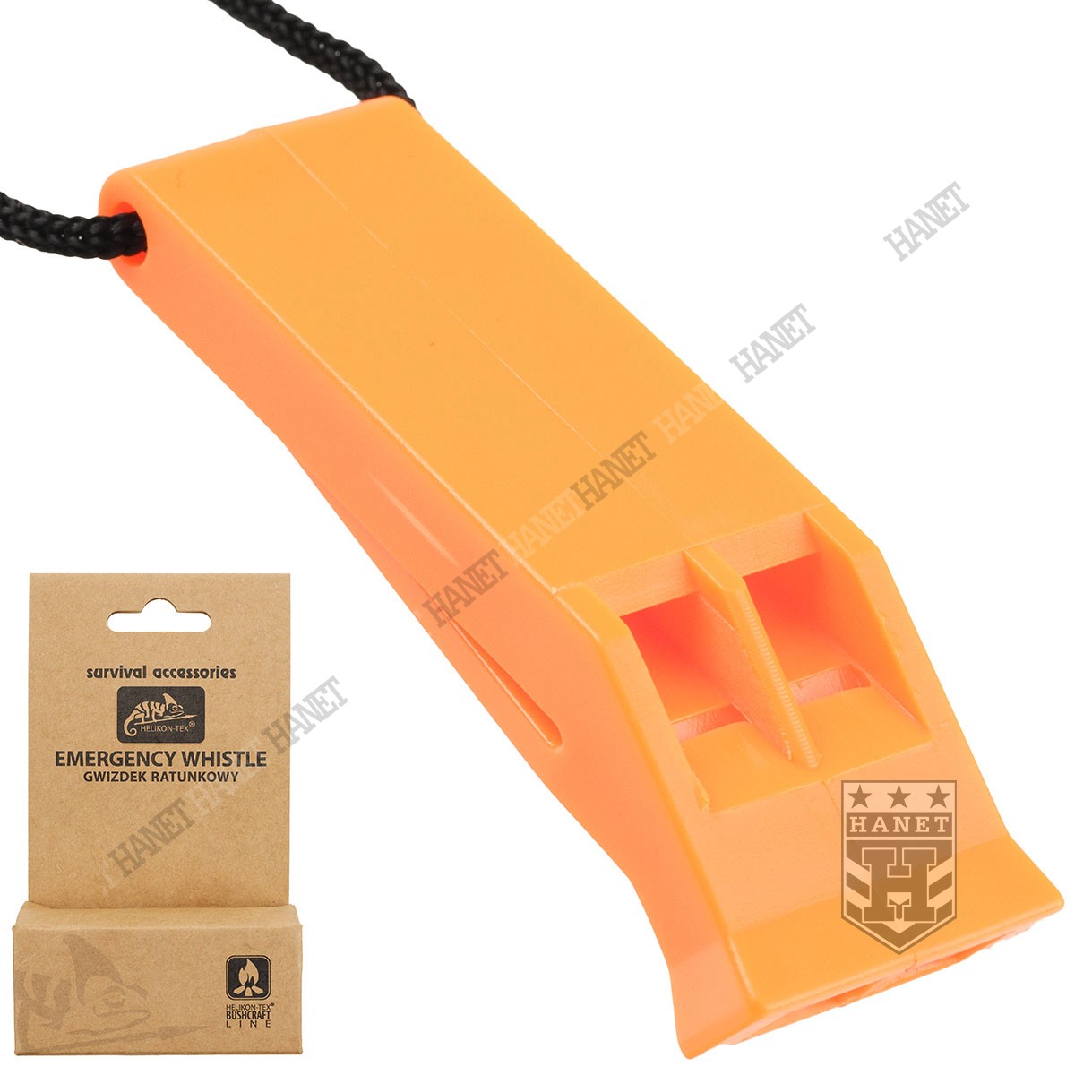Gwizdek ratunkowy - morski. Model wzorowany na gwizdku używanym przez NATO i SOLAS (International Convention for the Safety of Life at Sea) - międzynarodowa konwencja o bezpieczeństwie życia na morzu. Zaprojektowany z myślą o rozbitkach, osobach poszkodowanych i wyczerpanych. Niezbędny element wyposażenia zestawów survivalowych, podczas turystyki górskiej i sportów wysokiego ryzyka. Gwizdek służy do wzywania pomocy i nadawania sygnałów dźwiękowych lub jako gwizdek alarmowy. Osoby poszkodowane, wyczerpane lub w szoku pourazowym często nie mają sił by donośnie krzyczeć - gwizdek pozwoli wezwać ratunek. Specjalna bezkulkowa konstrukcja nie wymaga mocnego i męczącego dmuchania. Donośny, jednostajny dźwięk, bardzo charakterystyczny - słyszany z daleka. Wykonany z wytrzymałego polipropylenu. Jaskrawy kolor przyciąga wzrok, pomaga odnaleźć gwizdek w sytuacji stresowej. Gwizdek utrzymuje się na powierzchni wody. Wyposażony w szlufkę do mocowania na pasku, odzieży lub wyposażeniu. W komplecie smycz ze sznurka.. Zapakowany w estetyczne pudełko kartonowe - blister.