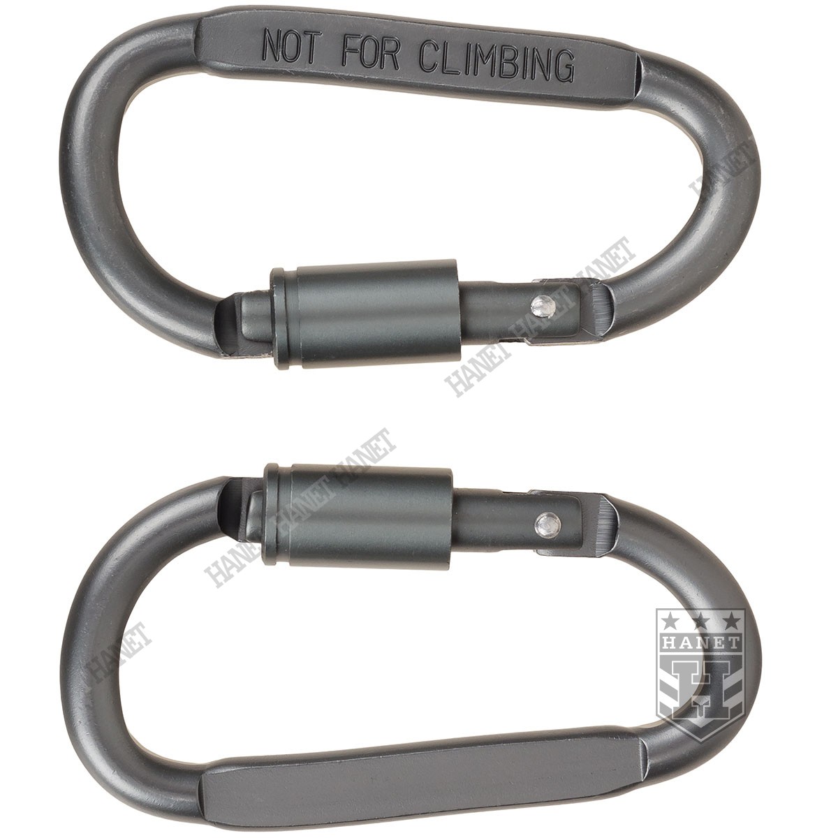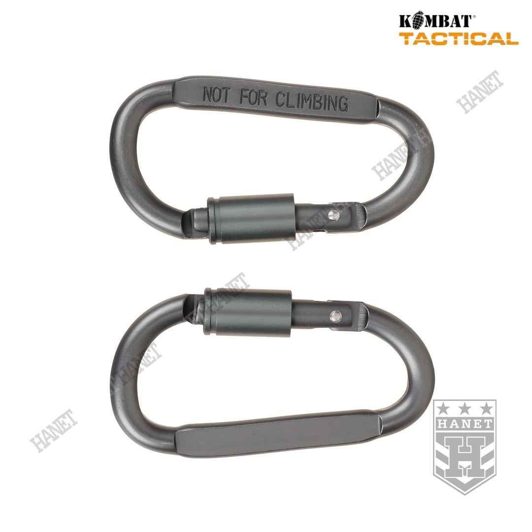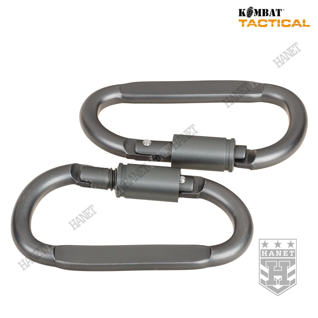 Para lekkich karabinków pomocniczych o specyfikacji militarnej. Praktyczne karabinki do podczepiania części oporządzenia i wyposażenia, budowy schronień oraz napraw polowych. Niezastąpione na biwaku i w survivalu. Doskonałe do zaczepiania odciągów, troczenia noża, kompasu, GPSa, kluczy, latarek, itd. Możliwość mocowania na plecakach, kamizelkach lub wszędzie gdzie zajdzie się taka potrzeba. Karabinki są lekkie i bardzo wytrzymałe. Zapakowane w estetyczny blister.