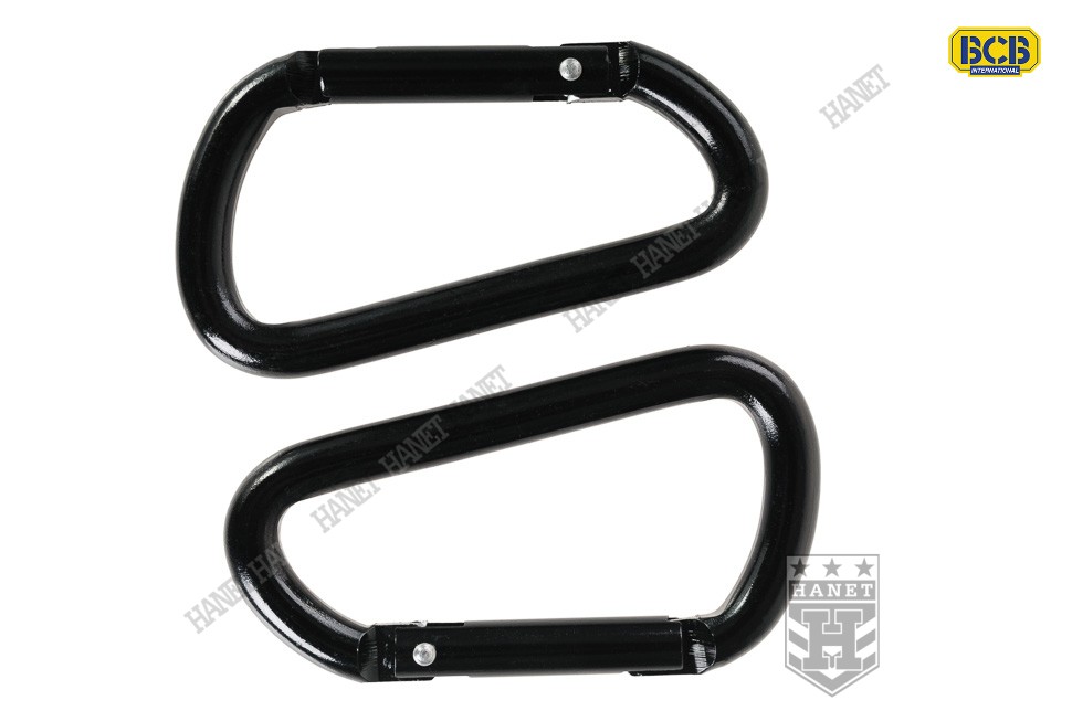 Oryginalny produkt brytyjskiej firmy BCB International, znanej jako BUSHCRAFT™. BCB to bezkompromisowa jakość, najlepsze rozwiązania i niezawodność. Marka BCB jest kontraktowym dostawcą wyposażenia dla NATO. Sprzęt firmy BCB jest używany przez czołówkę jednostek specjalnych z całego świata, wytrawnych survivalowców i miłośników profesjonalnego outdooru. Para karabinków pomocniczych. Produkt wysokiej jakości, gatunek premium. Doskonałe do podczepiania części oporządzenia, zawieszeń taktycznych lub jako brelok. Idealne dla amatorów pieszych wędrówek, survivalowców, traperów, trekkingowców, żeglarzy i miłośników militariów. Budowa typu HMS (Halb Mastwurf Sicherung - do tzw. półwyblinki) - bardzo uniwersalna. Wykonane z wysokogatunkowego stopu aluminium, lekkie i wytrzymałe. Powierzchnia pokryta czarnym lakierem. Zamek typu express, przystosowane do obsługi jedną ręką. Ramię zamka wyposażone w mocną sprężynę - samozamykalne. Duży prześwit ułatwia wpinanie. Karabinki zapakowane w estetyczny blister.