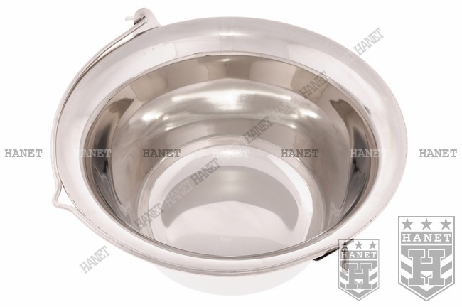 Klasyczny kociołek polowy. Produkt węgierskiej firmy, pierwszej jakości. Przystosowany do zawieszania nad ogniskiem lub żarem. Duża pojemność umożliwia jednoczesne przygotowanie posiłku dla dwudziestu osób. Wykonany z wysokogatunkowej grubej blachy nierdzewnej, odpornej na wysokie temperatury. Gładka, polerowana powierzchnia daje ochronę przed przywieraniem, jest łatwa do utrzymania w czystości. Rozszerzający się ku górze kształt, przyspiesza gotowanie, a płaskie dno czyni go stabilnym. Zawieszany za pomocą solidnego, stalowego pałąka. Przystosowany do wieszania na haczyku, drucie lub sznurku.