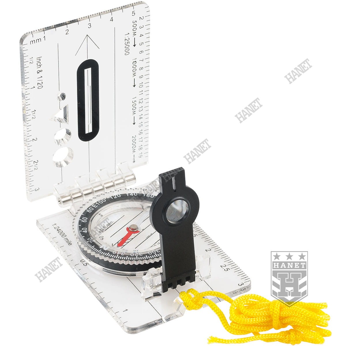 Wykonana z solidnego poliwęglanu, odporne na uszkodzenia i skrajne temperatury. Przeźroczystość tworzywa ułatwia odczytywanie mapy pod busolą. Solidny zawias ze stalowym trzpieniem gwarantuje wytrzymałość. Składany do kompaktowych wymiarów. Krawędź do, której mocuje się smycz została podniesiona, by busola płasko leżała na mapie. Smycz ze sznurka polipropylenowego.