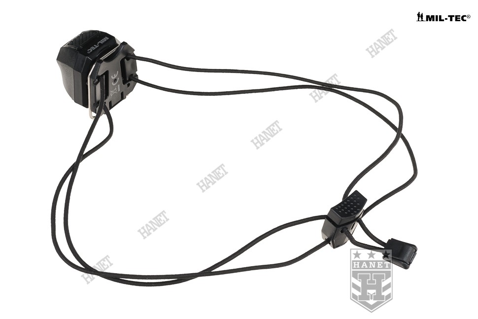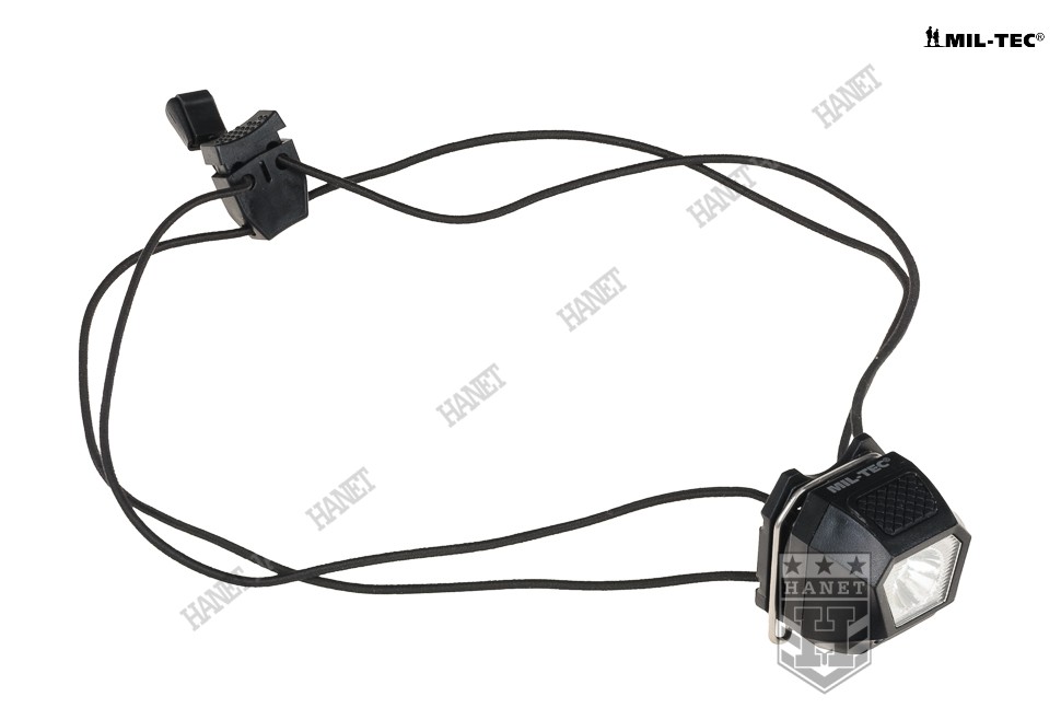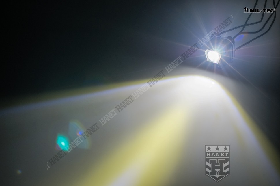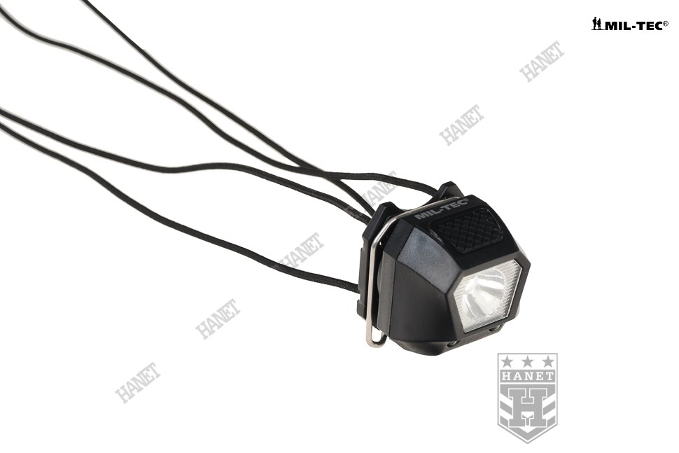 Uniwersalna latarka czołowa. Produkt niemieckiej marki Mil-Tec®. Latarka idealna jako awaryjne źródło światła, marker świetlny na hełm, a nawet lampka rowerowa. Bardzo lekka i kompaktowa, zmieści się w kieszeni dżinsów, apteczce i zestawie survivalowym. Czołówka posiada elastyczne gumy typu Shock Cord ze stoperem do regulacji. Latarka może być noszona na głowie, hełmie, ciele oraz oporządzeniu. Zakres regulacji gumy umożliwia założenie latarki również na nadgarstek, a nawet palec. Metalowy klips umożliwia szybki montaż na oporządzeniu i odzieży. Klips po wyczepieniu umożliwia przełożenie przez taśmy modularne systemu Molle lub taśmy plecaków. Obrotowy zawias pozwala ustawić kąt świecenia w zakresie do ok. 160°.