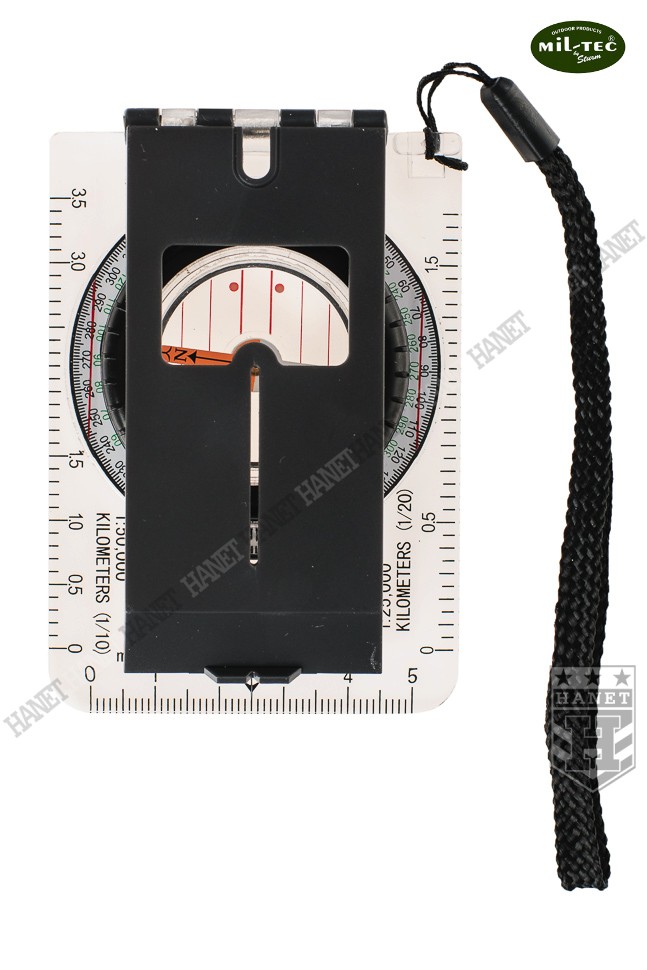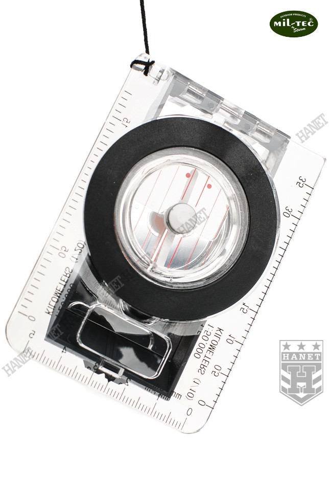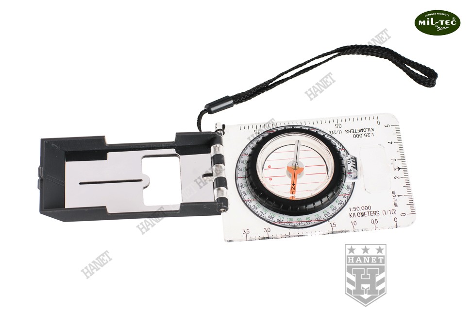 Zaawansowana busola płytkowa. Produkt niemieckiej firmy Mil-Tec®. Doskonała dla amatorów pieszych wędrówek, traperów, trekkingowców i żeglarzy. Busola umożliwia wyznaczenie kierunku magnetycznego oraz kierunków pośrednich. Solidny korpus wykonany z lekkiego i wytrzymałego tworzywa, odporny na wilgoć oraz uszkodzenia mechaniczne. System składanych przyrządów celowniczych do wyznaczania azymutu w terenie. Muszka ze szczerbinką i dodatkowa szczelina, pozwolą precyzyjnie określić kierunek marszu. Przyrządy celownicze po złożeniu chronią busolę w pozycji marszowej. Duże lusterko umożliwia odczyt i jednoczesne celowanie. Lusterko spełnia też rolę heliografu (lusterka sygnalizacyjnego). Ruchoma tarcza z precyzyjną podziałką 360° oraz rewersem skali. Zintegrowane szkło powiększające dla ułatwienia odczytu podziałki. Igła magnetyczna zawieszona swobodnie w środowisku cieczy, bardzo dokładna. Przeźroczysta płytka z poliwęglanu umożliwia korzystanie z mapą oraz kreślenie. Płytka z dwiema skalami 1:50000 i 1:25000, które umożliwiają szybką ocenę odległości rzeczywistej na mapie. Dodatkowa podziałka centymetrowa oraz linie deklinacji magnetycznej. Duża lupa do odczytu znaków topograficznych na mapie. W komplecie smycz nadgarstkowa. Busola zapakowana w schludny blister.