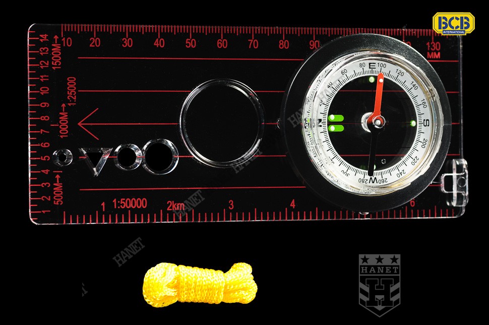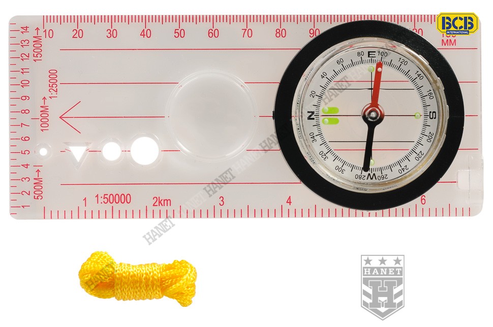 Nowoczesny kompas turystyczny - płytkowy. Profesjonalny model, polecany miłośnikom górskich wędrówek, traperom, trekkingowcom i żeglarzom. Doskonały również dla każdego amatora. Przystosowany do jednoczesnego korzystania wraz z mapami. Służy do orientacji mapy, wyznaczania kierunków, kreślenia azymutów tras i szacowania odległości. Solidny korpus w całości wykonany z lekkiego i wytrzymałego, przeźroczystego tworzywa - poliwęglanu. Kompas całkowicie odporny na wodę, niepodatny na uszkodzenia mechaniczne. Igła magnetyczna umieszczona w pojemniku z cieczą - gwarantuje precyzję odczytu. Obrotowa tarcza z różą wiatrów i skalą 360°. Igła oraz tarcza oznaczone fluorescencyjną farbą umożliwiającą odczyt bez dodatkowego źródła światła. Wyposażony w liniał 13 cm oraz podziałki ze skalami 1:50000 i 1:2500. Lupa umożliwia odczytanie niewidocznych znaków topograficznych. Szablony umożliwiają dorysowywanie znaków na mapie. Nylonowa smycz do zawieszania, oczko mocujące wyprofilowane tak by sznur nie odchylał kompasu od mapy. Zapakowany w fabryczny, estetyczny blister.