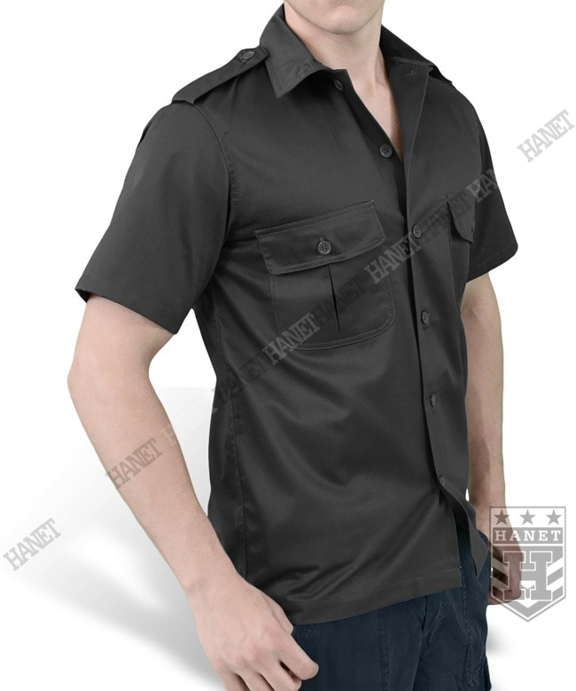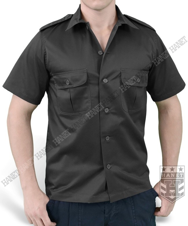 Klasyczna koszula wojskowa, wzór US ARMY - wersja letnia z krótkim rękawem. Produkt niemieckiej firmy SURPLUS® RAW VINTAGE. Produkty tej firmy charakteryzują się solidnym wykonaniem, zgodnym z surową specyfikacją militarną - produkt klasy premium. Polecana militarystom, miłośnikom outdooru i osobom ceniącym militarny styl. Doskonały krój gwarantuje wygodę i funkcjonalność. Gruba, bardzo wytrzymała, a jednocześnie lekka i przewiewna tkanina: 35% bawełna , 65% poliester. Dwie kieszenie na piersi, zamykane patkami na guziki. Kieszenie wyposażone w zaszewki zwiększające ich pojemność. Prosty kołnierzyk z podwójnego materiału. Koszula zapinana na guziki. Rozpinane pagony. Podwójne warstwy materiału i wzmacniające przeszycia w newralgicznych miejscach.