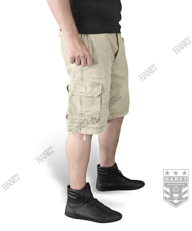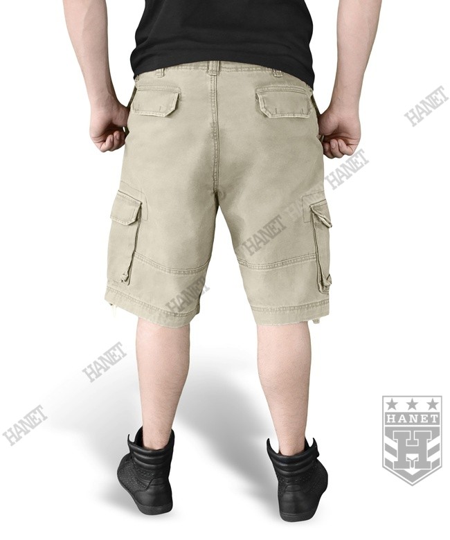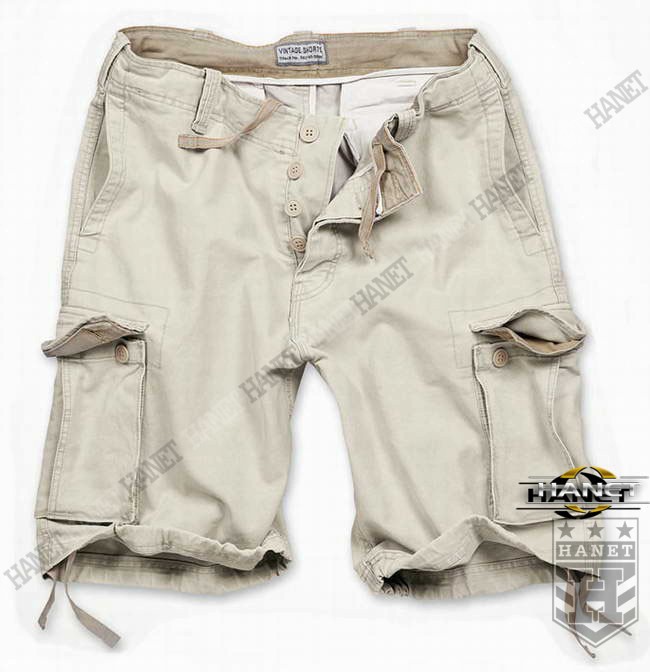 Stylowe szorty z najnowszej kolekcji niemieckiej firmy SURPLUS® RAW VINTAGE. Produkty firmy SURPLUS® charakteryzują się świetnym designem i solidnym wykonaniem z naciskiem na dbałość o szczegóły. Niezliczone przeszycia oraz detale nadające spodenkom niezwykłego charakteru. Stylizowane na klasyczny wzór spodni wojskowych M65 - wprowadzony na potrzeby US Army. Militarny krój zapewnia wygodę, funkcjonalność i świetny wygląd w każdej sytuacji. Przeznaczone dla ludzi aktywnych, ceniących bezkompromisową jakość i lubiących wyróżniać się na ulicy. Wytrzymały a jednocześnie estetyczny i miły w dotyku materiał 100% bawełna. Idealne na upalne dni, przewiewne i lekkie. Vintage, najnowszy trend w modzie – fabryczne postarzenie materiału (washed). Sześć pojemnych kieszeni zamykanych na napy. Rozporek i kieszenie zamykane na guziki. Wewnętrzny ściągacz w pasie oraz sznurki u dołu nogawek. Solidne podwójne szycia i przeszycia w newralgicznych miejscach.