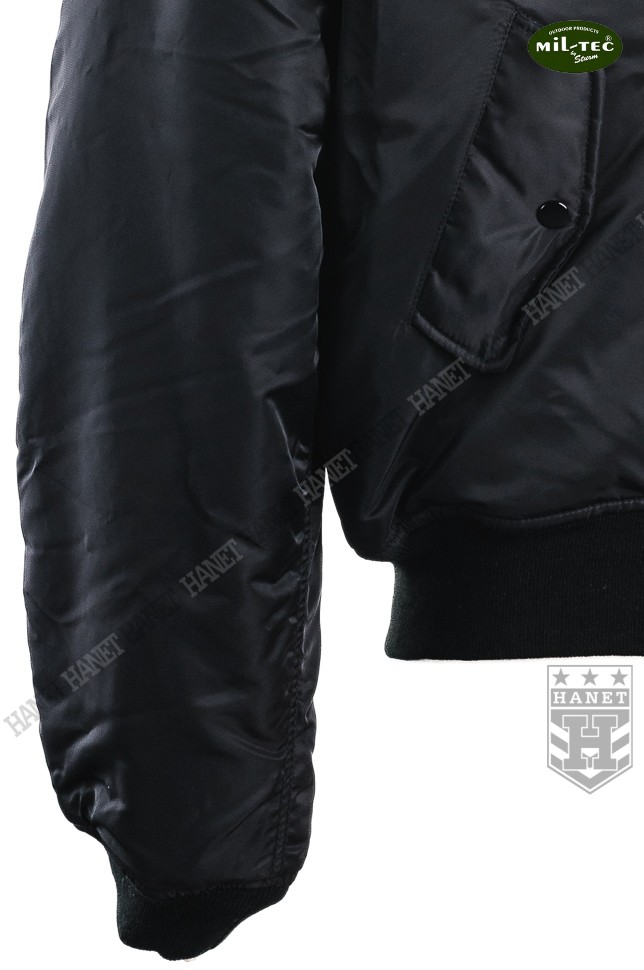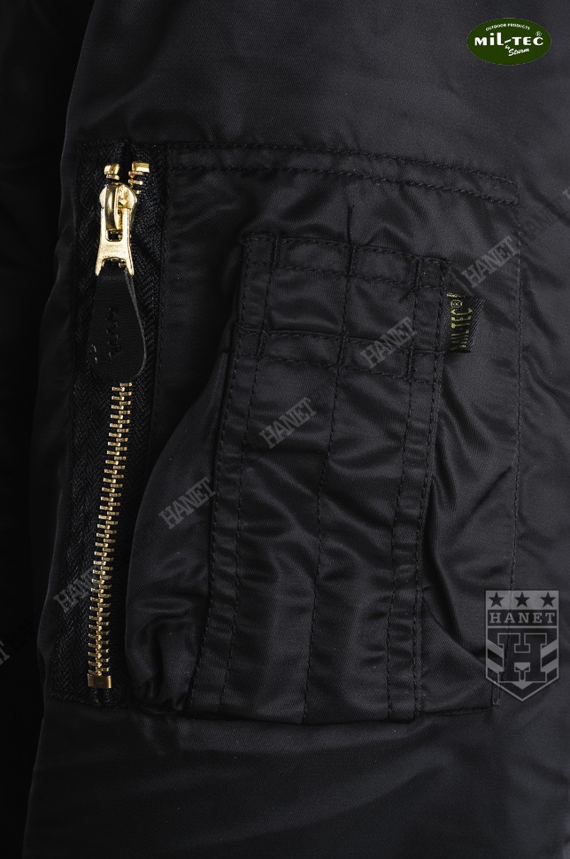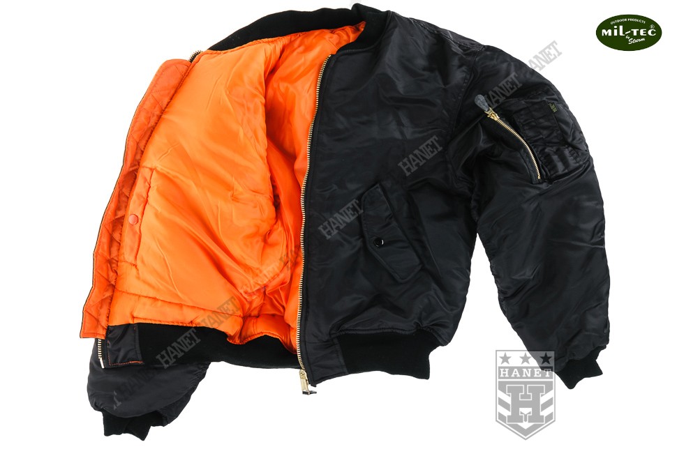 Kultowa kurtka US Air Force - MA1® znana jako "Flyers" lub "Flek". Produkt niemieckiej firmy Mil-Tec®. Najwyższa wojskowa jakość, wytrzymałe materiały i wykonanie według surowej specyfikacji militarnej. Model MA1® pierwotnie używany przez pilotów myśliwców i załogi bombowców, zaadoptowany przez obsługę naziemną i zespoły na lotniskowcach. Kurtka MA1® to propozycja dla osób, które chcą zamanifestować swój styl bycia. Materiał wierzchni 100% Nylon, wodo i wiatroodporny - bardzo wytrzymały. Kurtka dwustronna z charakterystyczną pomarańczową podszewką. Po przewróceniu na "lewą" stronę służy za kurtkę ostrzegawczą. Podszewka z oddychającego nylonu, aksamitny materiał dla ułatwienia zakładania i wygody poruszania. Komfort termiczny w niskich temperaturach zapewnia wypełnienie z włókien poliestrowych. Miękki kołnierz - karczek, zapewnia swobodę ruchów . Solidny dwustronny zamek wykonany z nierdzewnego metalu. Suwak wyposażony w skórzane elementy ułatwiające obsługę zamków w rękawicach. Listwa termiczna osłania zamek od wewnątrz. Dwie klasyczne kieszenie umieszczone na brzuchu, zamykane patkami na metalowe zatrzaski. Kieszenie wewnętrzne na napy. Kieszenie główne umieszczone skośnie dla ułatwienia dostępu. Na rękawie naszyta charakterystyczna kieszeń na zamek. Cztery kieszonki na długopisy i ołówki. Szeroki elastyczny ściągacz w pasie zabezpiecza przed podwiewaniem. Mankiety zakończone ciepłymi ściągaczami.