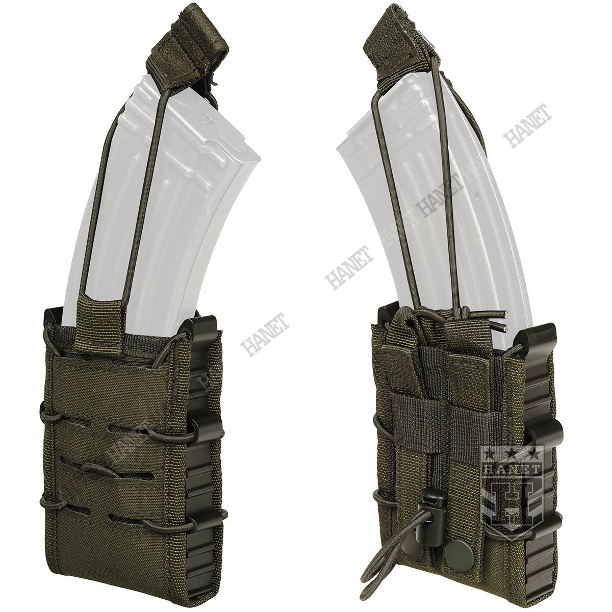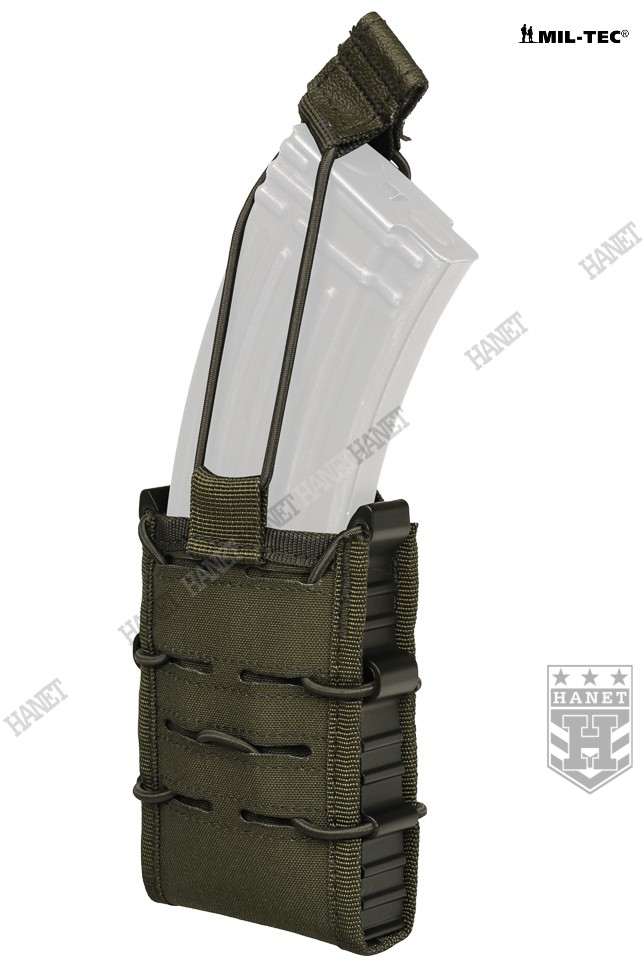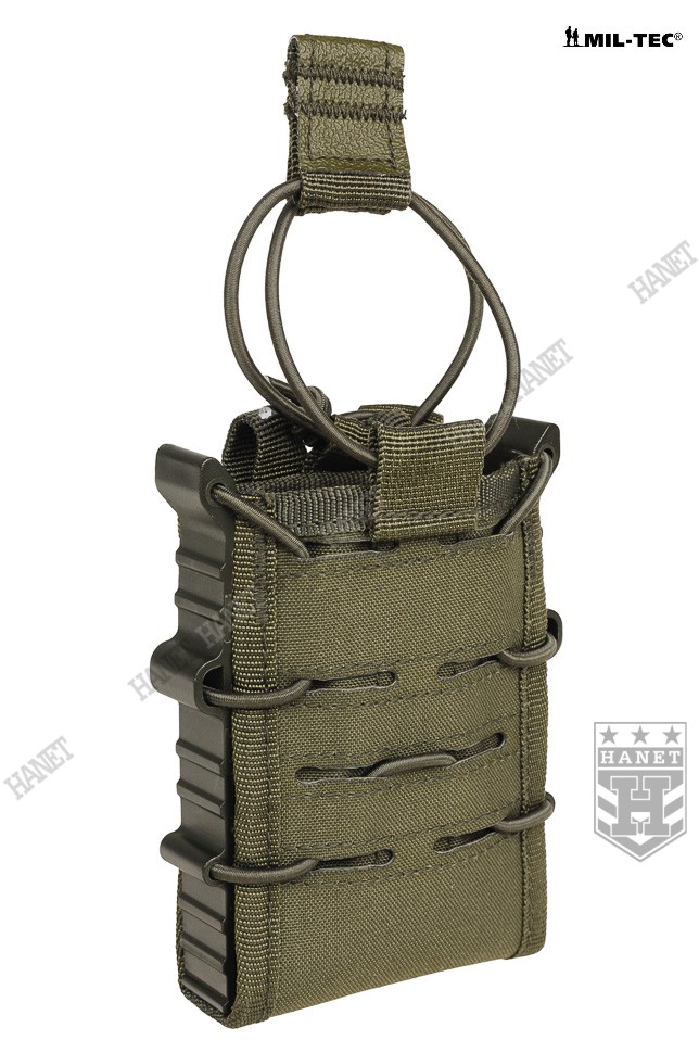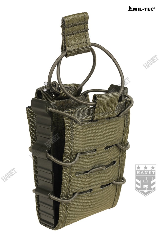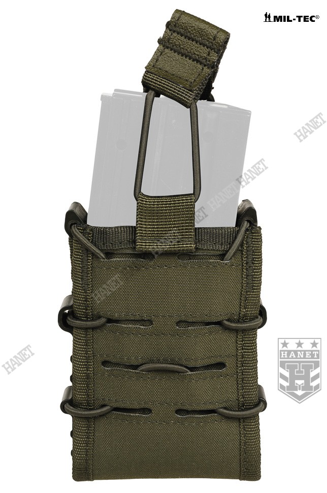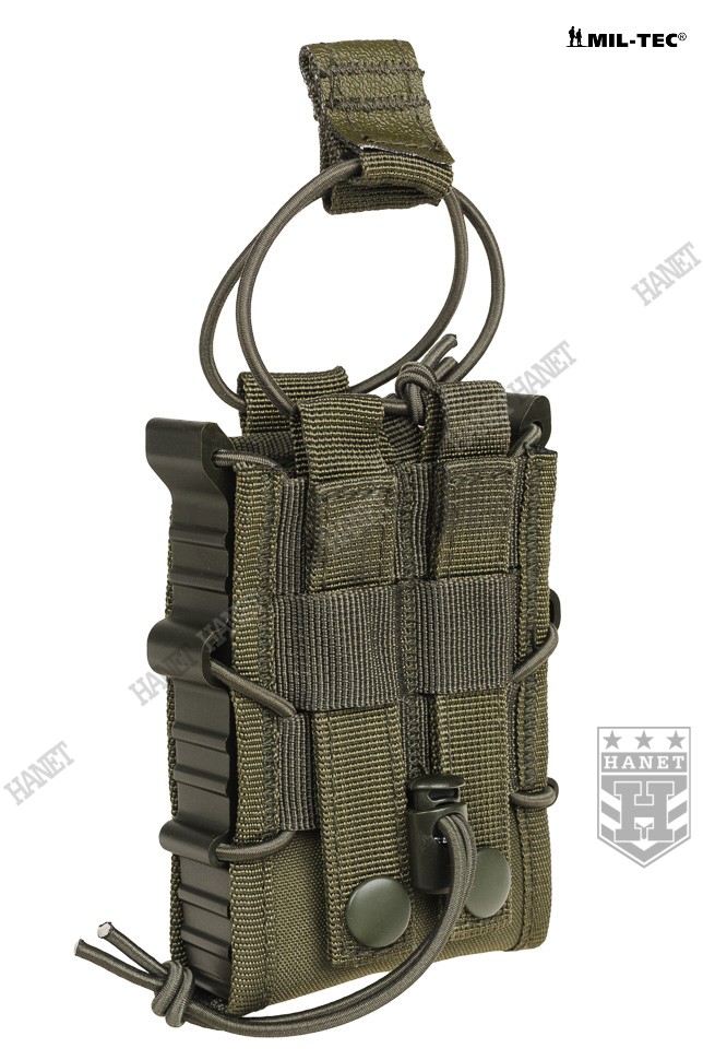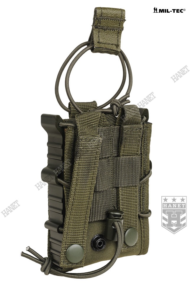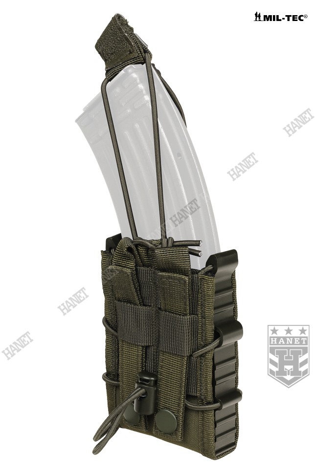 Zabezpieczenie przed zgubieniem magazynków z gumy Bungee (Shock Cord). Zabezpieczenie jest zaciągane od góry, przeciwdziała niekontrolowanemu wypadnięciu magazynka. Uchwyt z taśmy obszyty antypoślizgową gumą, ułatwia odbezpieczenie ładownicy w rękawicach. Gdy zabezpieczenie nie jest potrzebne, istnieje opcja zdjęcia gumy lub owinięcia jej wokół wejścia ładownicy (pozycja w gotowości). Miękki rzep wewnątrz umożliwia dodatkowe zabezpieczenie magazynków, po przyklejeniu na nie pasków twardego rzepa. Miękki rzep chroni również oksydę/anodę przed wycieraniem.