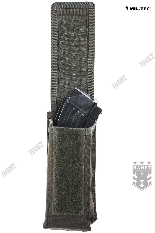 Ładownica w systemie montażowym MOLLE 25 mm, jest integralną częścią modularnego oporządzenia taktycznego (kamizelki, panele, plecaki itp.). Polecana profesjonalistom, sprawdzona na kontyngentach wojskowych w Iraku i Afganistanie. Przeznaczona na magazynki łukowe AK47, Tantal 5,45 mm i Beryl 5,56 mm. Wykonana z wodoodpornego, bardzo wytrzymałego nylonu. Szyta grubymi nićmi, krawędzie wzmacniane lamówką. Umożliwia szybkie dobycie magazynków. Dwukomorowa z wewnętrznymi przegrodami, umożliwia przenoszenie 2 magazynków. Wewnętrzne przegrody dystansowe umieszczone niesymetrycznie - możliwość noszenia magazynków w różnych konfiguracjach. Przegrody wypełnione miękką pianką - brak efektu obijania się o siebie magazynków. Klapa zamykana na Velcro, możliwość regulacji na wysokość magazynka. Ładownica może pomieścić również magazynki M4A1 lub faty paintballowe. Taśmy montażowe 25 mm usztywniane, znacznie poprawia to stabilność ładownicy. U dołu nabity nit do odprowadzania wodny - niezbędny w wypadku całkowitego zalania ładownicy.