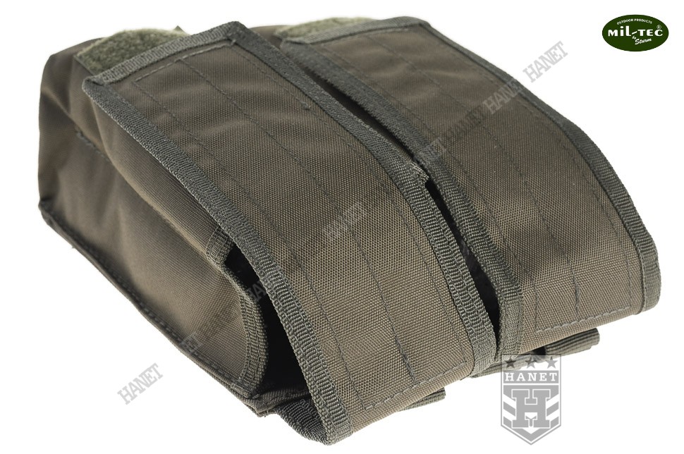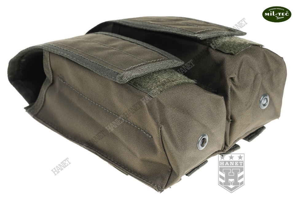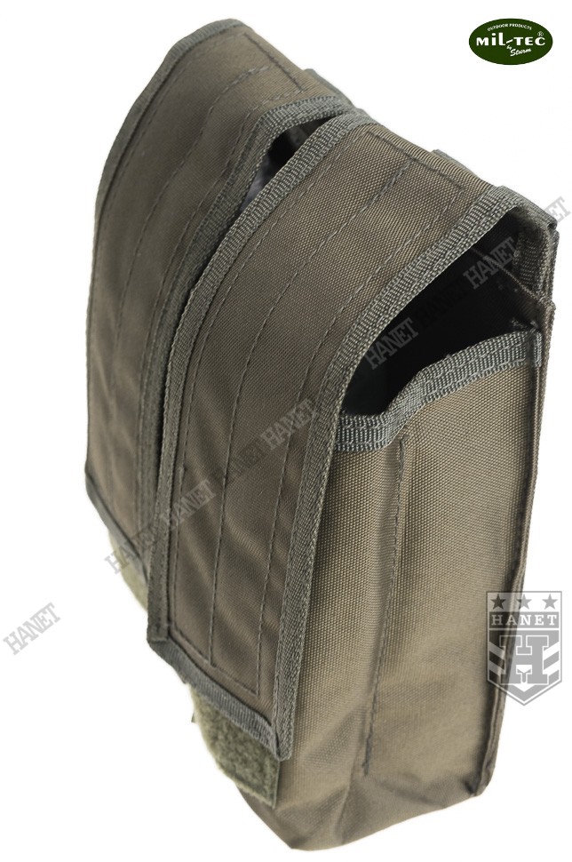 Ładownica w systemie montażowym MOLLE 25 mm, jest integralną częścią modularnego oporządzenia taktycznego (kamizelki, panele, plecaki itp.). Polecana profesjonalistom, sprawdzona na kontyngentach wojskowych w Iraku i Afganistanie. Przeznaczona na magazynki łukowe AK47, Tantal 5,45 mm i Beryl 5,56 mm. Wykonana z wodoodpornego, bardzo wytrzymałego nylonu. Szyta grubymi nićmi, krawędzie wzmacniane lamówką. Umożliwia szybkie dobycie magazynków. Dwukomorowa z wewnętrznymi przegrodami, umożliwia przenoszenie 4 magazynków. Wewnętrzne przegrody dystansowe umieszczone niesymetrycznie - możliwość noszenia magazynków w różnych konfiguracjach. Przegrody wypełnione miękką pianką - brak efektu obijania się magazynków o siebie. Klapa zamykana na Velcro, możliwość regulacji na wysokość magazynka. Ładownica może pomieścić również magazynki M4A1 lub faty paintballowe. Taśmy montażowe 25 mm usztywniane, znacznie poprawia to stabilność ładownicy. U dołu nabity nit do odprowadzania wodny - niezbędny w wypadku całkowitego zalania ładownicy.