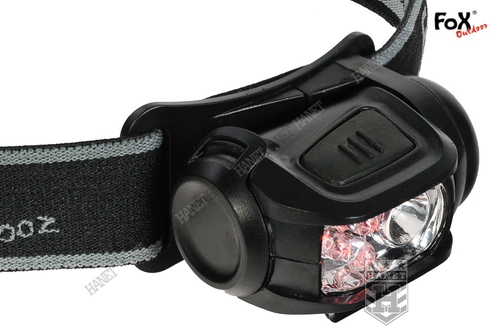 Nowoczesna latarka czołowa z możliwością mocowania na plecakach i kamizelkach taktycznych. Produkt niemieckiej firmy FOX®. Latarka czołowa pozwala oświetlać pożądane miejsce bez użycia rąk - zawsze tam gdzie skierowany jest wzrok. Dzięki zaawansowanej diodzie LUXEON (firmy Phillips) o mocy 1W i silnym strumieniu świetlnym 90lm (lumenów). Odbłyśnik o specjalnym kształcie optymalizuje strumień światła. System soczewkowych diod LED (night vision mode) które dodatkowo dają możliwość oszczędzania energii. Diody LED są praktycznie nie do przepalenia i zużywają bardzo mało energii. Latarka z trzema funkcjami pracy: dioda LUXEON 100%, 50% lub trzy czerwone diody. Antypoślizgowy, gumowany włącznik zlokalizowany instynktownie na górnej ścianie głowicy. Korpus latarki wykonany z grubego tworzywa ABS. Wyposażona w elastyczną, regulowana taśmy na głowę, czapkę lub hełm. Możliwość zdjęcia taśmy i mocowania na systemie modularnym MOLLE lub taśmie parcianej 25mm. Doskonała do mocowania na plecakach lub kamizelkach taktycznych. Idealna do mocowania na szelce plecaka lub jako tylne światło ostrzegawcze. Możliwość regulacji kąta nachylenia głowicy. Elementy elektronicznie i łączniki wstrząsoodporne, brak przerw w pracy latarki. Zapakowana w estetyczny blister.