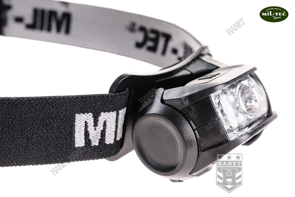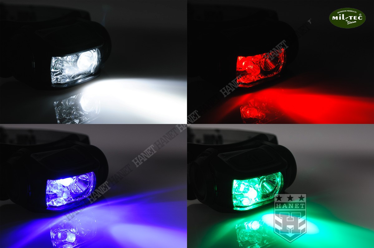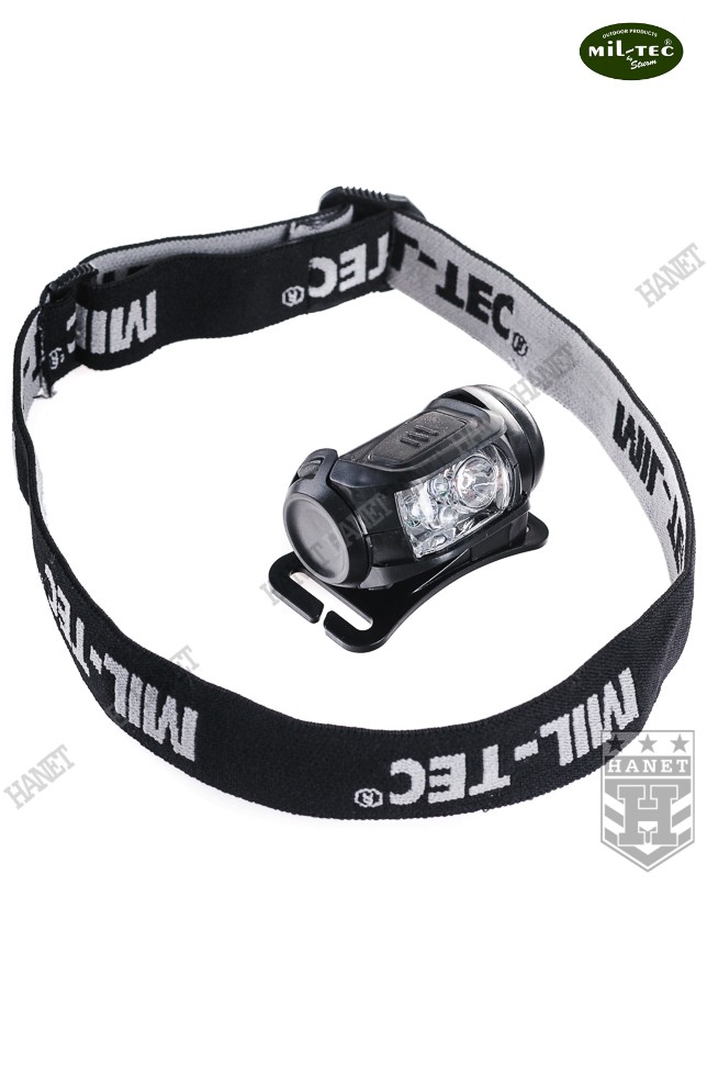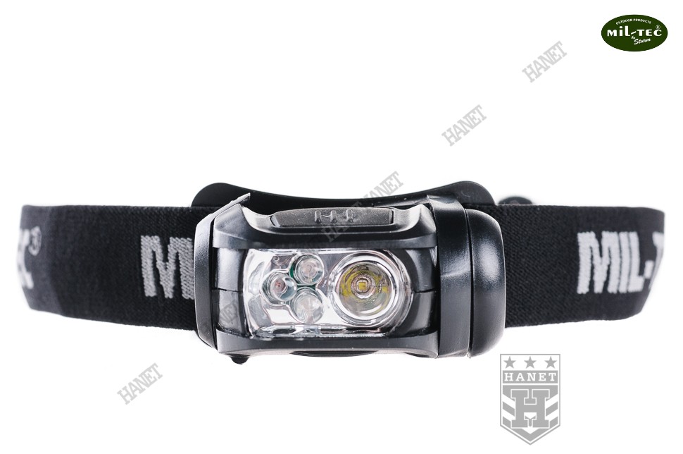 Nowoczesna latarka czołowa z możliwością mocowania na plecakach i kamizelkach taktycznych. Produkt niemieckiej firmy Mil-Tec®. Latarka czołowa pozwala oświetlać pożądane miejsce bez użycia rąk - zawsze tam gdzie skierowany jest wzrok. Dzięki zaawansowanej diodzie SMD LUXEON (firmy Phillips) o mocy 1W i silnym strumieniu świetlnym 90lm (lumenów). Odbłyśnik o specjalnym kształcie optymalizuje strumień światła. System trzech, soczewkowych diod LED w kolorach ostrzegawczych - czerwonym, zielonym i niebieskim. Diody LED dodatkowo dają możliwość oszczędzania energii. Diody SMD i LED są praktycznie nie do przepalenia i zużywają bardzo mało energii. Latarka z czterema funkcjami pracy: dioda LUXEON 100%, lub pojedynczo trzy diody ostrzegawcze. Antypoślizgowy, gumowany włącznik zlokalizowany na górnej ścianie głowicy. Korpus latarki wykonany z grubego tworzywa ABS. Wyposażona w elastyczną, regulowana taśmy na głowę, czapkę lub hełm. Możliwość zdjęcia taśmy i mocowania na systemie modularnym MOLLE lub taśmie parcianej 25mm. Idealna do mocowania na szelce plecaka lub jako światło ostrzegawcze. Możliwość regulacji kąta nachylenia głowicy. Elementy elektronicznie i łączniki wstrząsoodporne. Zapakowana w estetyczny blister.