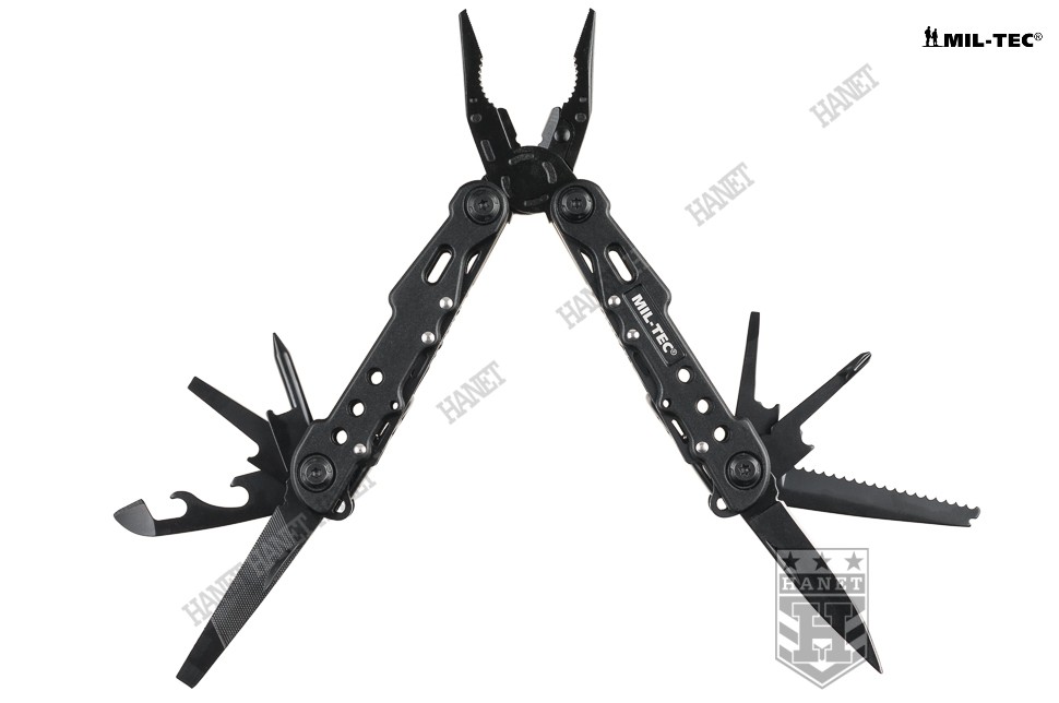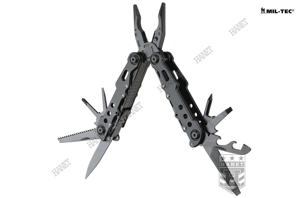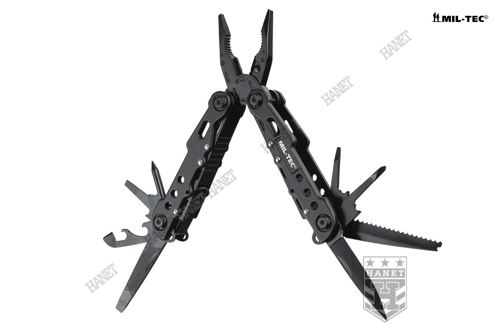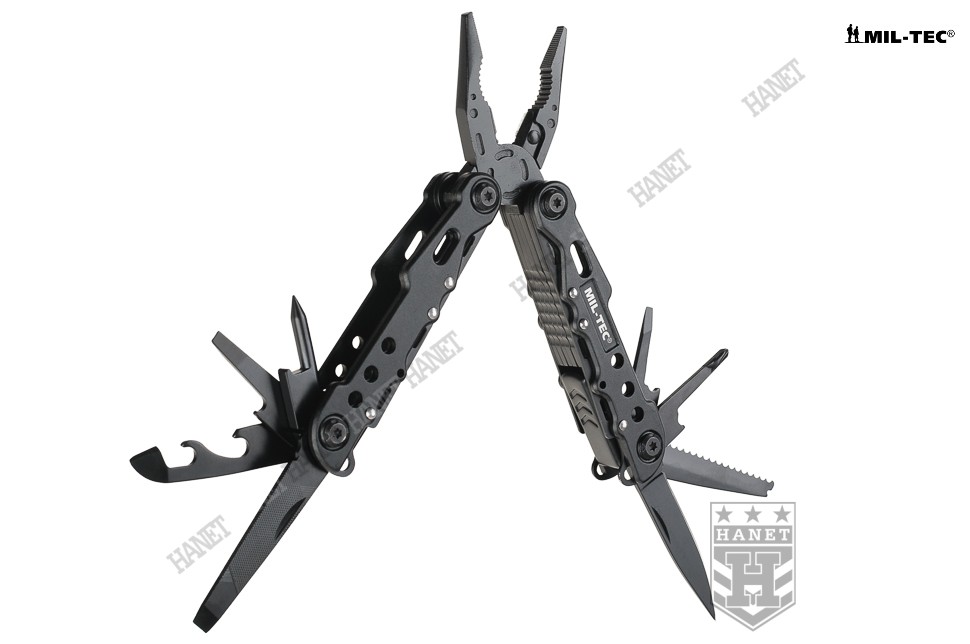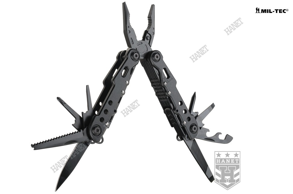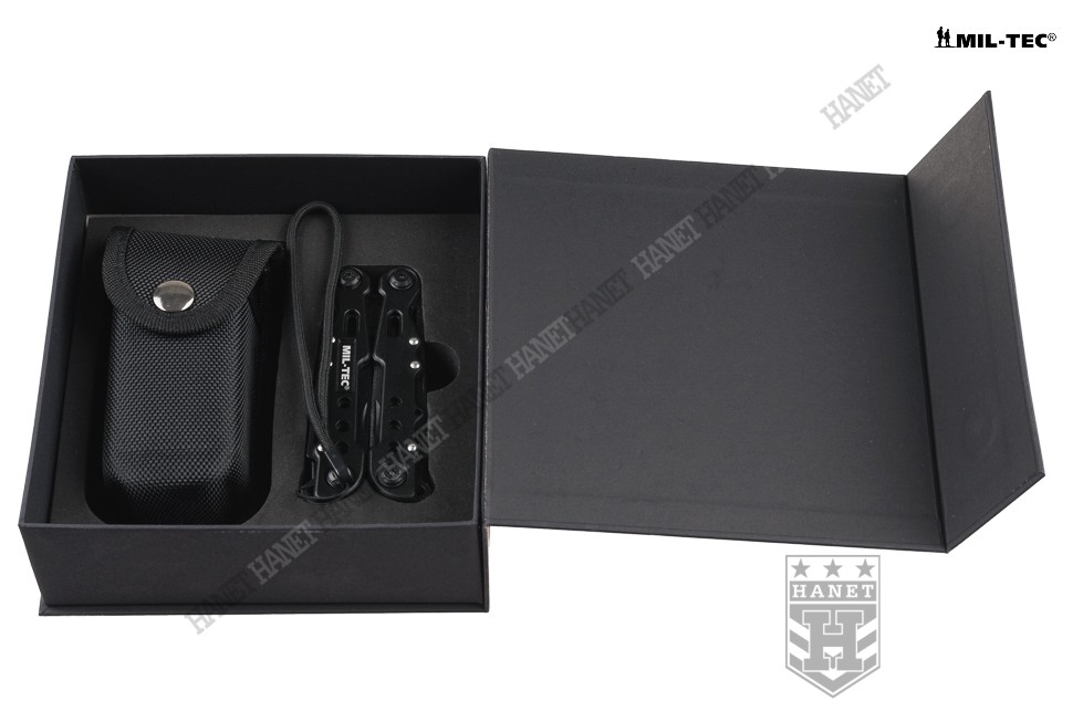 Przedstawiamy nowoczesny multitool COBRA BLACK, naszpikowany zaawansowanymi rozwiązaniami. Produkt niemieckiej marki Mil-Tec® to kieszonkowy warsztat dziewięciu praktycznych narzędzi i kilkunastu funkcji w jednym. Zaprojektowany tak, by maksymalnie ułatwić obsługę, mechanizmy sprężynowe powodują, że użytkowanie multitoola jest proste i przyjemne. Liczne perforacje, wycięcia i nawiercenia pozwalają znacznie zmniejszyć masę przy zachowaniu sztywności konstrukcji. Multitool został zapakowany w estetyczne pudełko, doskonały na prezent. W komplecie smycz nadgarstkowa.