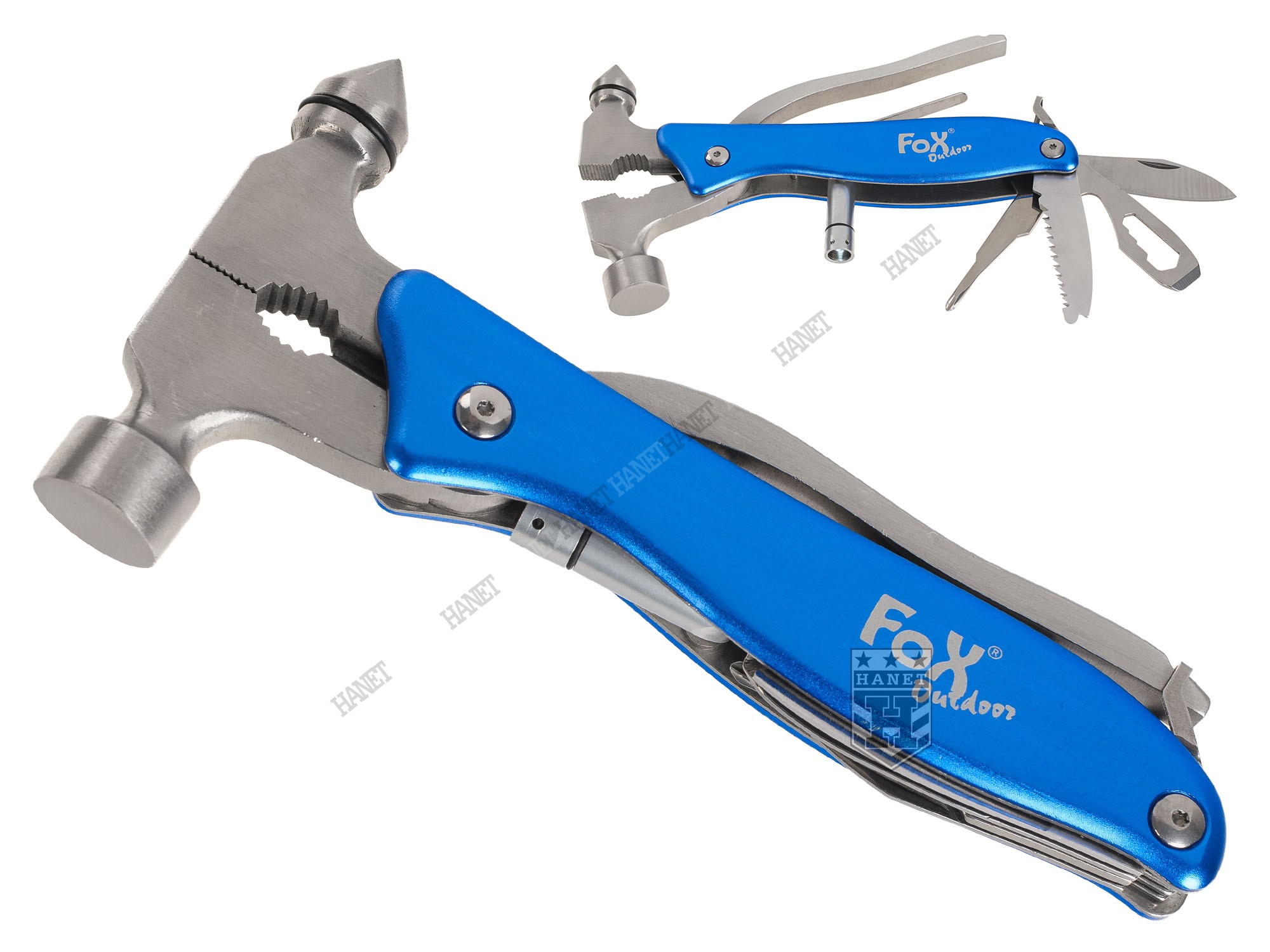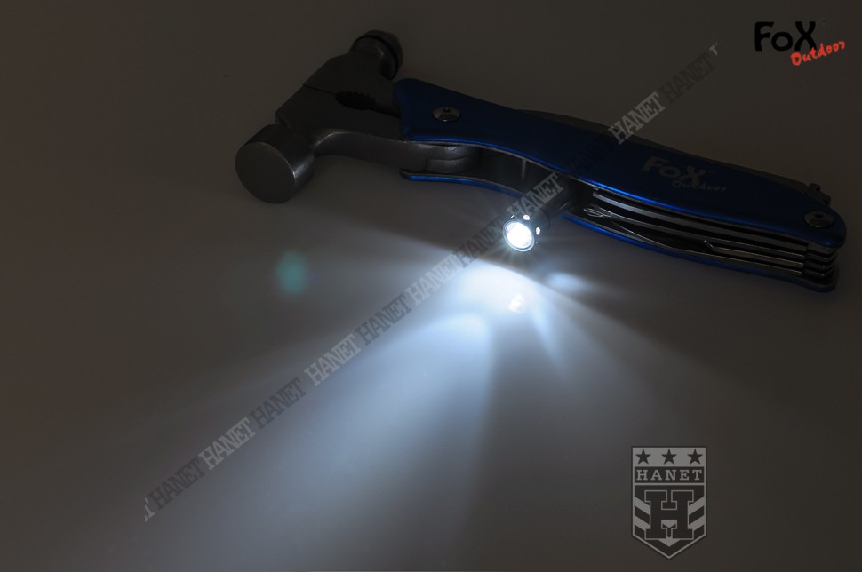 Chwyt z lekkimi okładzinami z aluminium pokrytego anodą. Narzędzie wyposażone w duże kombinerki z obcinaczkami do kabli, młotek i zbijak do szyb. Sprężyna powoduje samoistne rozwarcie kombinerek. W uchwycie znajdują się podstawowe narzędzia przydatne w codziennym użytkowaniu. Nóż zakończony ostrym czubkiem. Śrubokręt krzyżowy który może służyć jako szydło. Uniwersalny otwieracz do butelek z kluczem oczkowym o wymiarach: 6, 7, 8 i 10 mm zakończony śrubokrętem płaskim. Piła do drewna i tworzyw z dwoma rzędami ostrych zębów. Mini latarka włączana przez dokręcenie. Multitool zakończony blokadą zabezpieczającą kombinerki w pozycji zamkniętej. W komplecie znajduje się nylonowe etui z szlufką na pasek do spodni.