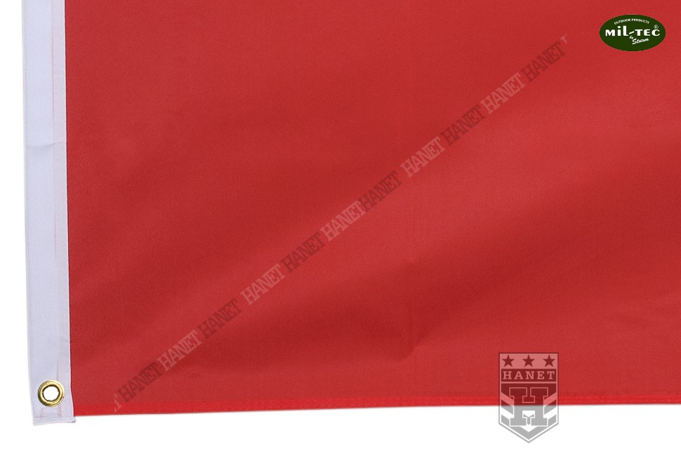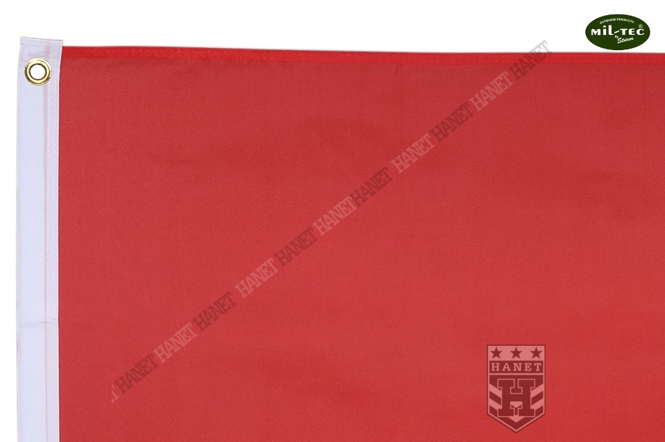 Uniwersalna flaga na maszt lub drzewiec o standardowych wymiarach 90 x 150 cm. Najwyższa, niemiecka jakość wykonania i wyselekcjonowane materiały gwarantują długowieczność użytkowania, nawet w bardzo niekorzystnych warunkach silnego wiatru, częstych opadów i destrukcyjnego działania słońca. Wytrzymały materiał poliestrowy przeznaczony specjalnie do flag. Wszystkie krawędzie boczne z potrójną zakładką i dodatkowo przeszywane podwójnymi szwami - zabezpieczone przed pruciem materiału szarpanego przez wiatr. Barwy narodowe naniesione specjalną techniką drukarską, kolory nie płowieją, flaga zachowuje pożądany wygląd. Lekkość tkaniny ułatwia łopotanie flagi na wietrze. Do poliestru nie przywiera brud i łatwo go doprać, jest szybkoschnący. Dwa nierdzewne, miedziane oczka do montażu na maszcie lub do drzewca, gwarantują solidne zaczepienie. Krawędź flagi na której przynitowane są oczka wzmocniony dwiema warstwami grubego materiału. Dwustronna, na rewersie lustrzane odbicie awersu.