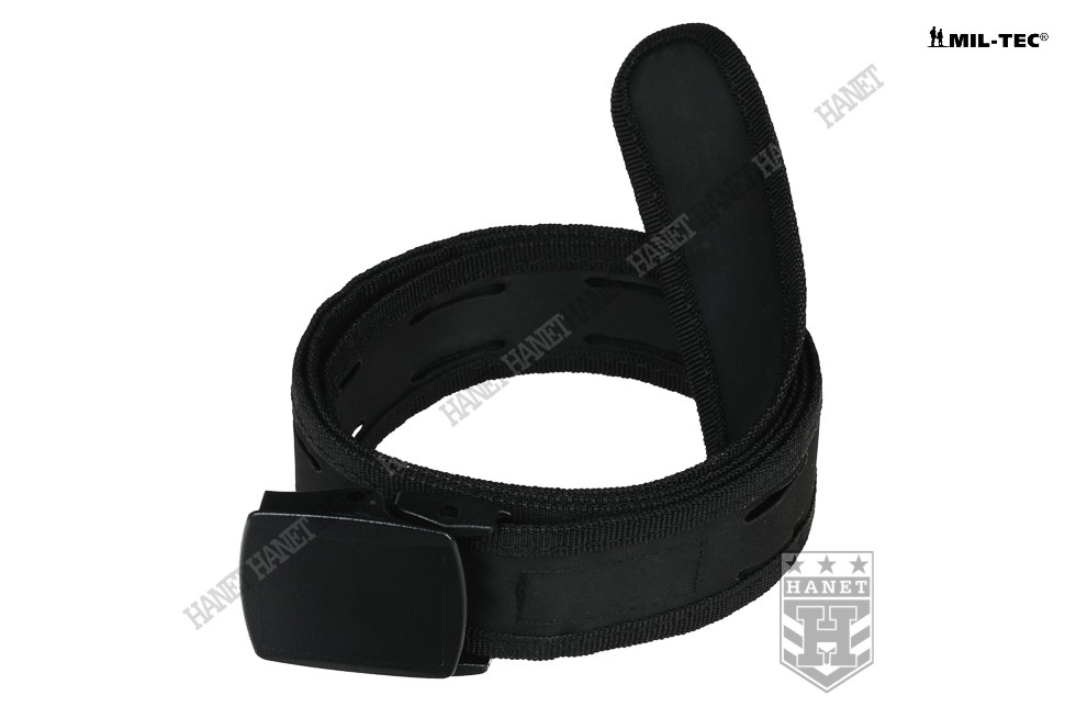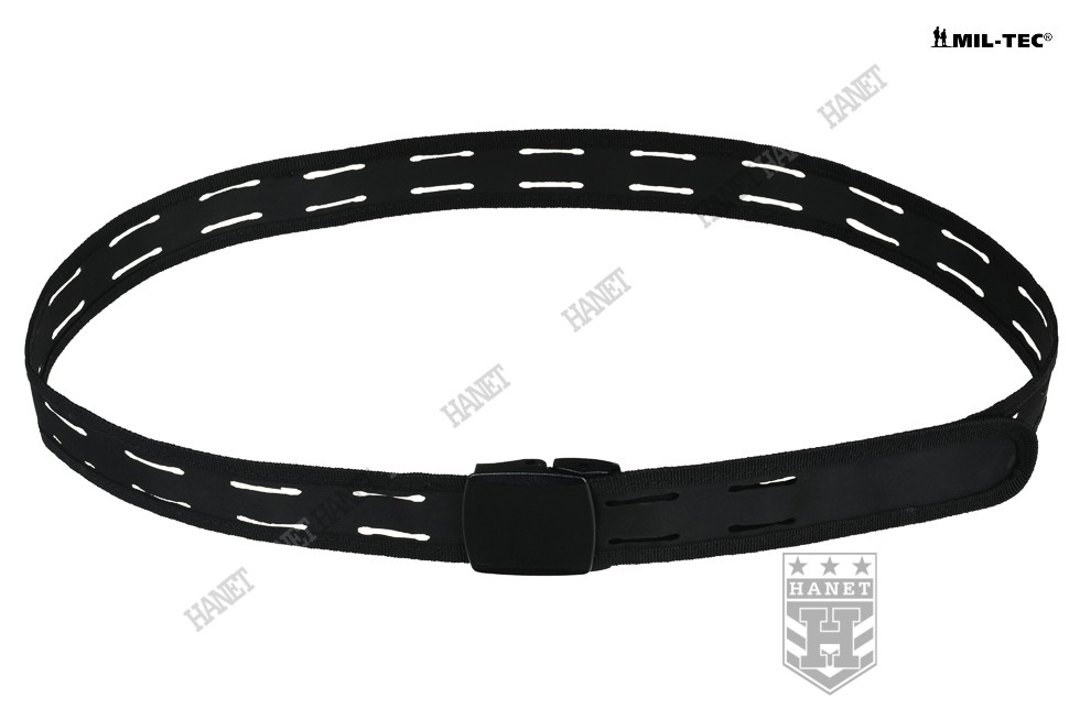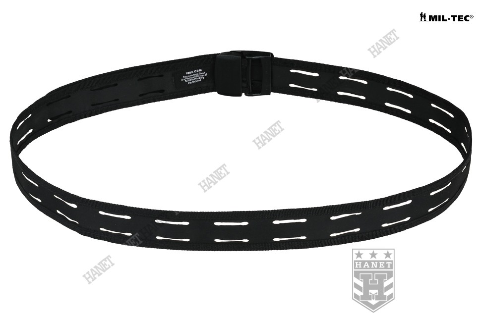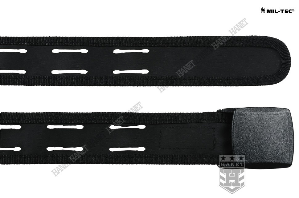 Uniwersalny pasek taktyczny. Produkt niemieckiej marki Mil-Tec®. Pasek przeznaczony do spodni, poza klasycznym zastosowaniem może służyć także jako pas do ładownicy i oporządzenia taktycznego. Wyposażony w system otworów w technologii Laser Cut umożliwiających założenie ładownic modularnych Molle / PALS. Laser Cut to najnowsza wersja systemu modularnego, miejsca na taśmy modularne zostały wycięte laserem bezpośrednio w tkaninie. Laser Cut jest znacznie lżejszy niż standardowe, naszywane taśmy. Pas QUICK RELEASE jest kompromisem pomiędzy pasami sztywnymi oraz miękkimi, zapewnia wygodę i jednocześnie daje możliwość przenoszenia lekkiego oporządzenia. Jest pozbawiony elementów metalowych, nie wzbudza bramek kontrolnych.