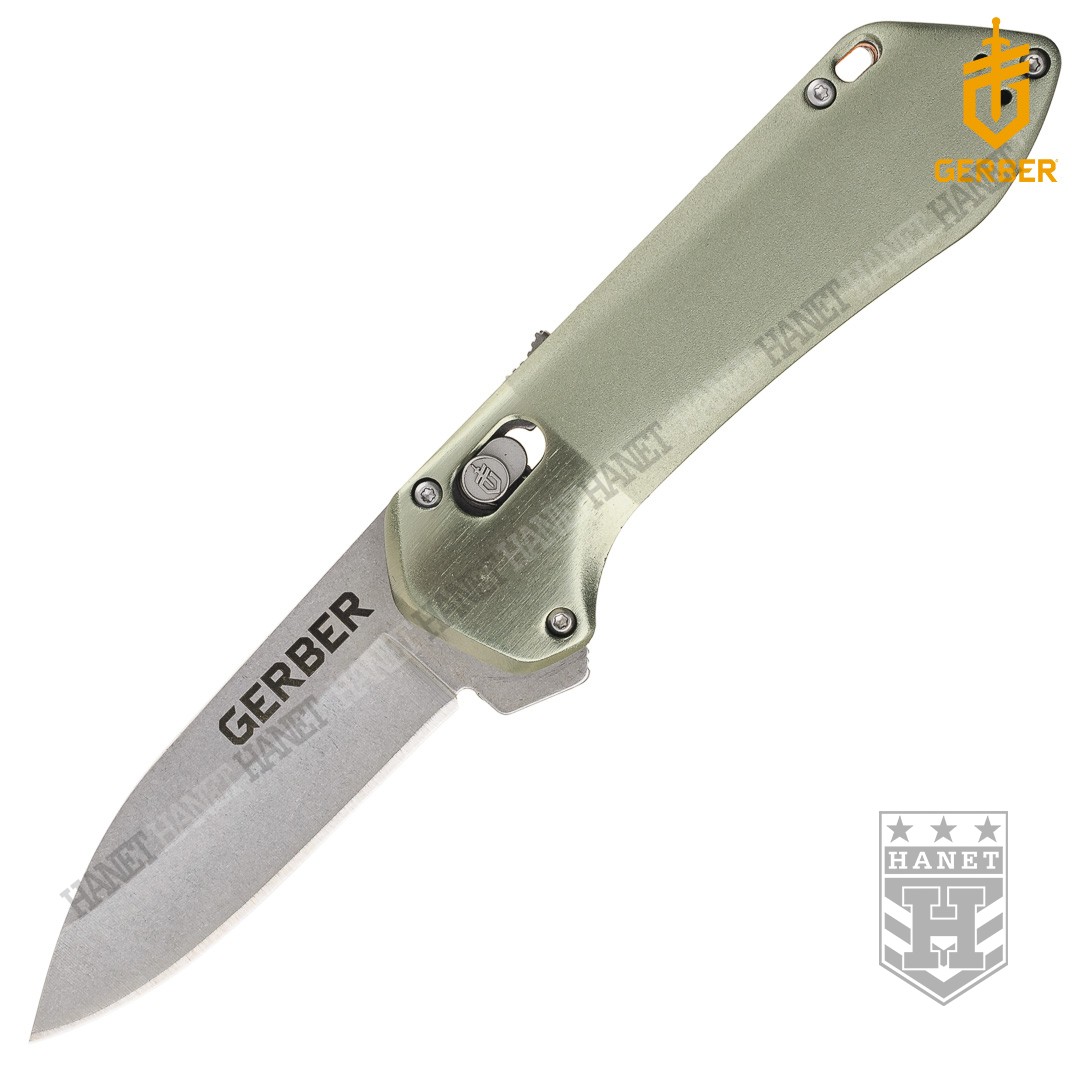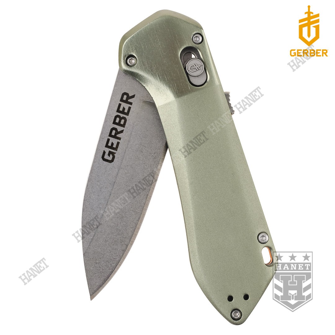 Ergonomiczne okładki rękojeści wykonane z aluminium lotniczego obrobionego w technologi CNC. Okładki zostały pokryte twardą anodą zabezpieczenia przed utlenianiem aluminium. Powłoka okładzin typu Dual Tone: matowa na wysokości chwytu i lekko połyskliwa (szczotkowana) przy blokadzie. Okładziny rękojeści zostały anatomicznie wyprofilowane, nóż dobrze i pewnie leży w dłoni. Antypoślizgowa wkładka z tworzywa na grzbiecie rękojeści daje lepszy chwyt dłoni. Otwór umożliwia przewleczenie smyczy lub pętli nadgarstkowej. Stalowy klips do pasa i odzieży zabezpiecza przed zgubieniem noża. Na klipsie wygrawerowano logo Gerber®. Istnieje możliwość przełożenia klipsa na drugą stronę rękojeści.