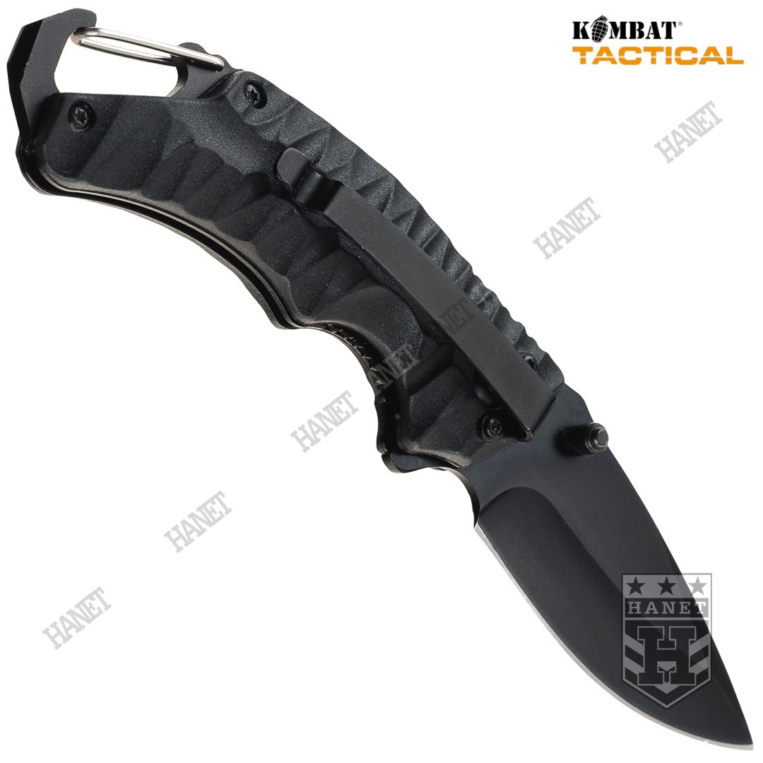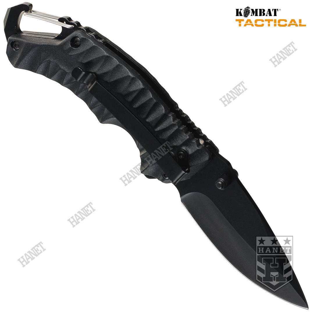 Nóż Składany Taktyczny Kombat UK ELITE GATOR LOCK z Karabinkiem - Czarny