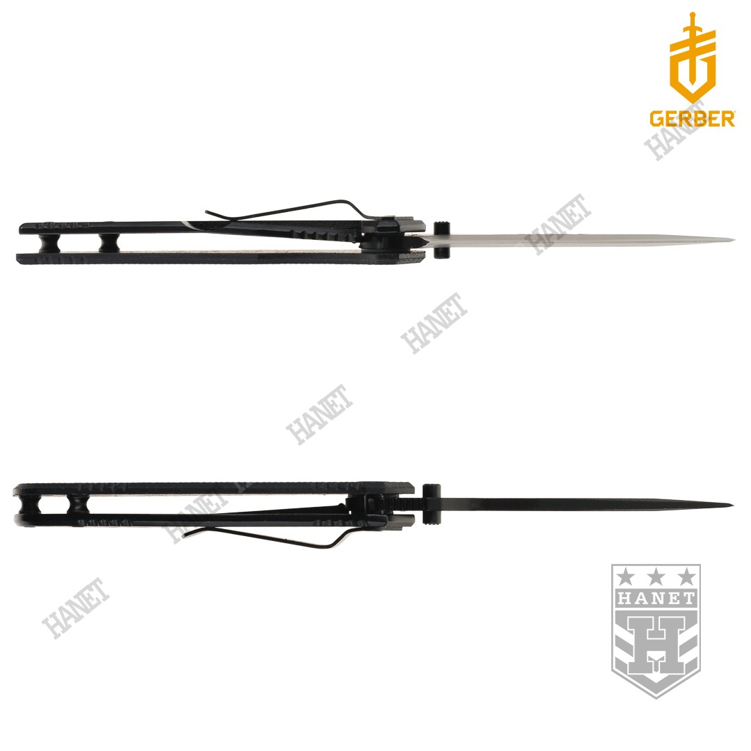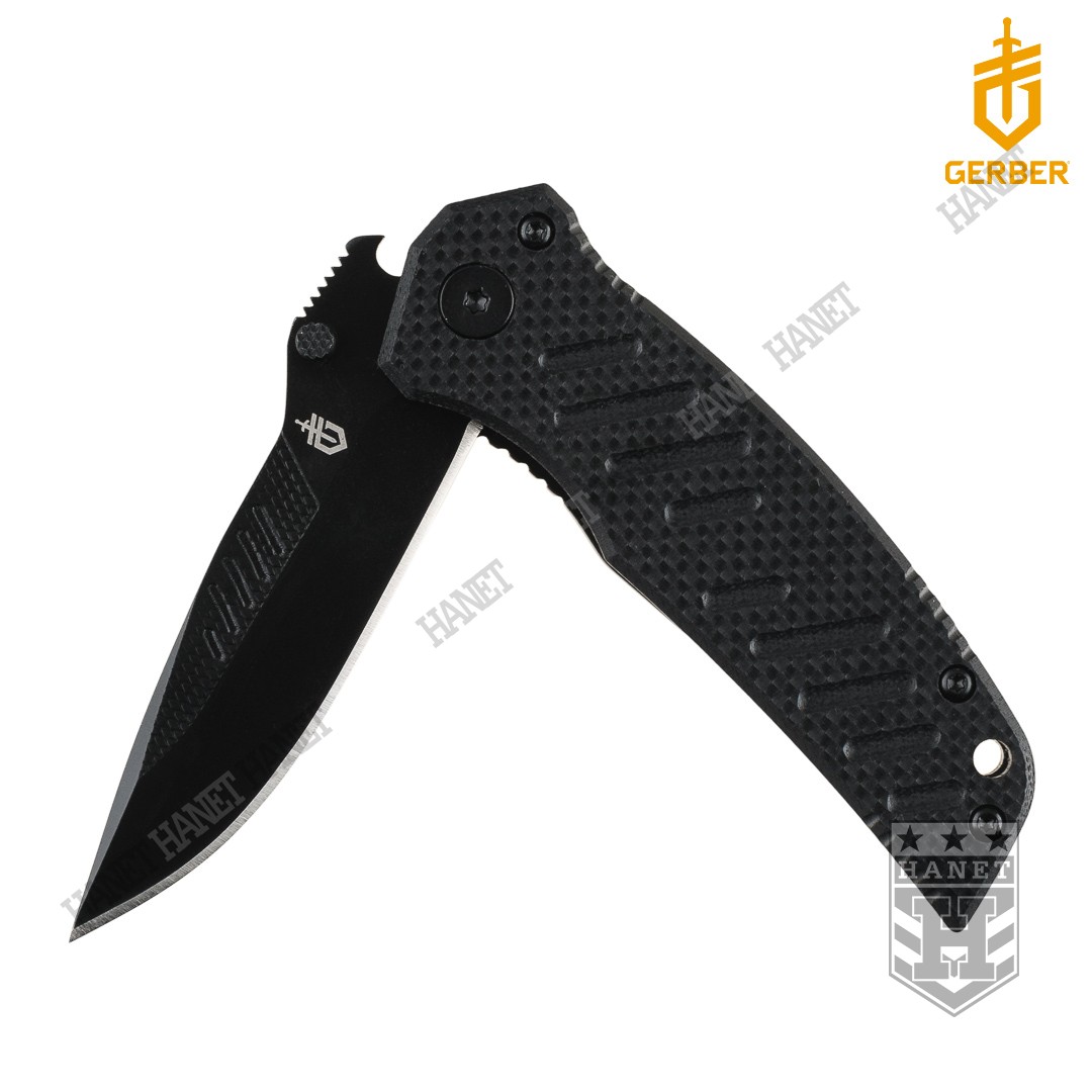 Ergonomiczna okładka rękojeści z kompozytu G10, które jest uzyskane poprzez prasowanie włókna szklanego w żywicach. Tworzywo G10 jest odporne na uszkodzenia mechaniczne, chemikalia i wysokie temperatury. Okładzina ze szlifami zapewnia maksymalną przyczepność dłoni i wysoki komfort pracy. Antypoślizgowy szlif pod kciuk umieszczony na grzbiecie głowni, pozwala na przyłożenie dużej siły do ciętego materiału. Stalowy klips do pasa i odzieży zabezpiecza przed zgubieniem noża. Na klipsie wygrawerowano logo Gerber®.
