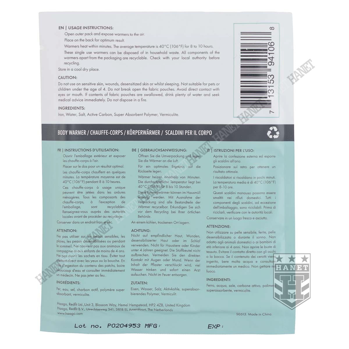 Ogrzewacz Chemiczny Do Ciała BODY WARMER HAAGO - Żelazowy Działanie do 10h