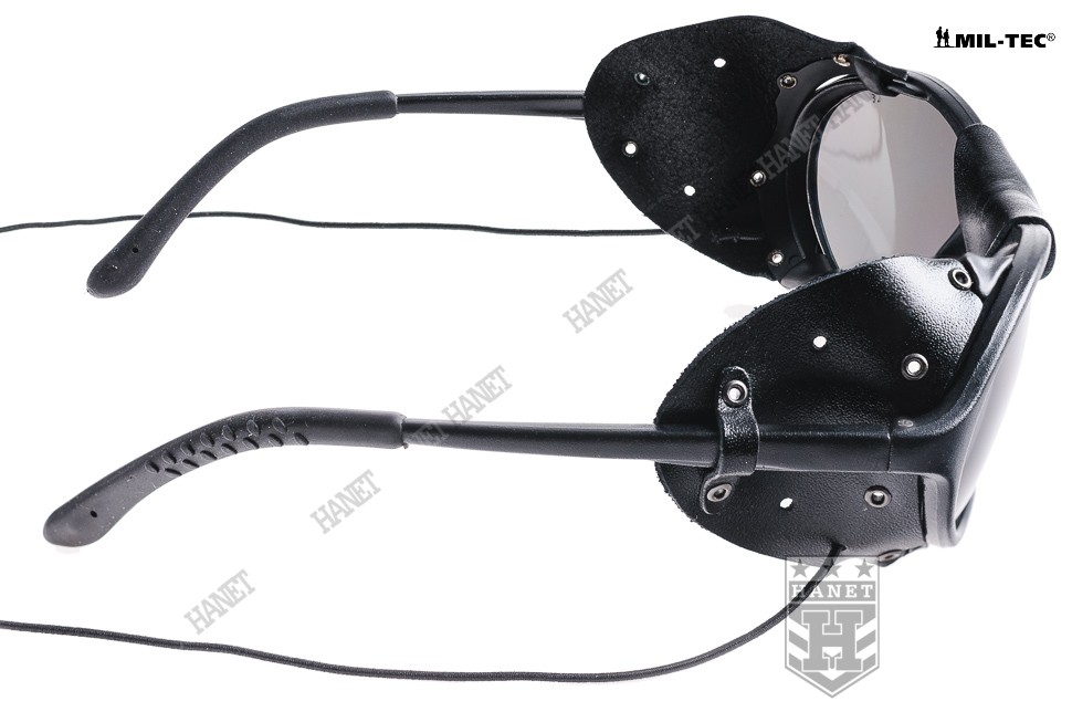 Skórzane Osłonki: Okulary wyposażone są w boczne osłony oraz osłonkę na nos wykonane z naturalnej skóry. Chronią one przed przenikaniem światła z boku oraz przed mroźnym wiatrem. System otworów w skórze zapewnia niezbędną wentylację.