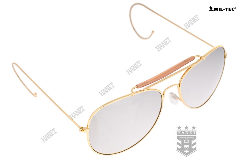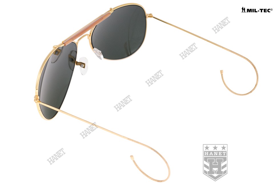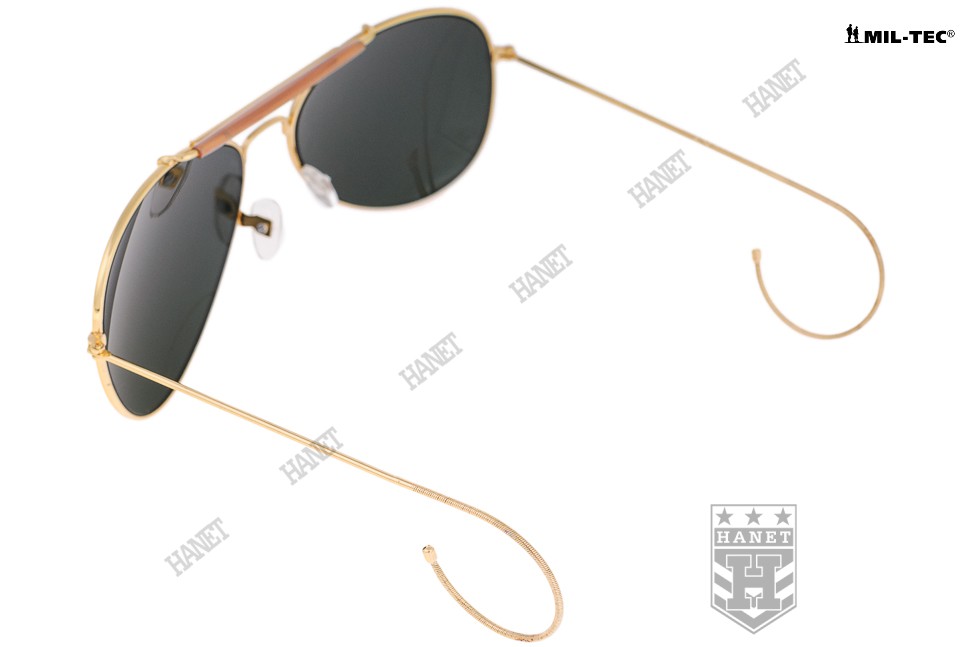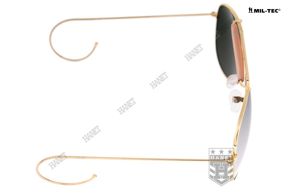 Kultowe okulary lotnicze wzór US "AVIATOR". Produkt o pełnej specyfikacji militarnej, niemieckiej firmy Mil-Tec®. Klasyczny i oryginalny wzór niezmieniony od lat 30-tych. Okulary "AVIATOR" powstały na potrzeby US Air Force. Specyfika pracy pilotów myśliwców i bombowców wymagała bezkompromisowych rozwiązań. Okulary "AVIATOR" zostały spopularyzowane wykonaną w 1944 roku fotografią generała Douglasa MacArthura noszącego ten model w czasie lądowania na Filipinach, a następnie przez wiele gwiazd kina i muzyki - wiecznie stylowe i modne. Duże, charakterystyczne szkła wykonane z poliwęglanu. Filtr UV i szkła szaro-zielone w kategorii ochronnej S2 (60% transmisji) - doskonałe w warunkach zmiennego i umiarkowanego oświetlenia. Kolor szarozielony zwiększa kontrast i nie męczy oczu. Okulary osadzone w cienkiej, lecz sztywnej ramce metalowej - nierdzewnej. Okulary lotnicze wyposażone są zauszniki hakowe by nie spadały podczas gwałtownych manewrów i leżały pewnie na głowie. Zauszniki wykonane z giętkiego kabla w oplocie stalowym, bardzo wygodne i dyskretne. Dodatkowy element opierający okulary o czoło, który gwarantuje jeszcze stabilniejsze leżenie na głowie - drut w elastycznej, plastikowej koszulce. Noski wykonane z miękkiej, przeźroczystej gumy. W komplecie sztywne etui obszyte sztuczną skórą. Etui wyposażone w wewnętrzną wkładkę z plastiku, która zabezpiecza przed zgnieceniem okularów. Miękki materiał chroni przed zarysowaniem.